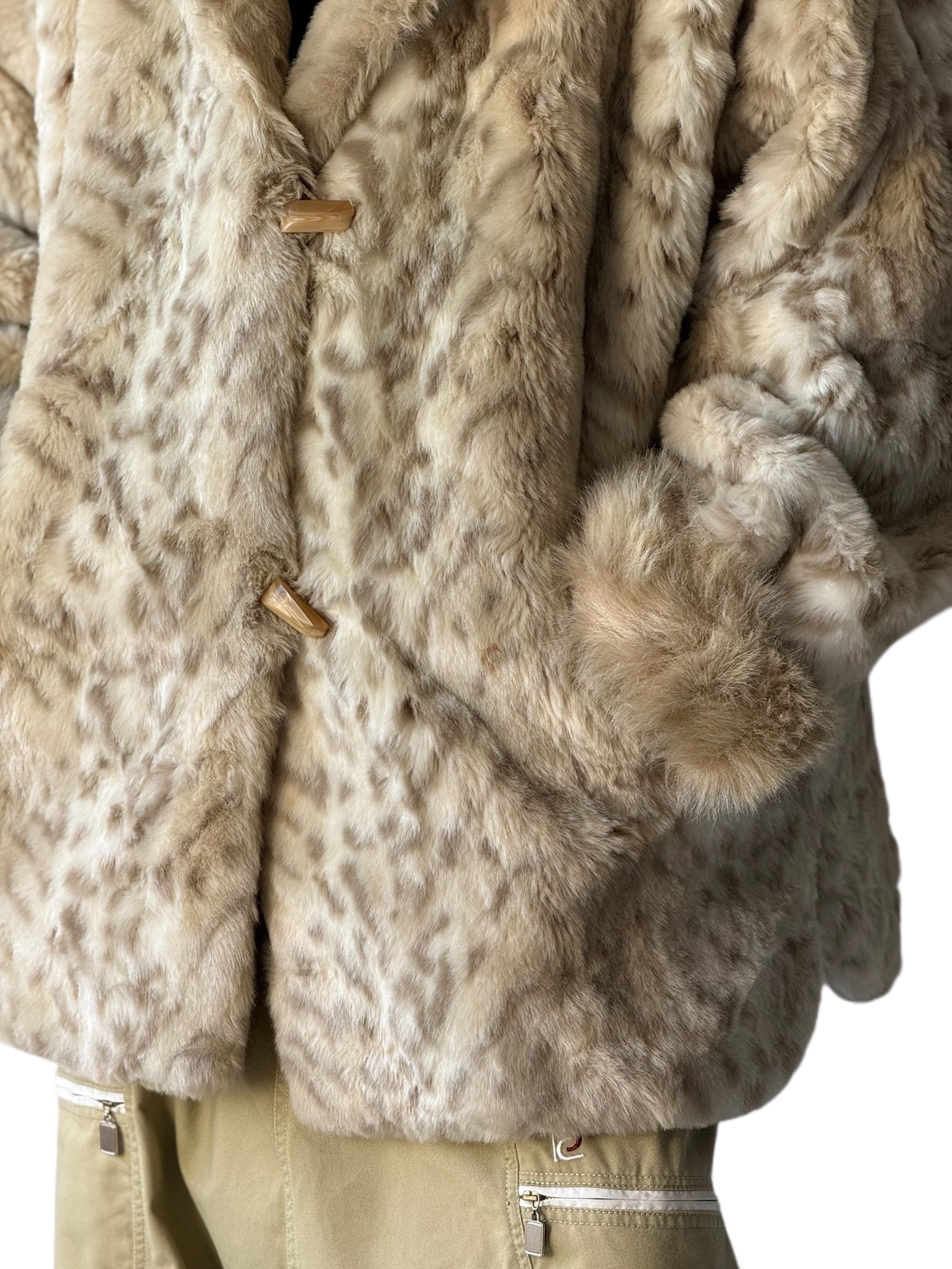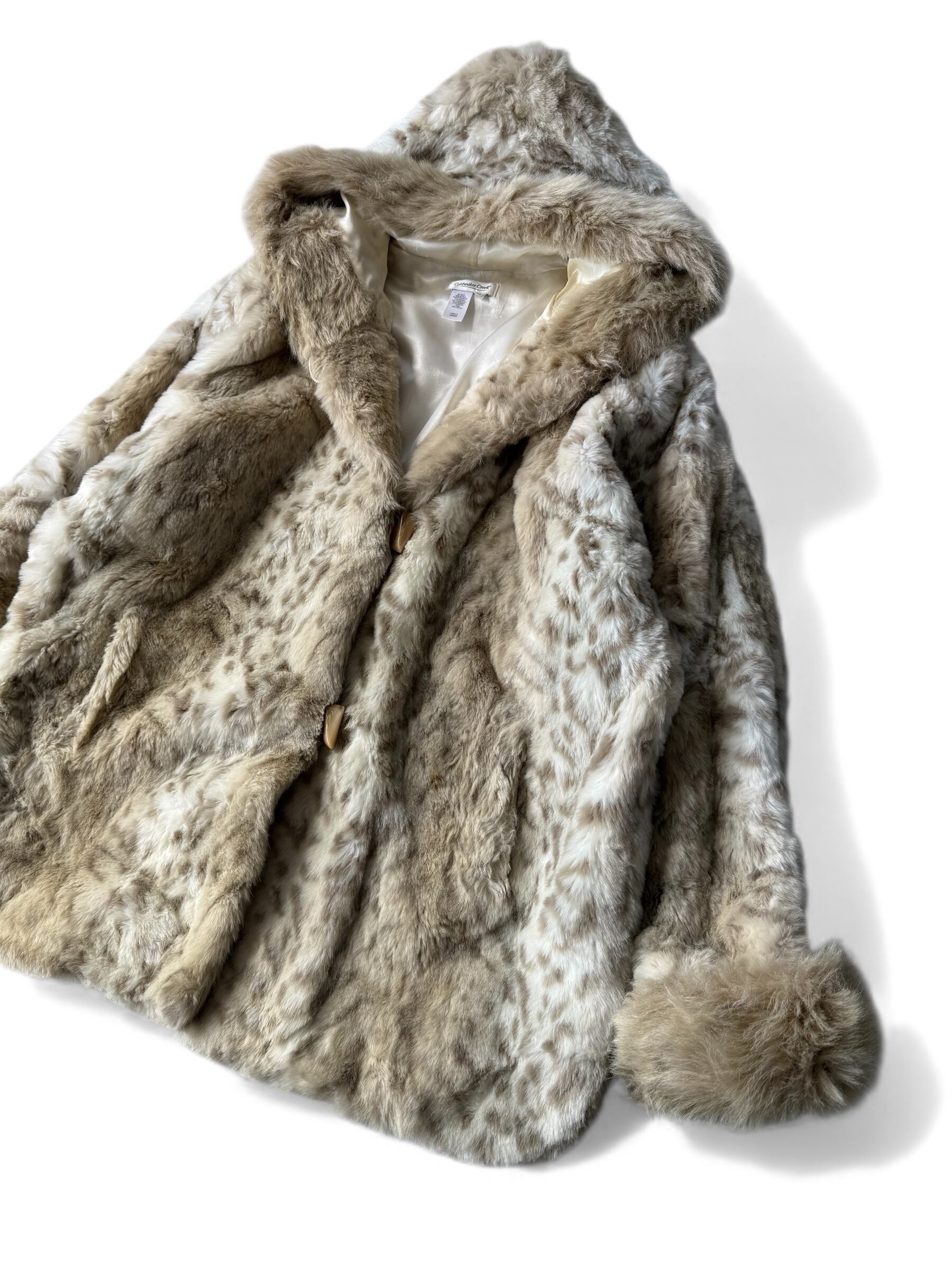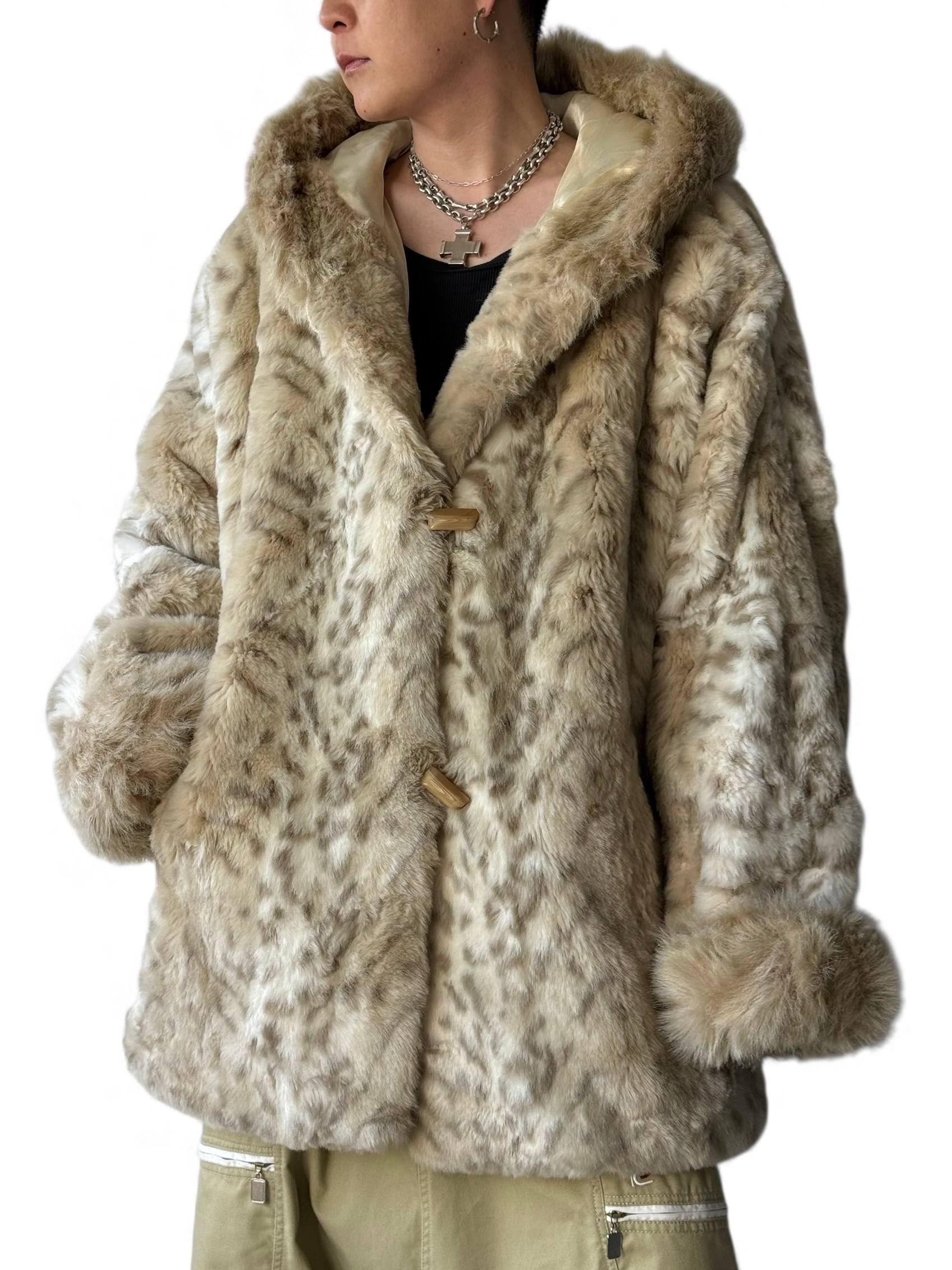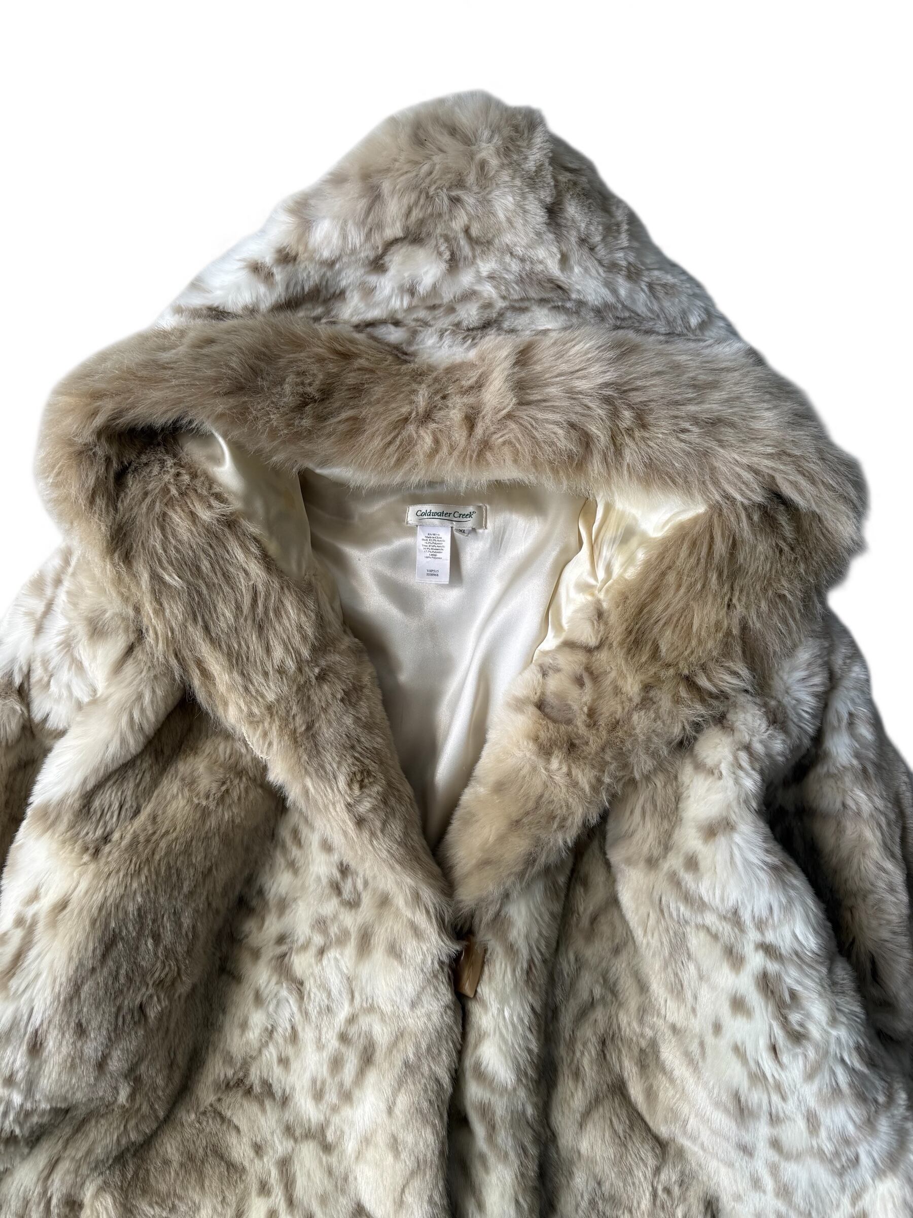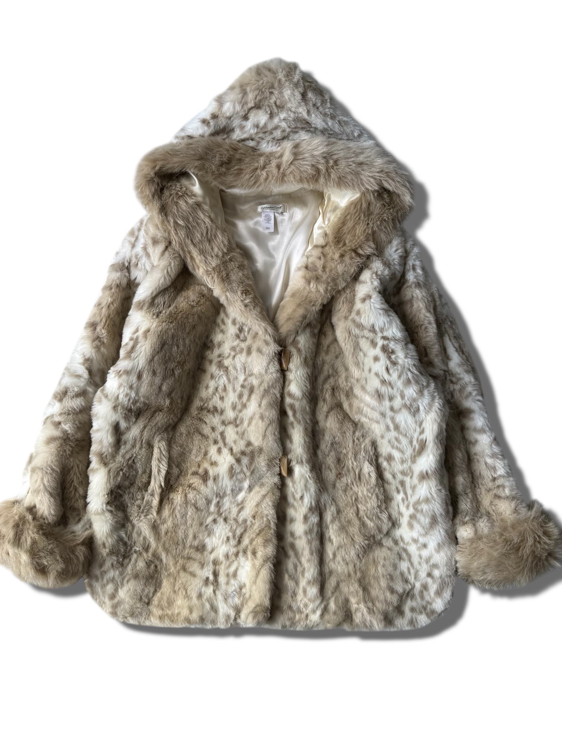 【Coldwater Creek】Animal pattern shaggy hooded faux fur jacket