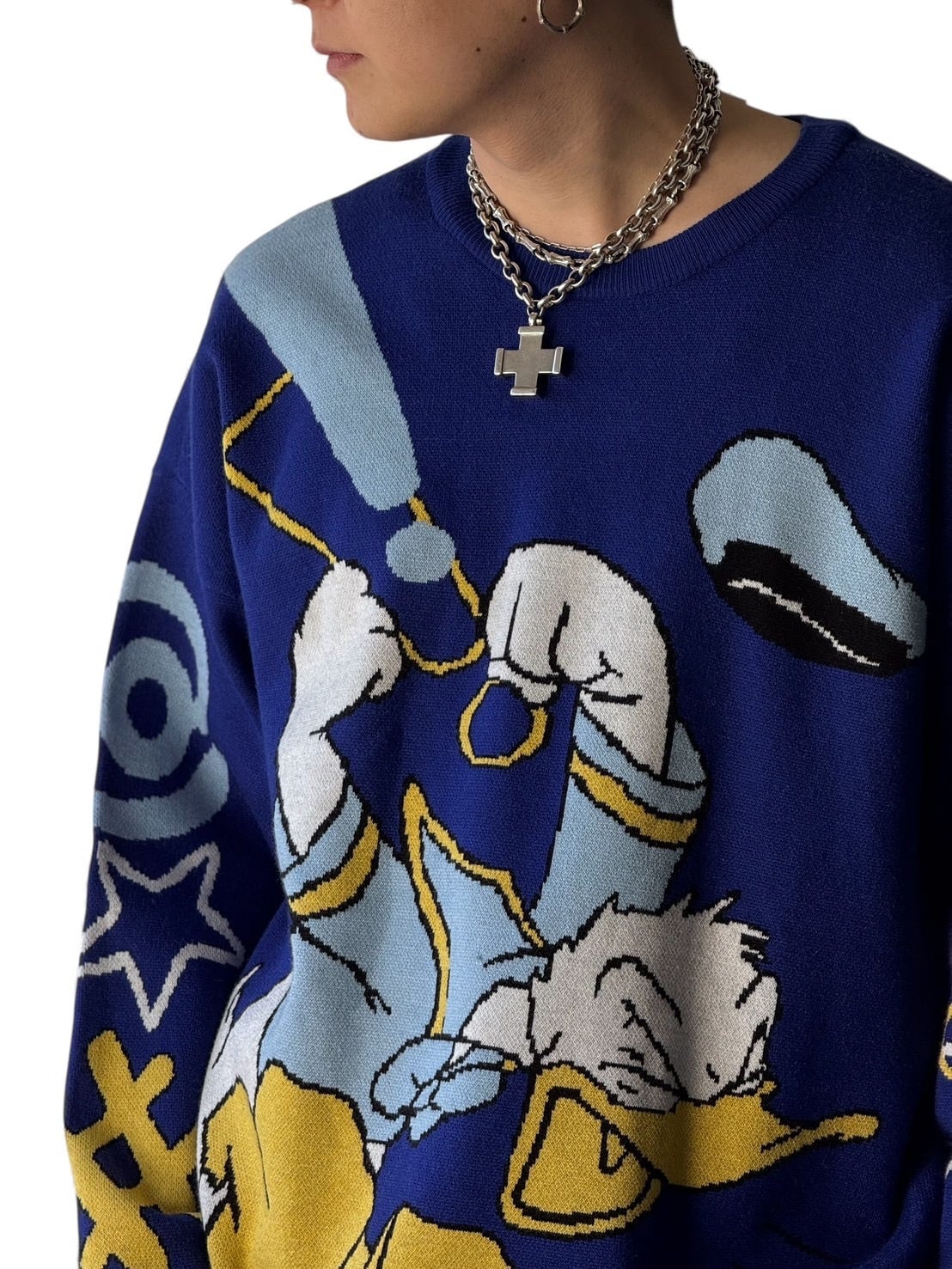 【Disney】"Donald Duck" All-Over Pattern Ski Knit Sweater