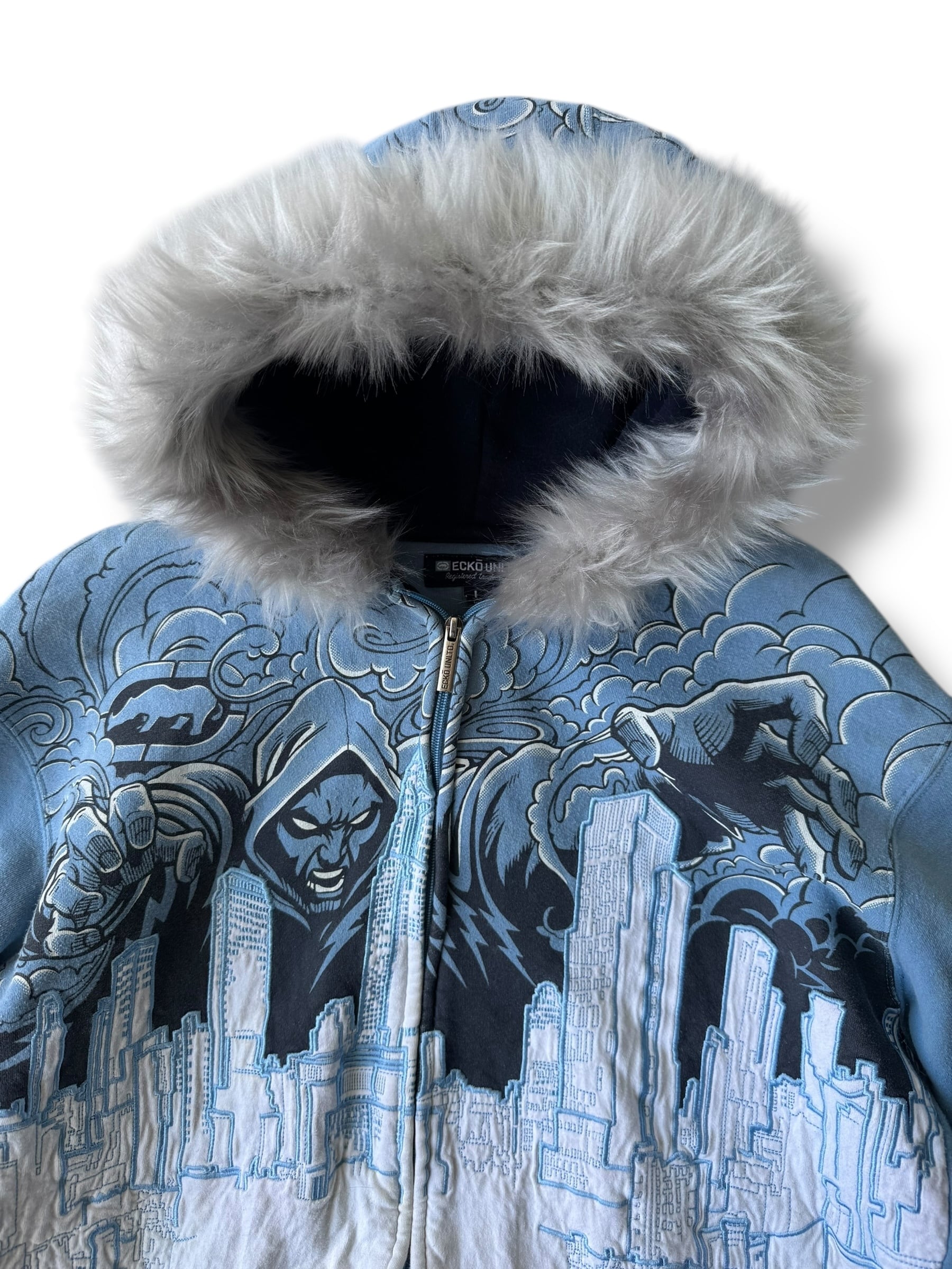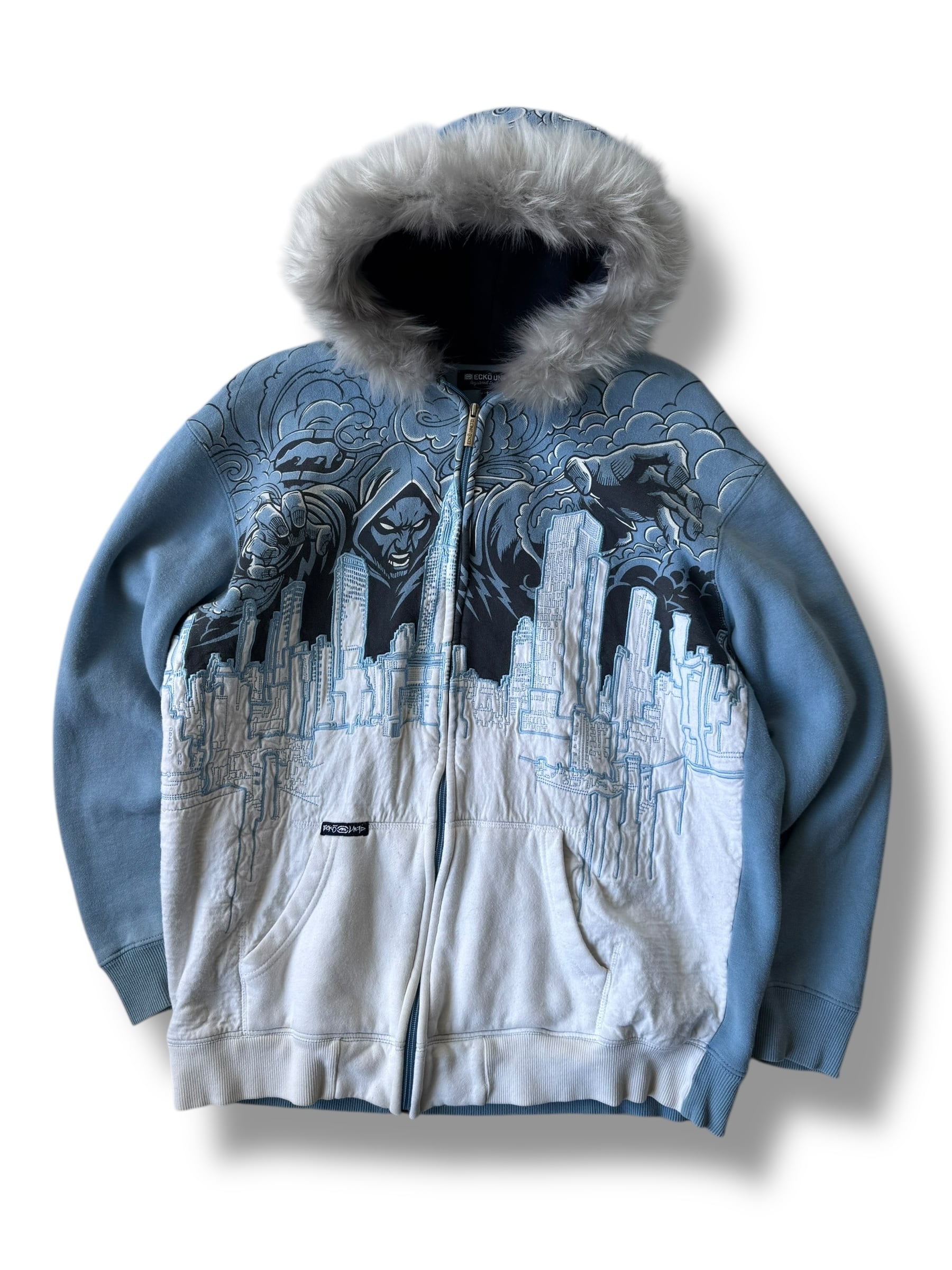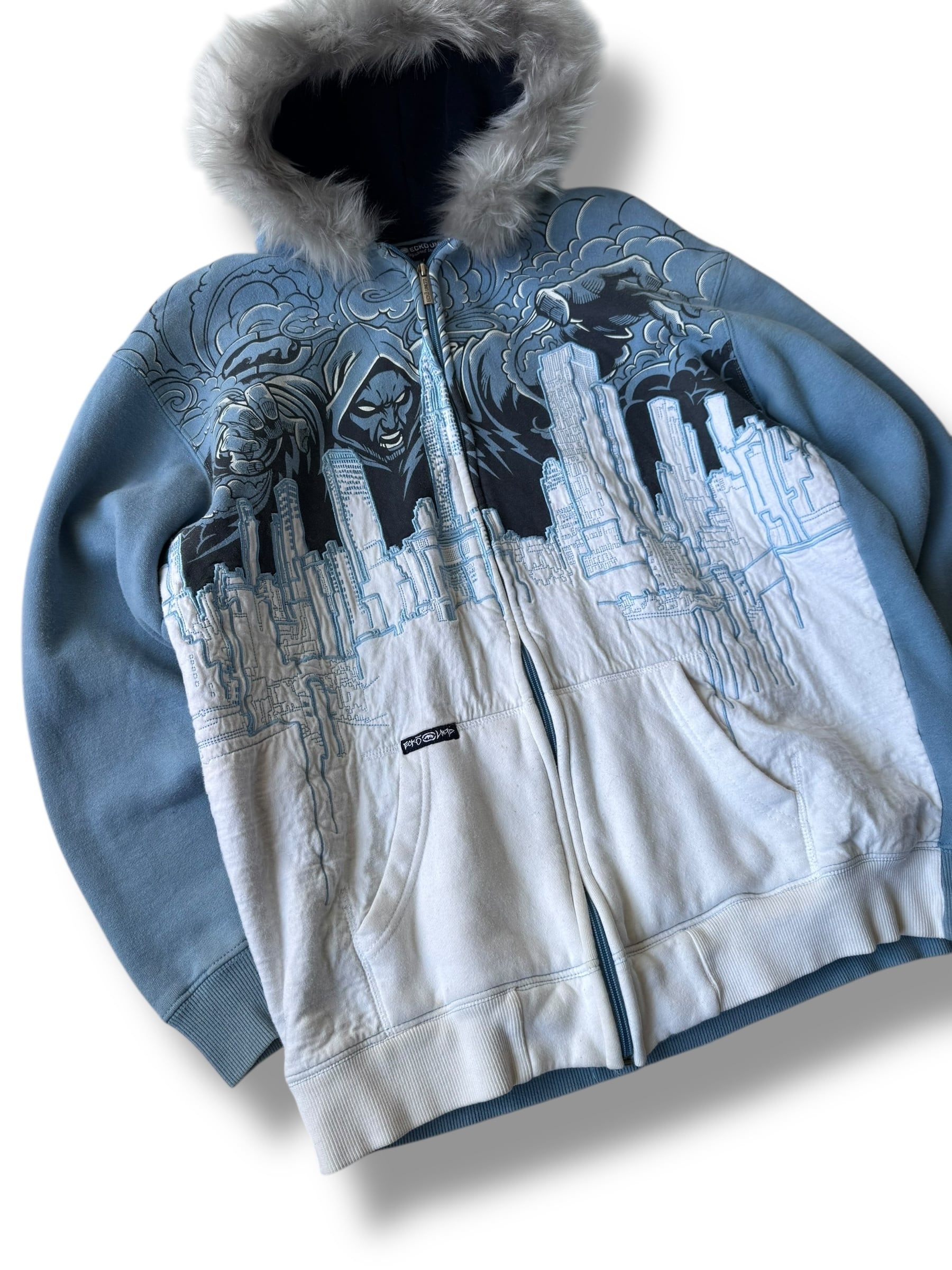 ♾ECKO UNLTD♾ embroidery design fur zip up hoodie sizeL