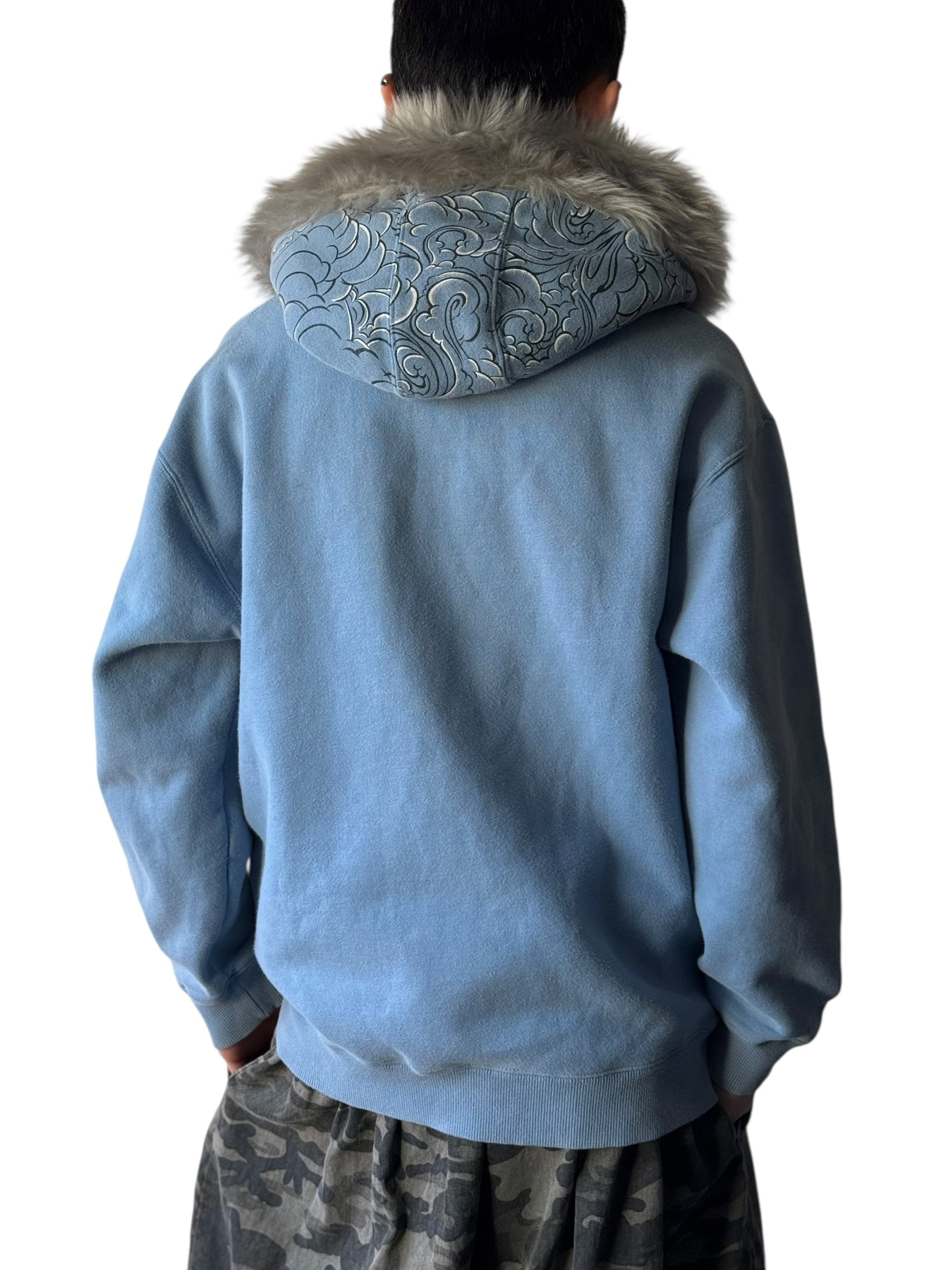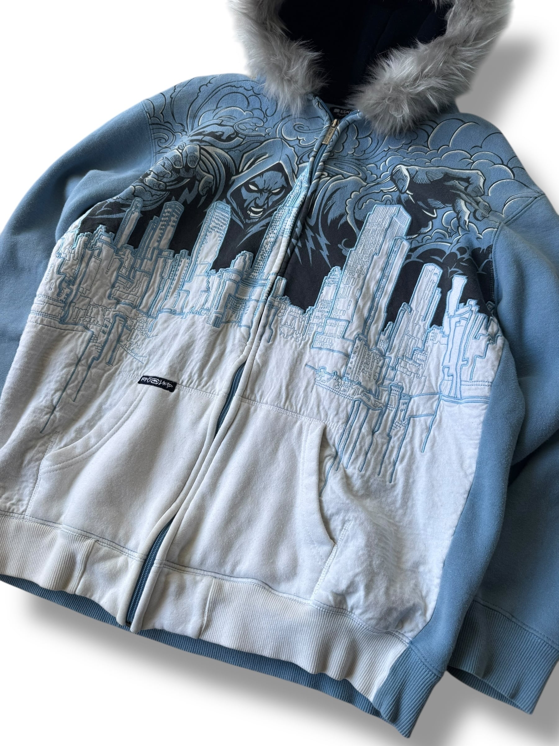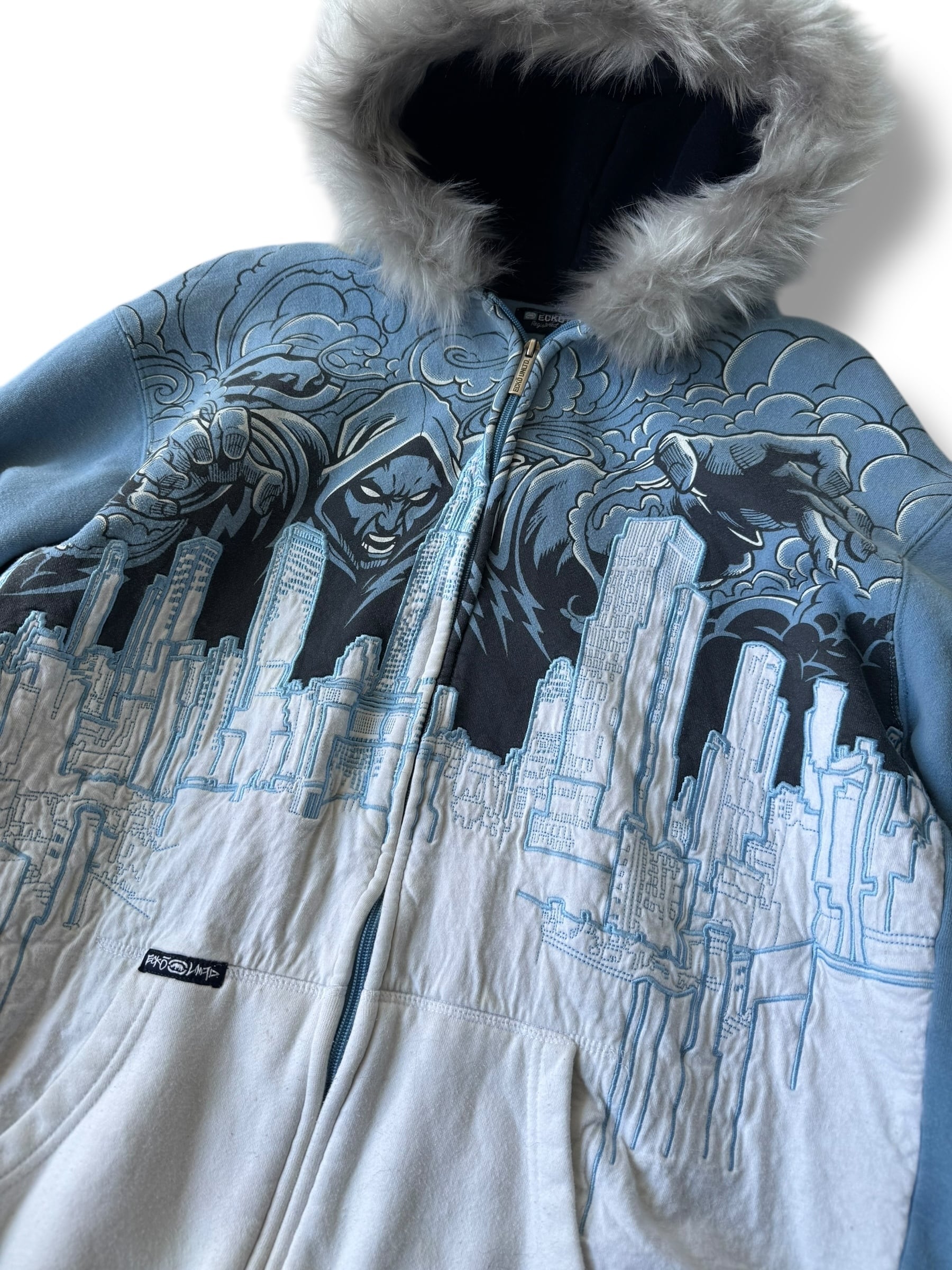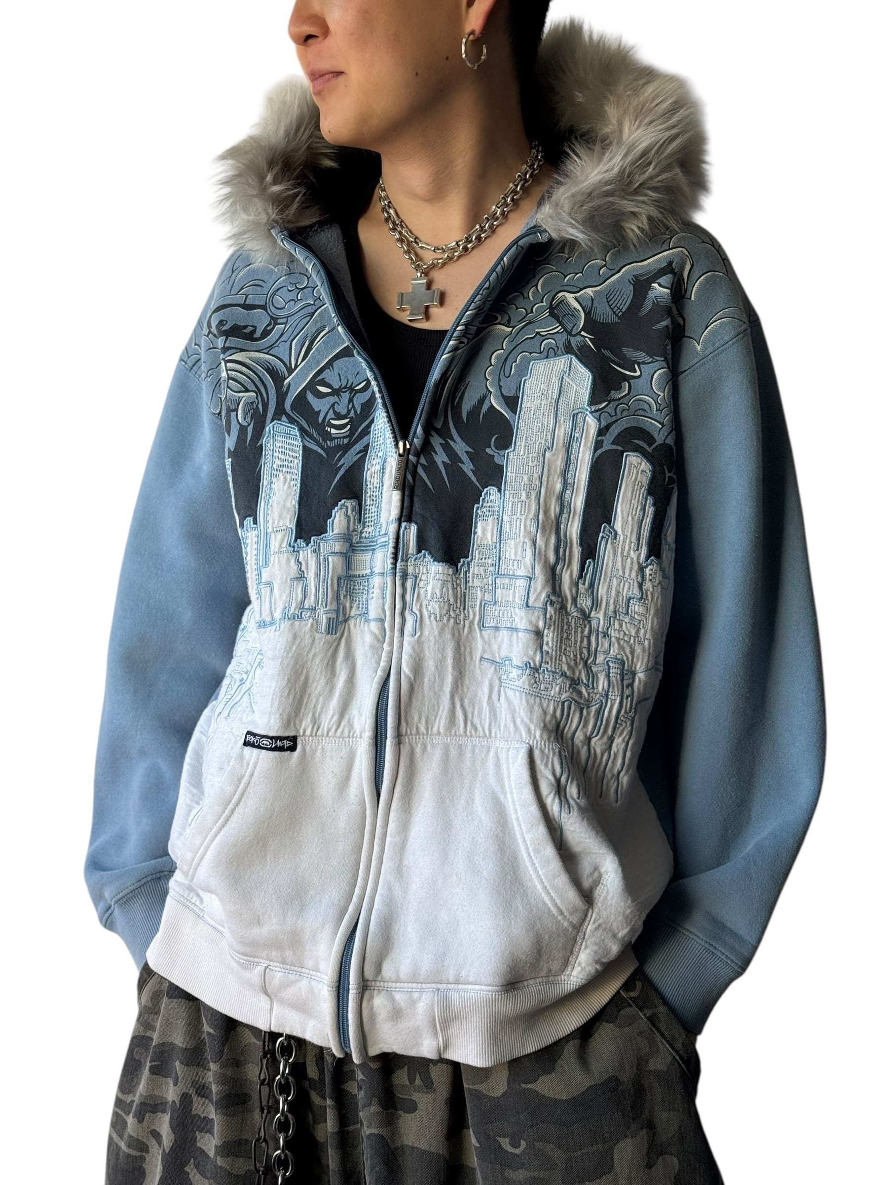 ♾ECKO UNLTD♾ embroidery design fur zip up hoodie sizeL