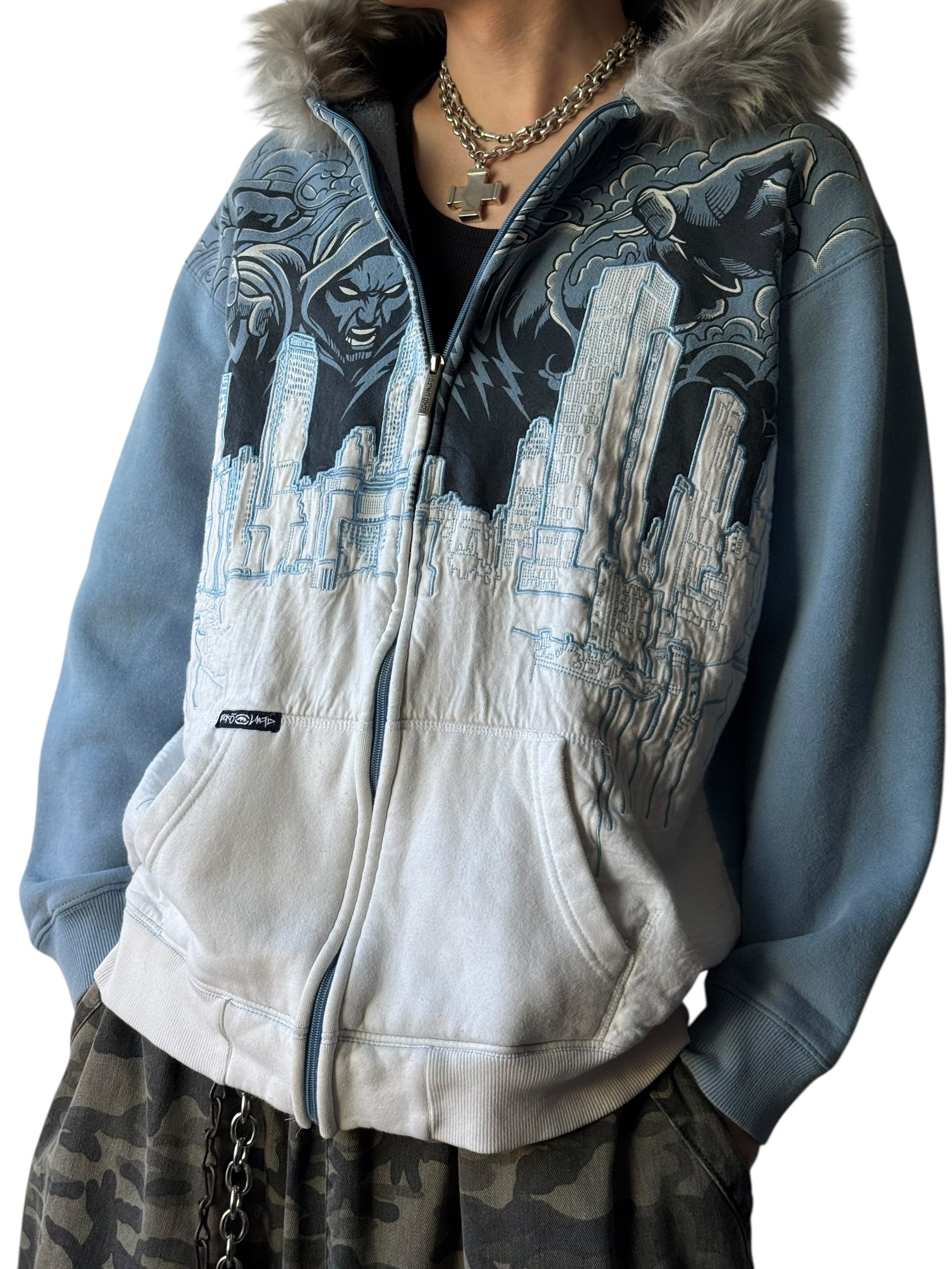 眠らないBIG CITYの刺繍デザイン、邪悪が襲いかかるグッドデザインが映えるジップフーディーの入荷‼️