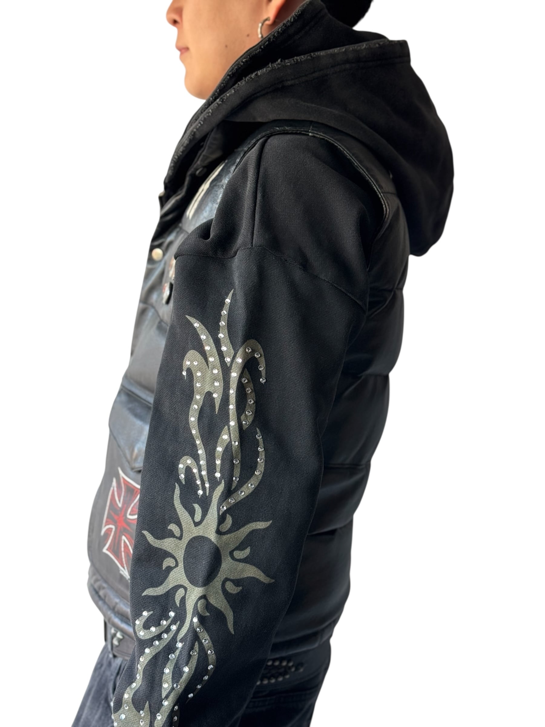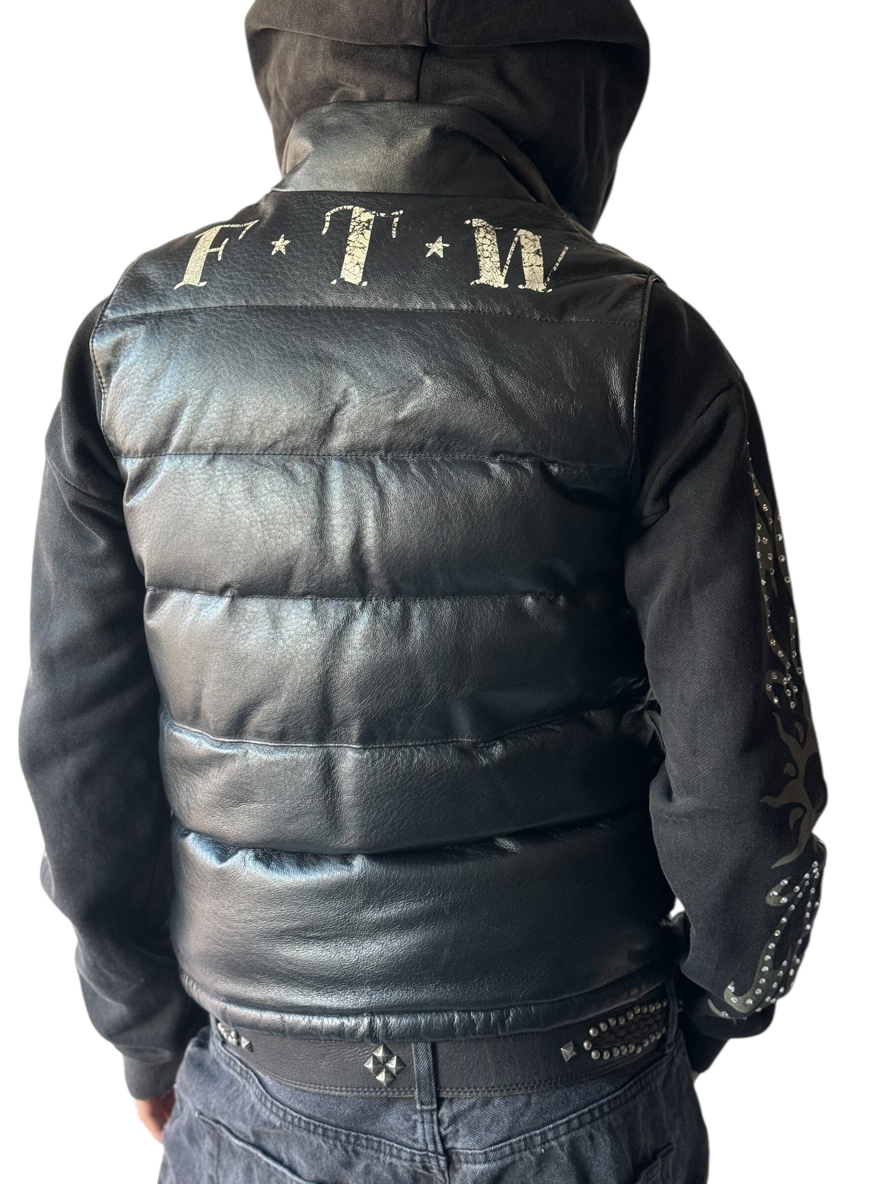 ♾️Remade Collection♾️ hand painting "F.T.W. bad bikers" leather down vest
