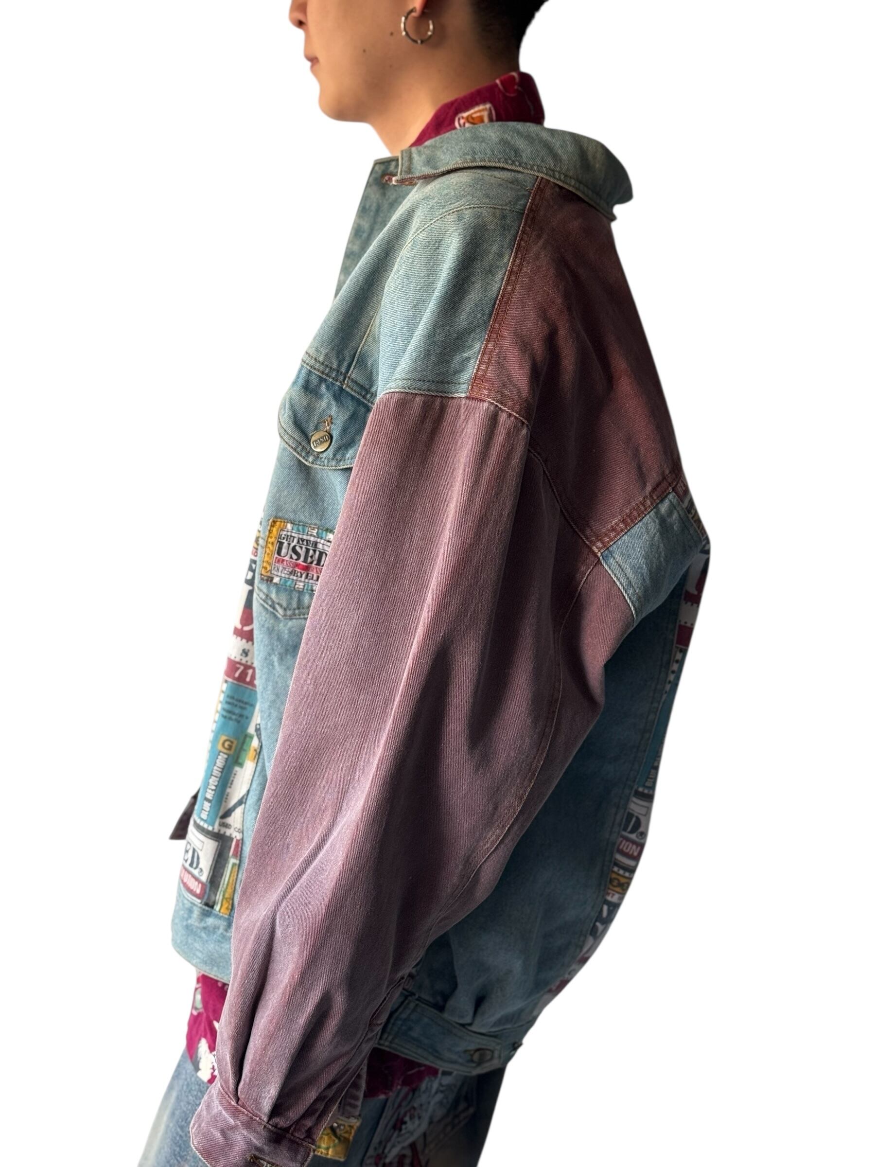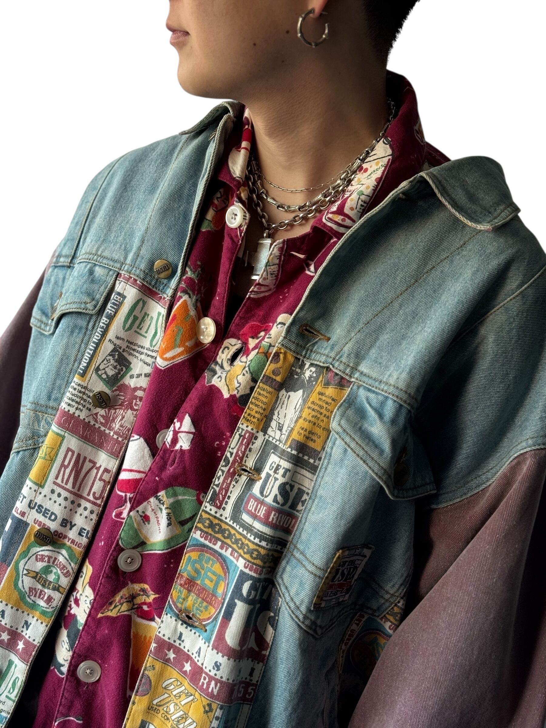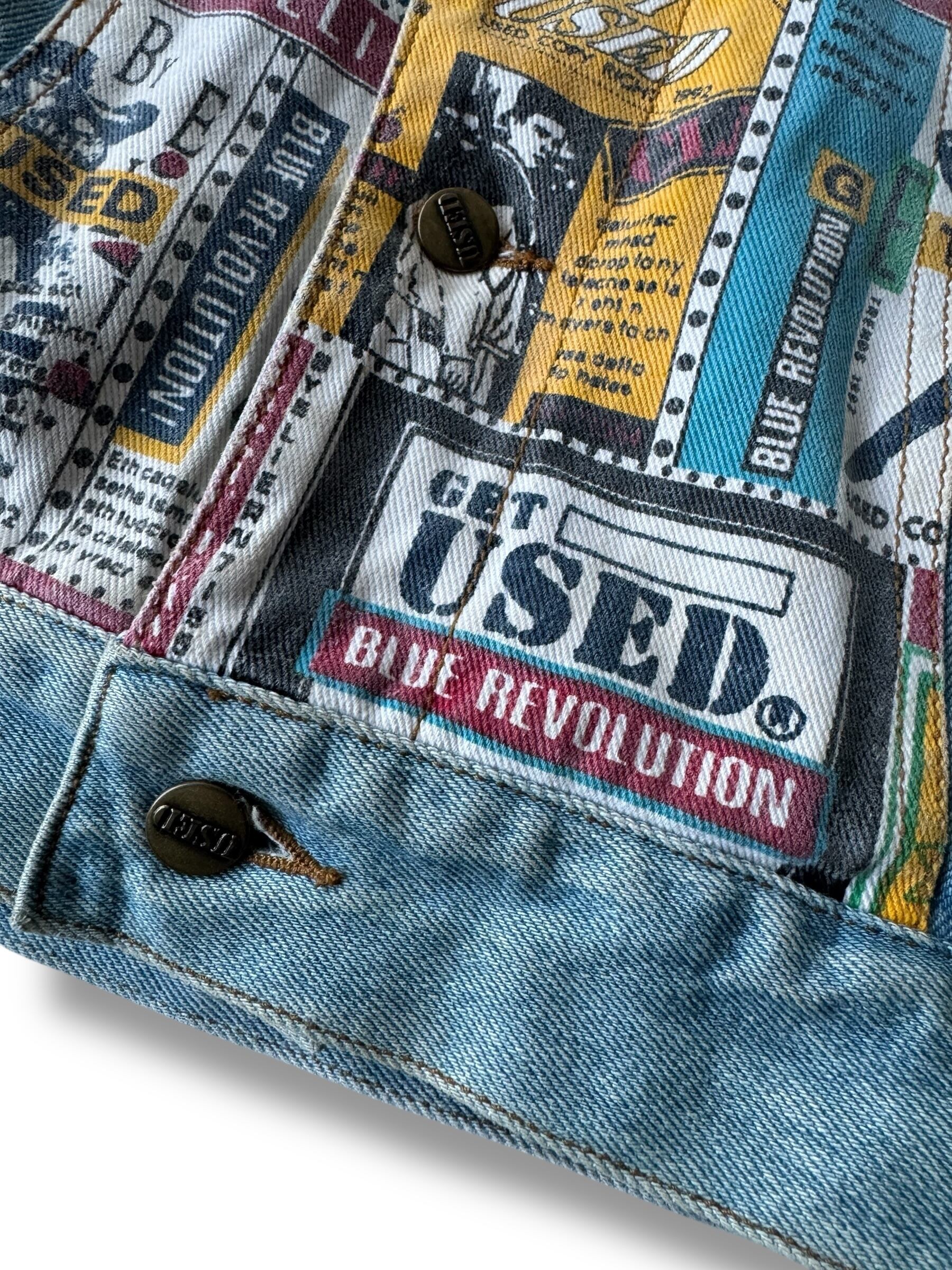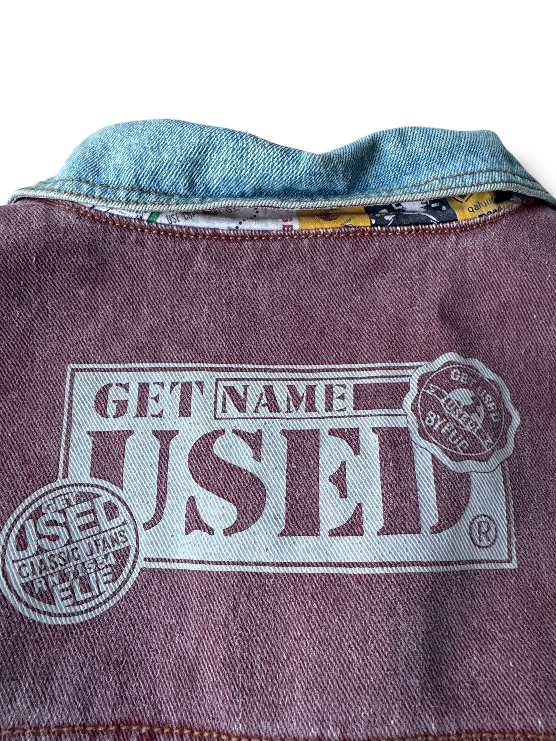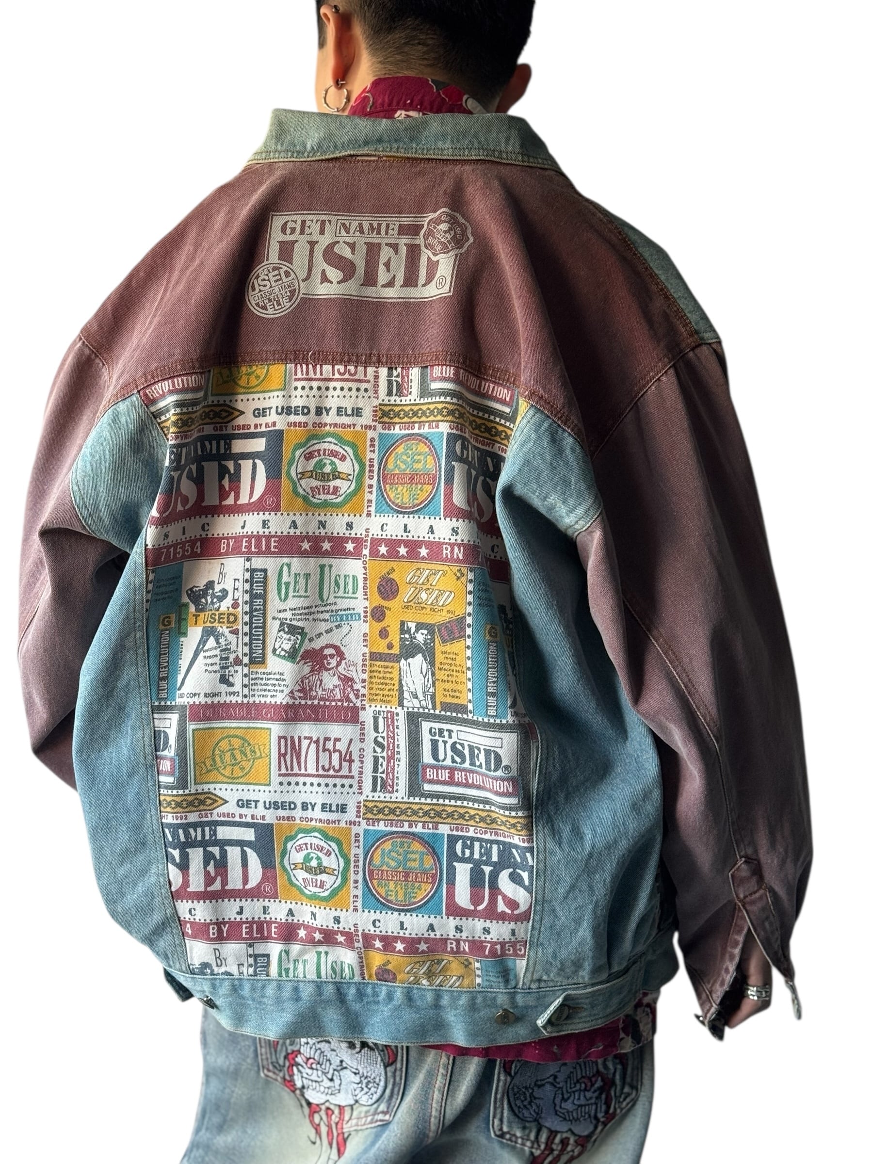♾90’s GET NAME USED♾ graphic poster all over patterned switching design denim jacket sizeM