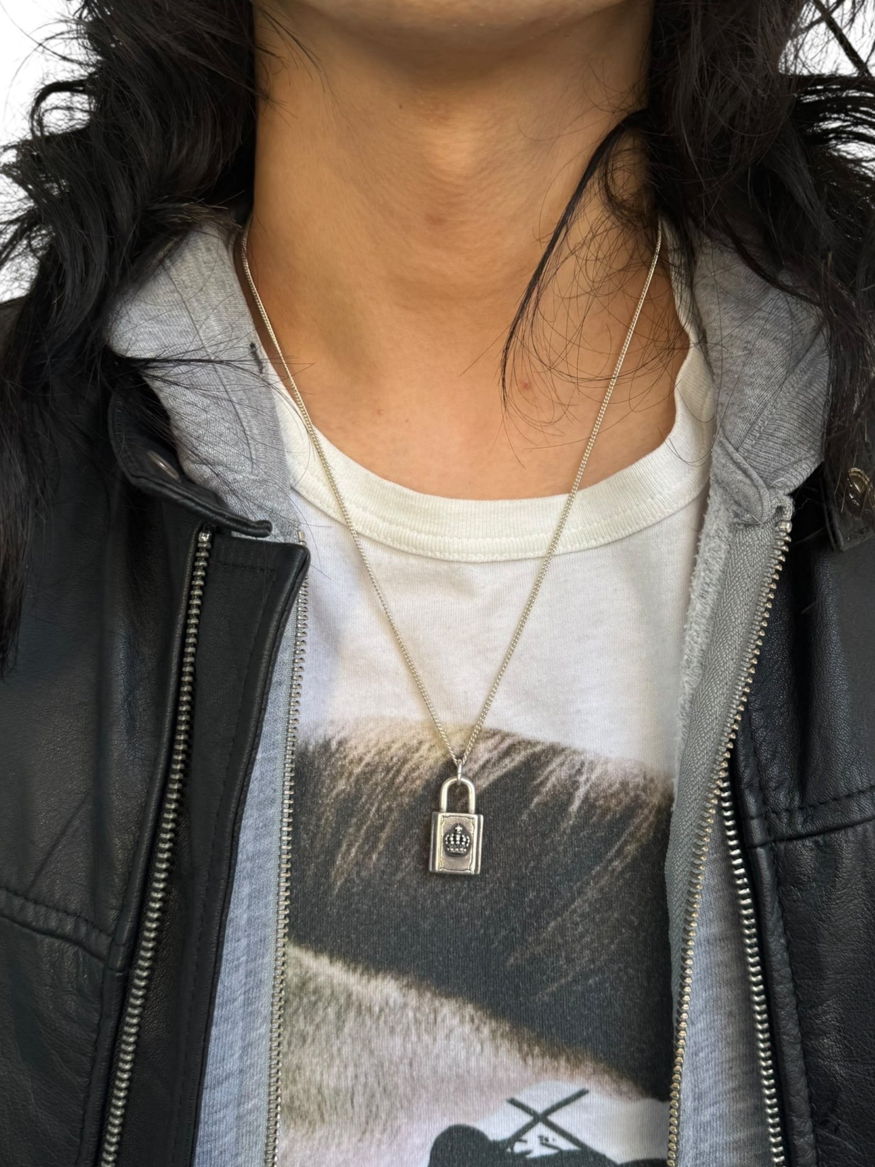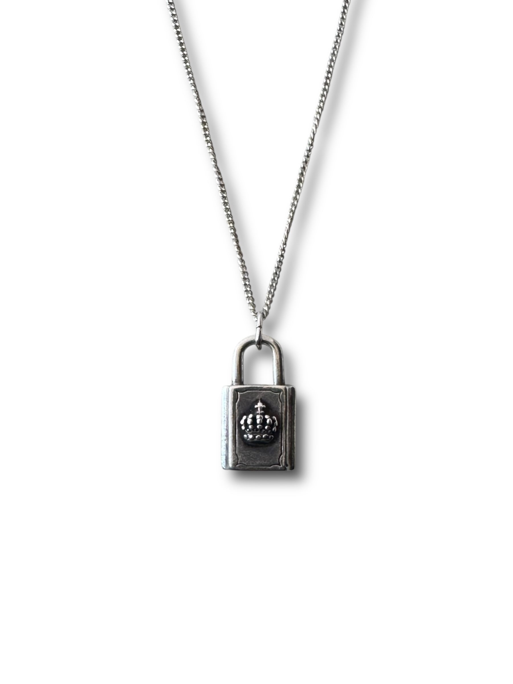 ♾vtg sv jewelry♾ padlock motif crown design necklace sv925