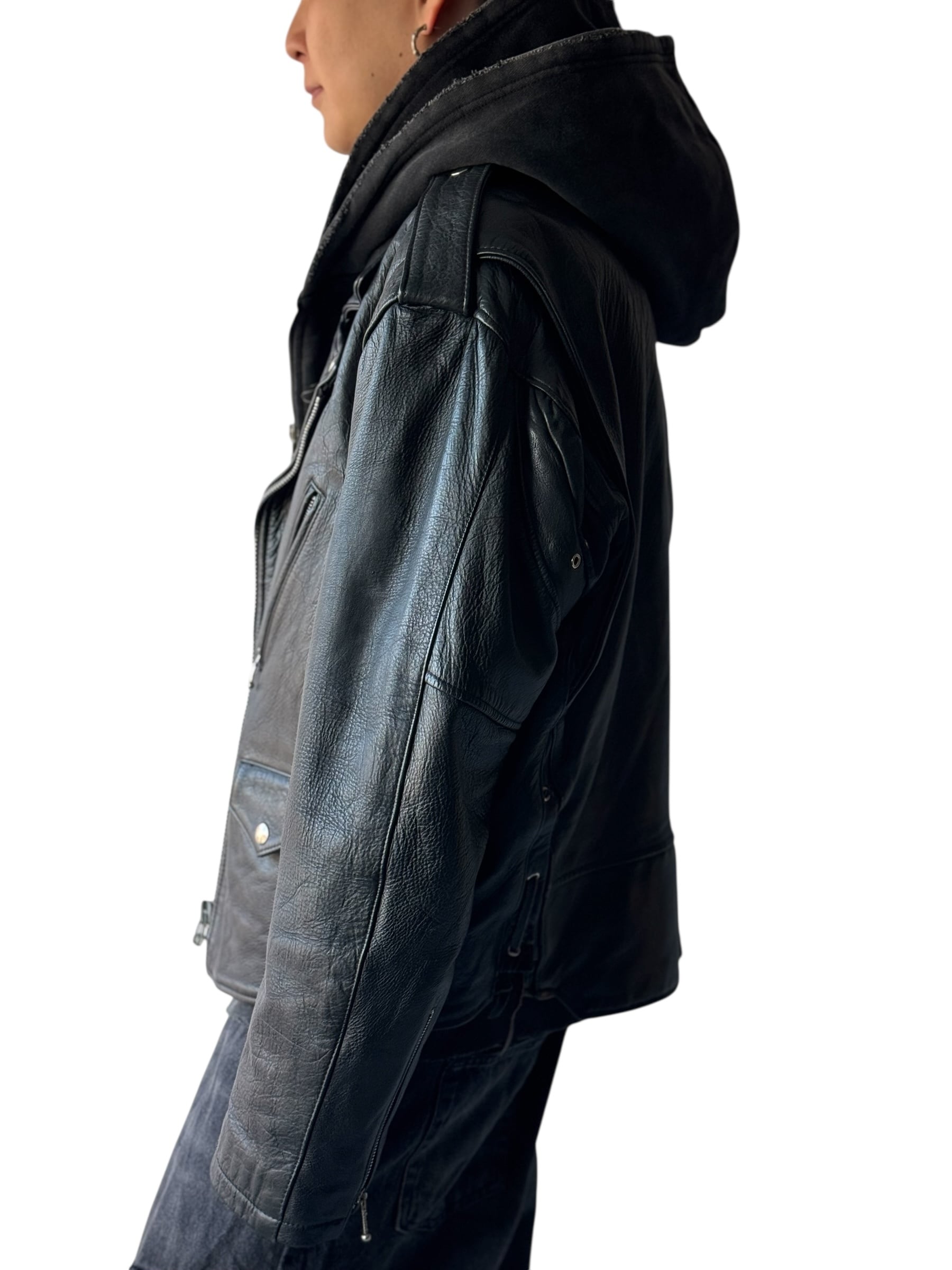♾design used♾ Side lace-up double-breasted leather rider's jacket