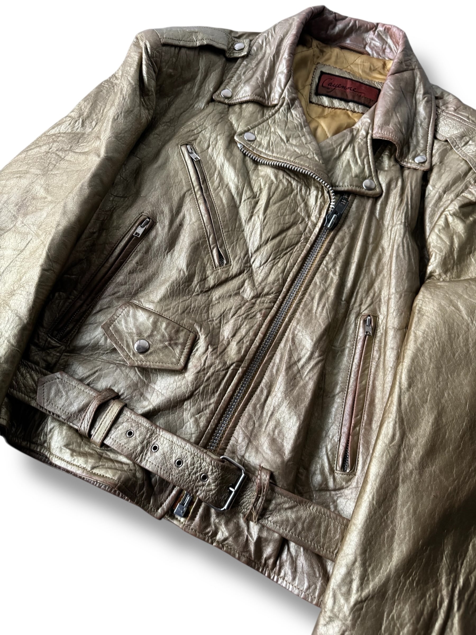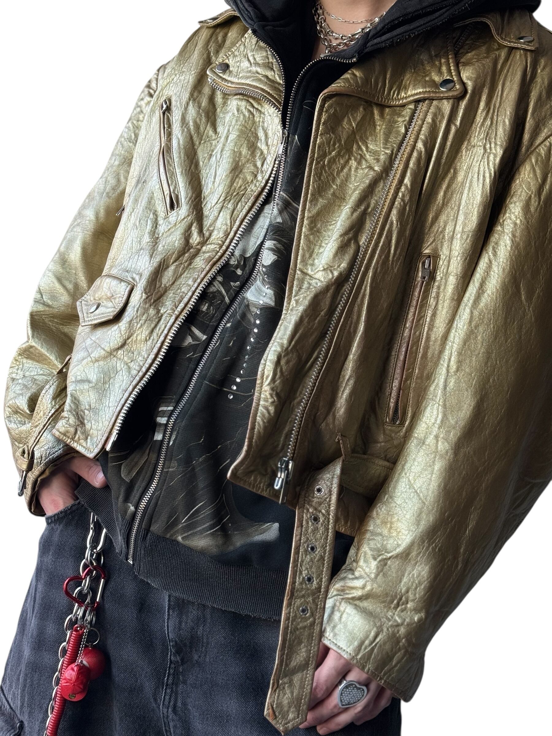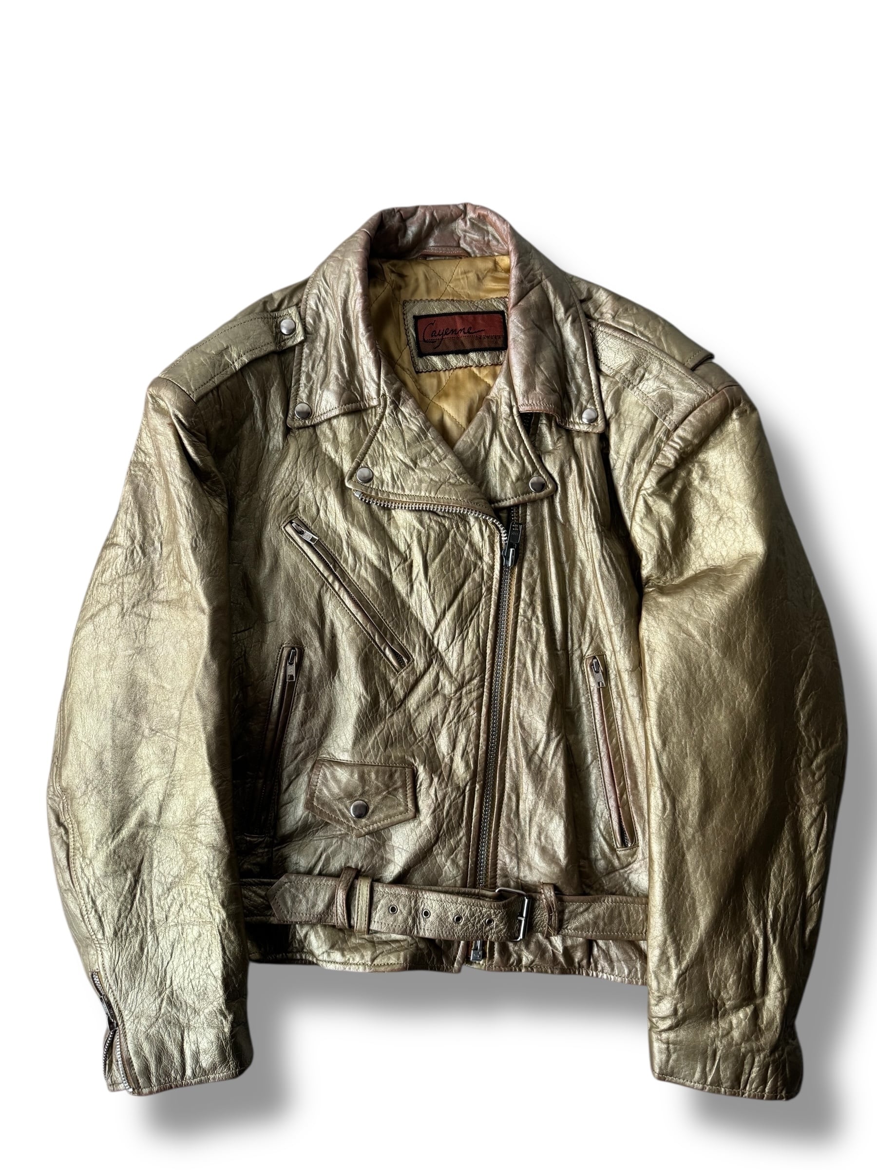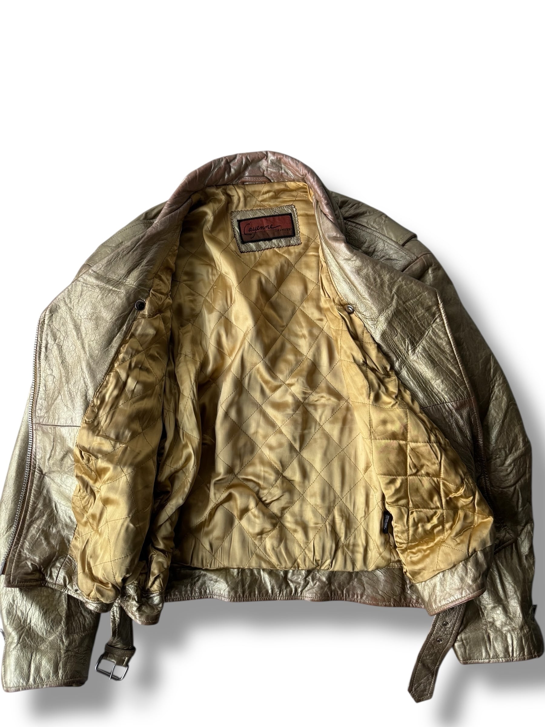 ♾️Cayenne ♾ Double-breasted gold leather rider's jacket