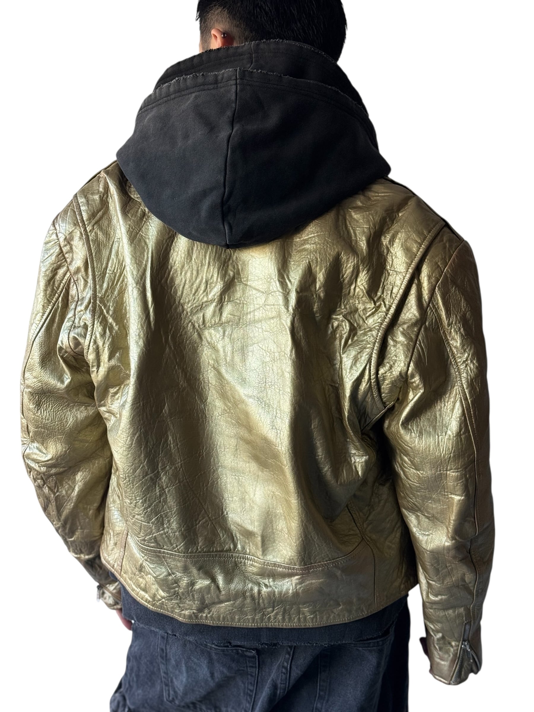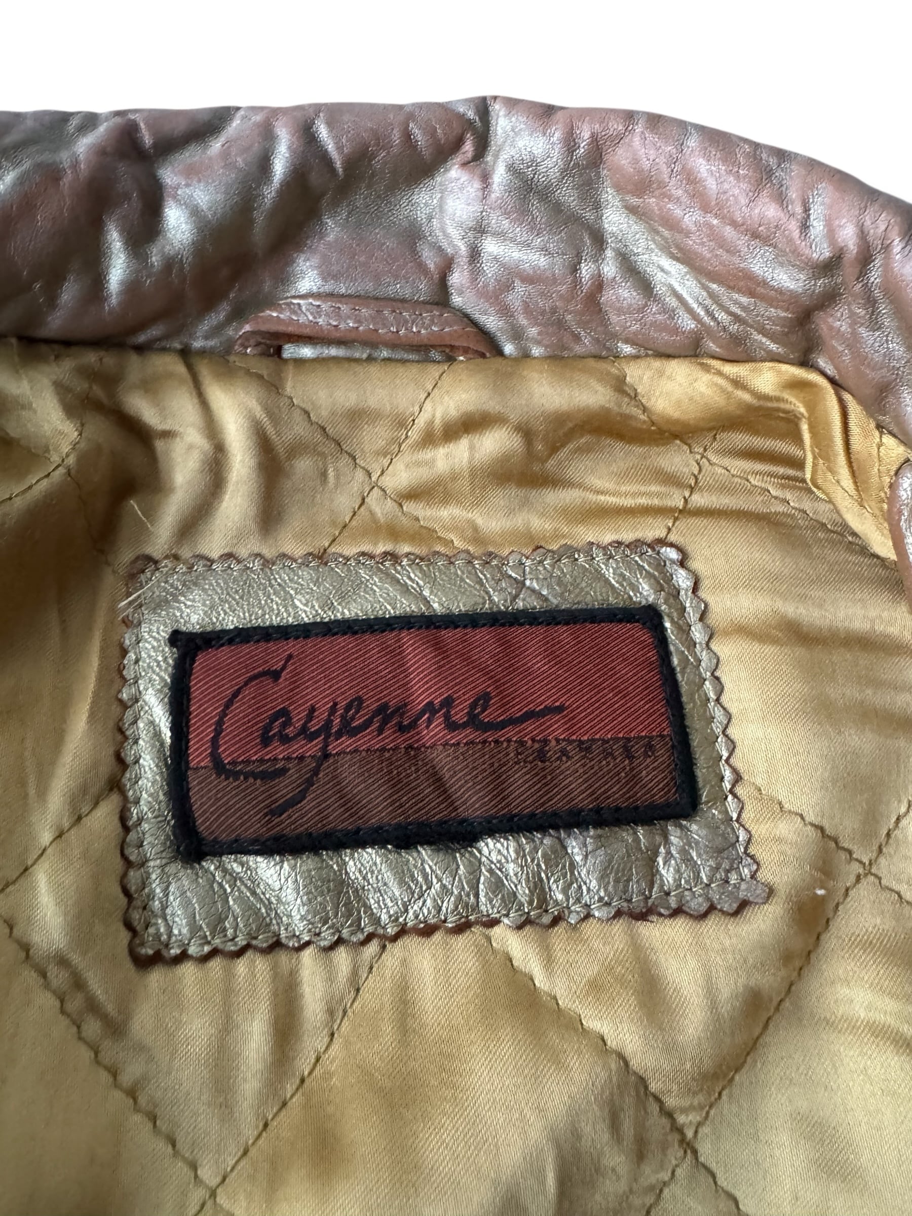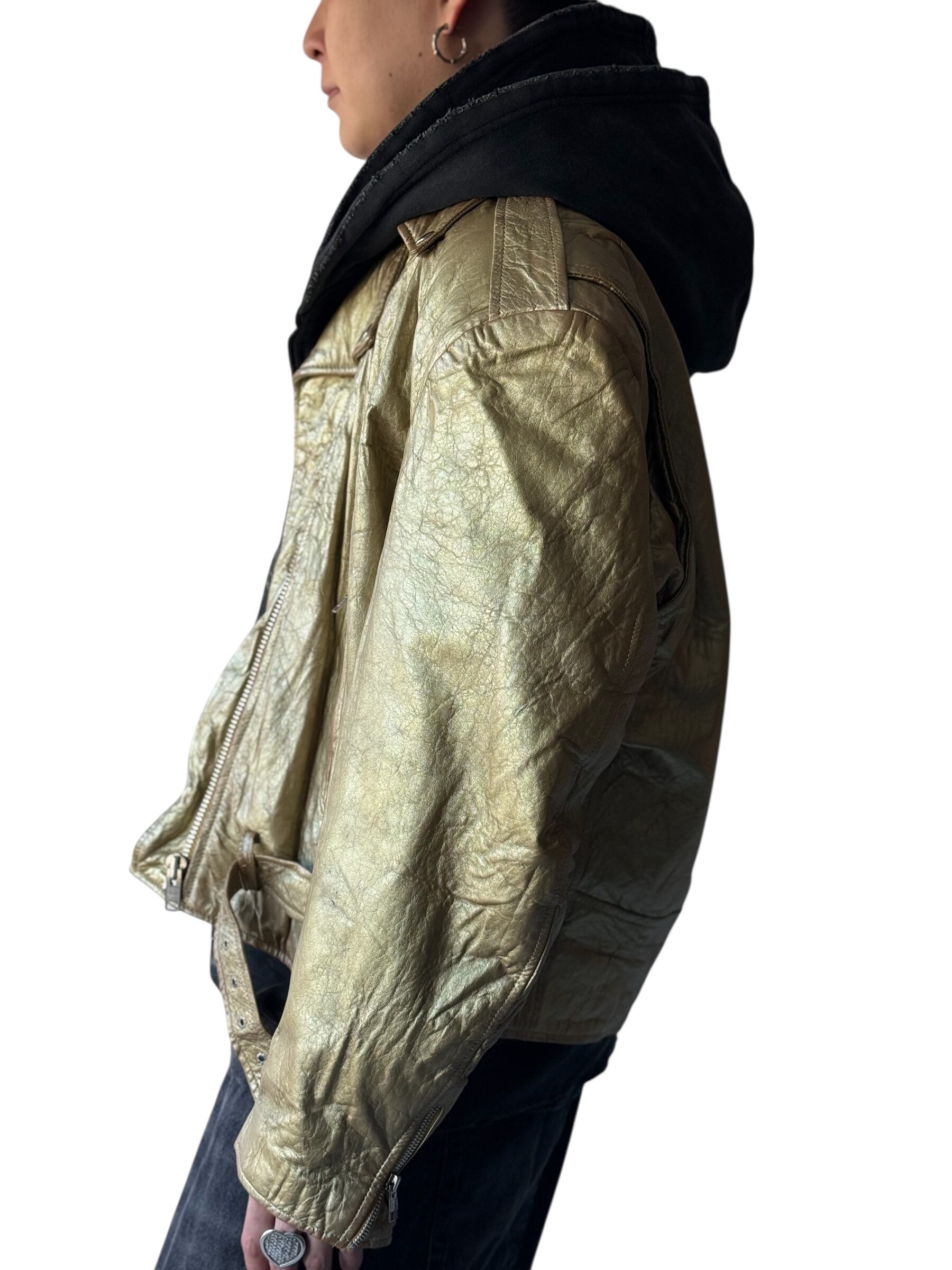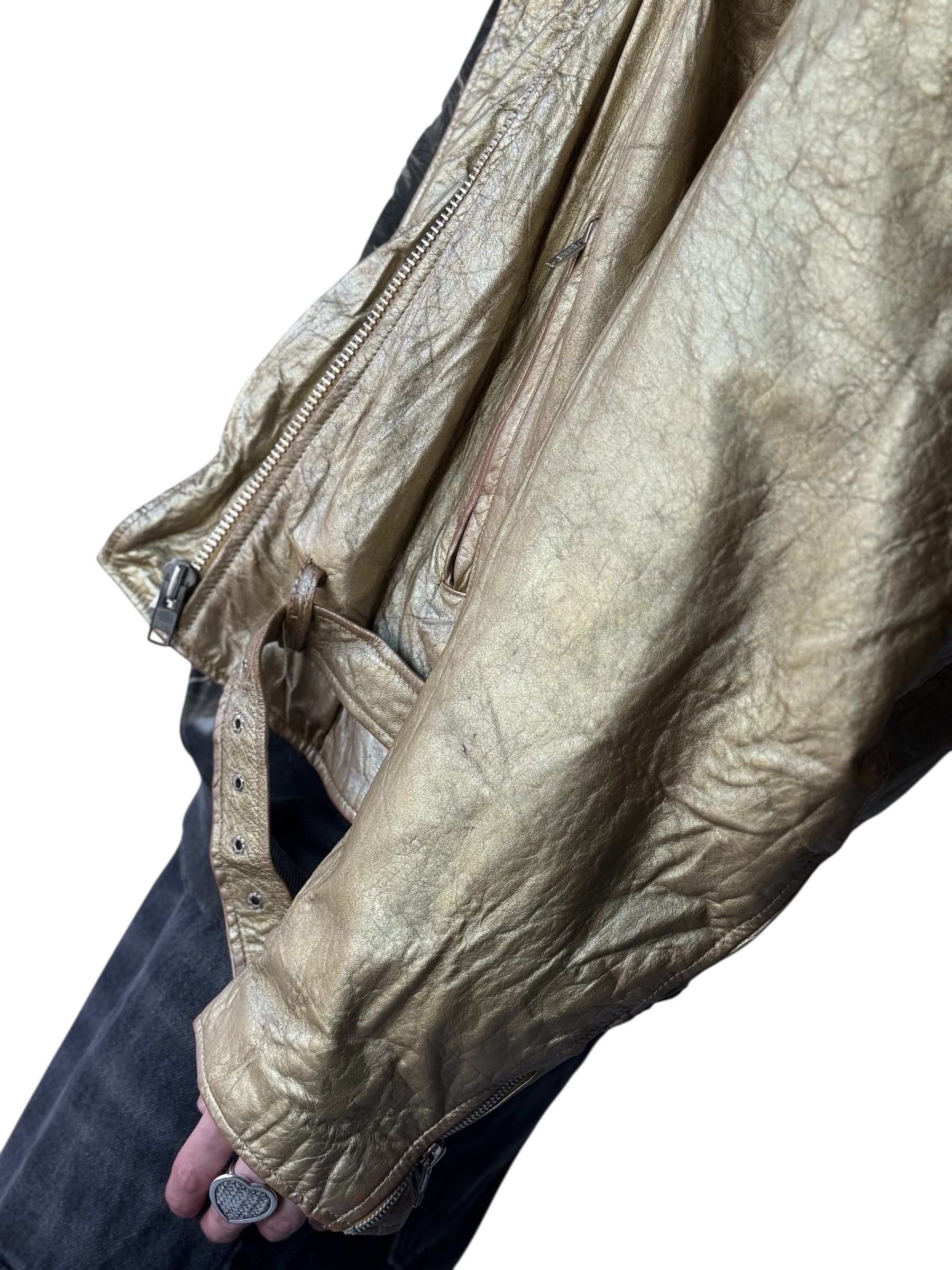♾️Cayenne ♾ Double-breasted gold leather rider's jacket