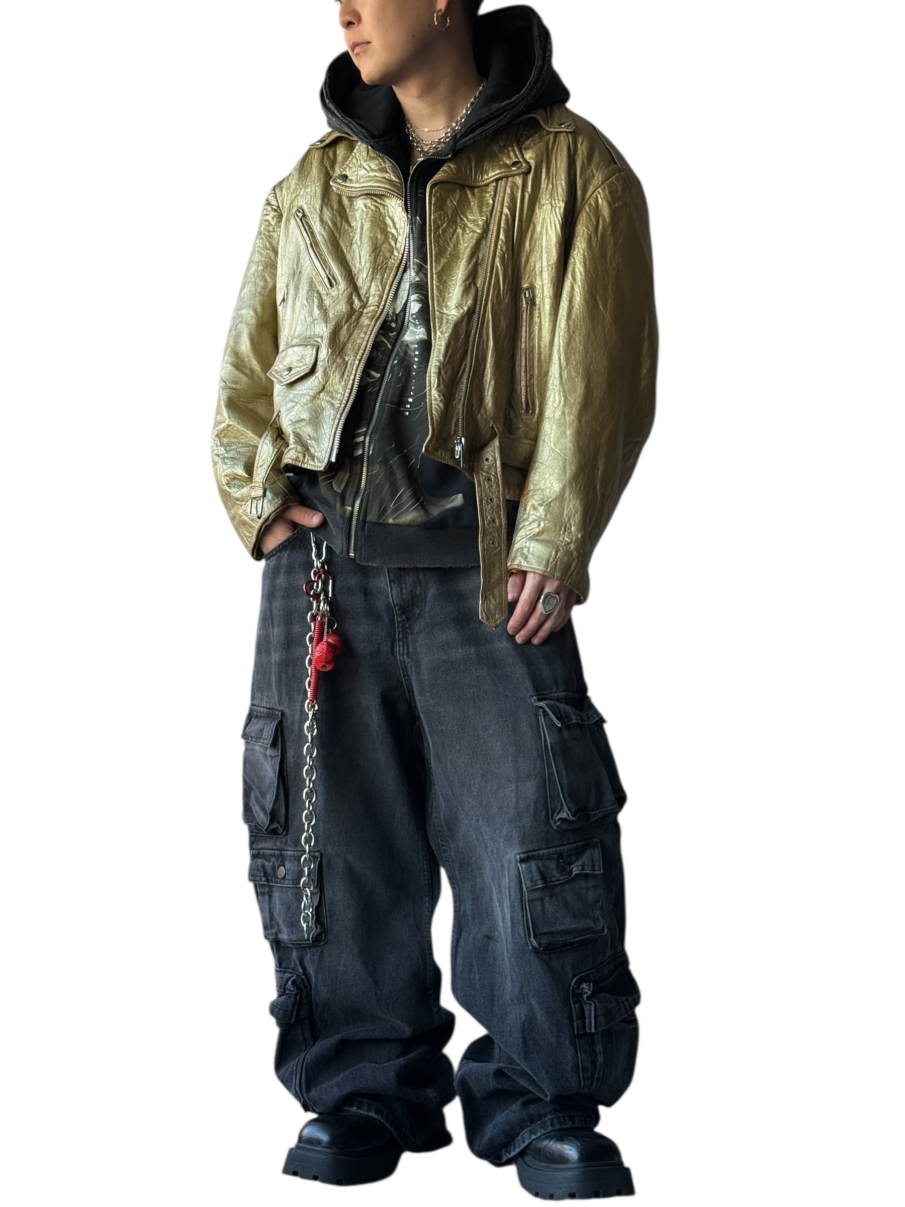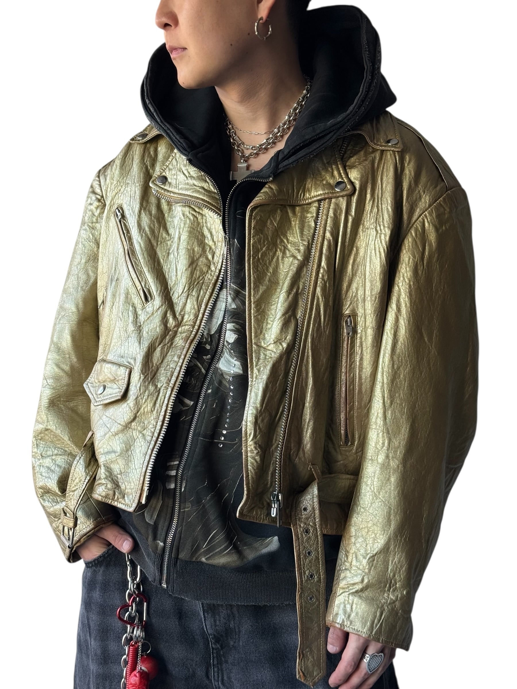イカつい印象のあるダブルライダースですがゴールドのレザーのためラグジュアリー感満載✨️✨️✨️✨️✨️