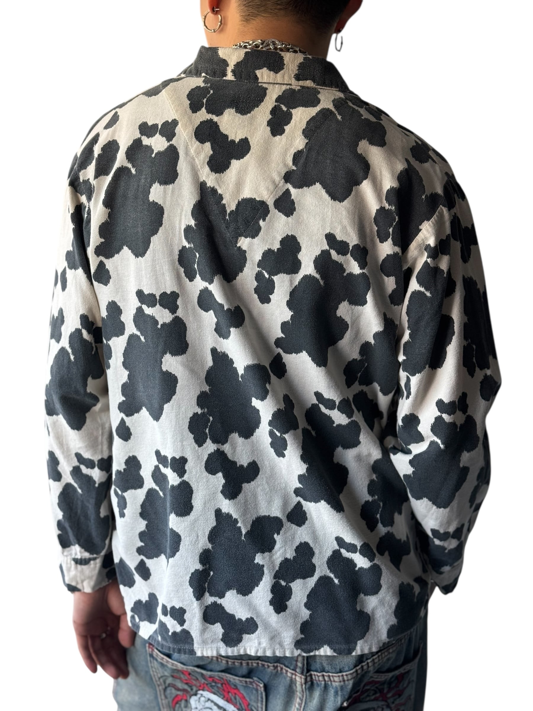 ♾️90's Nick&Nora♾️ cow pattern design pajama shirt MADE IN USA size SMALL
