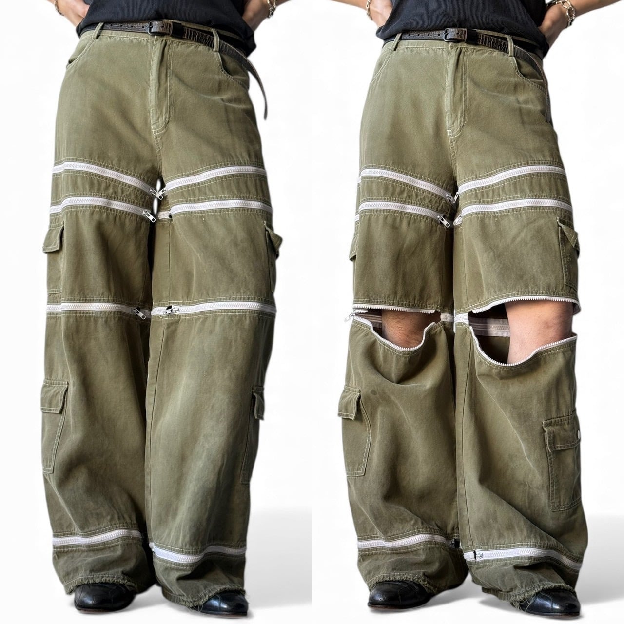 ジップを開けてダメージパンツのように素肌を見せたり、付け外してハーフパンツにもなる何パターンもたのしめる無限大の可能性を感じる仕様‼️✨️