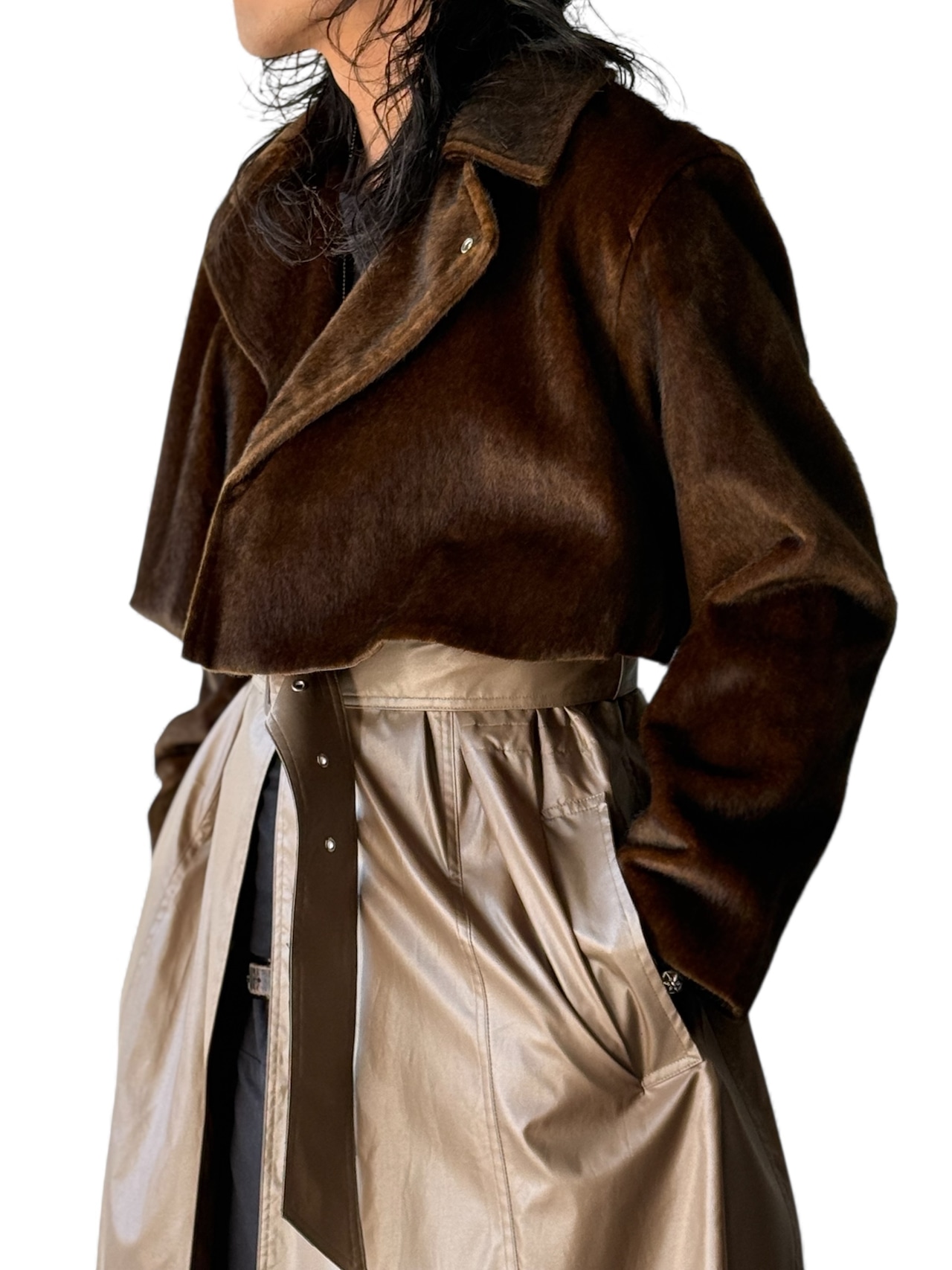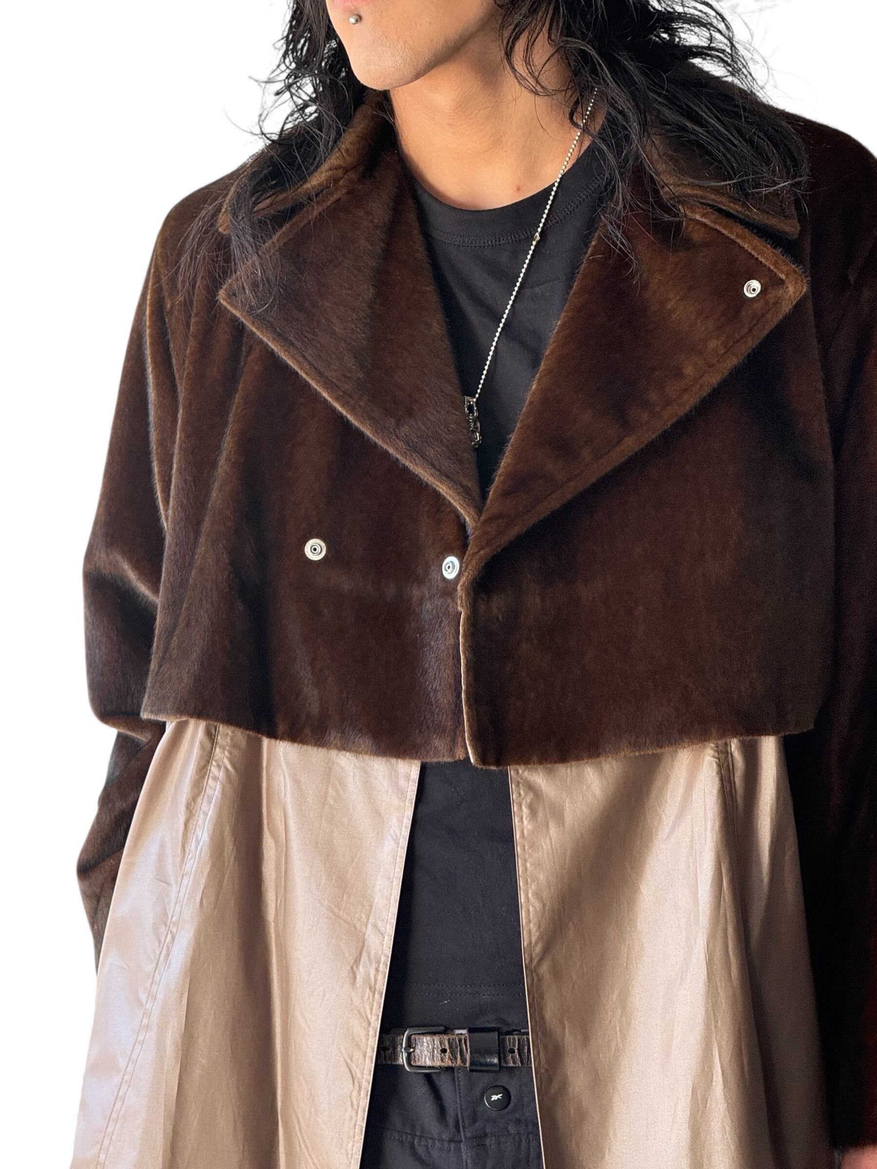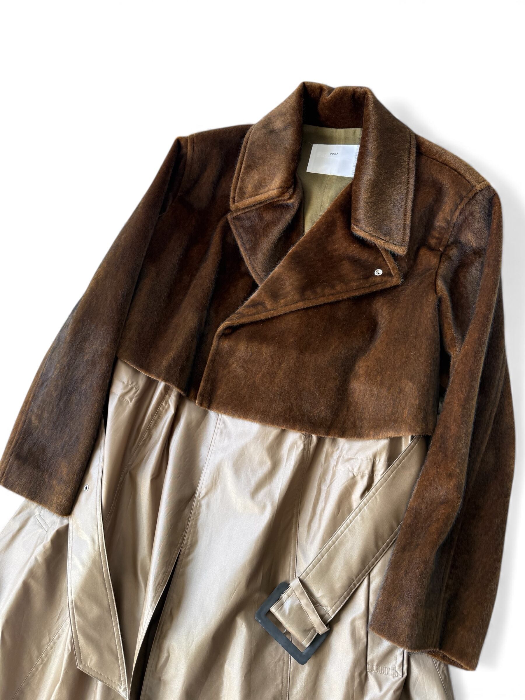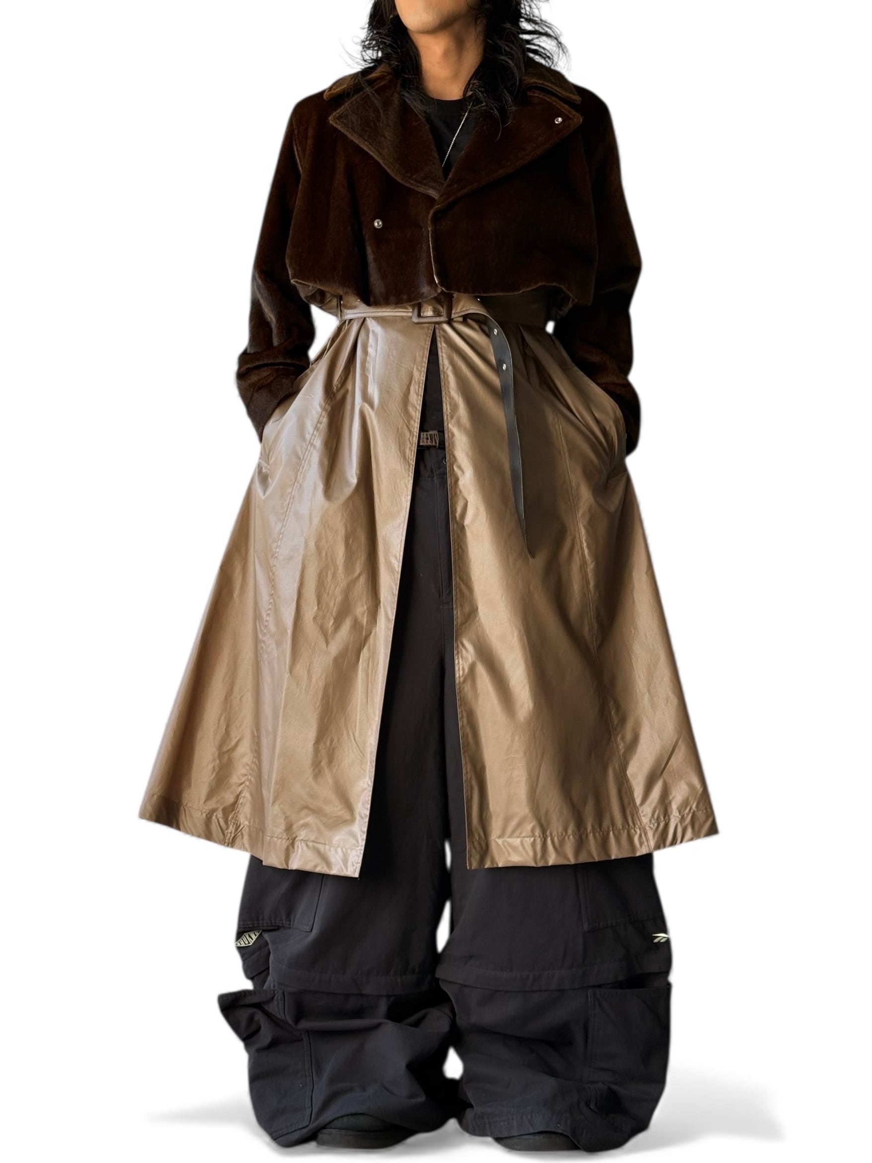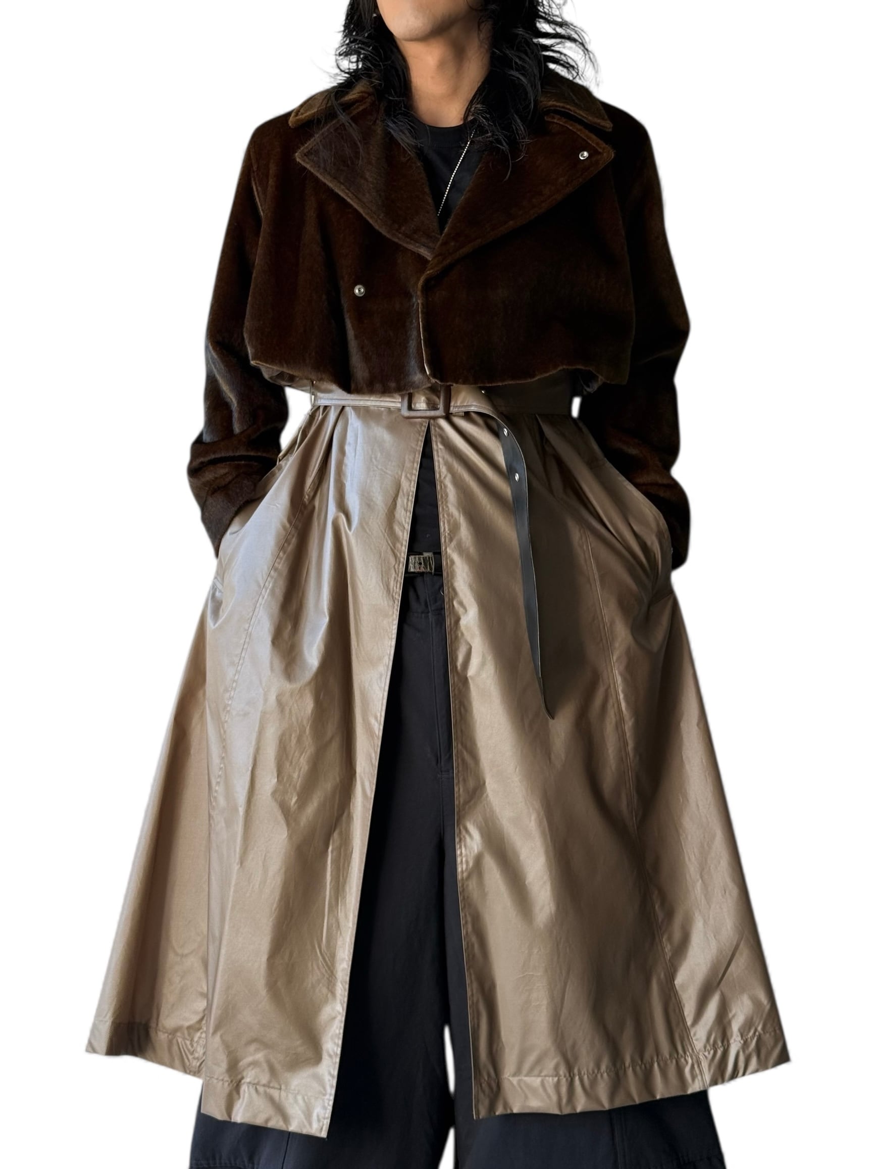 ウエストから下の切り返しはナイロン素材でファーのライダースを重ねたようなレイヤードデザイン‼️