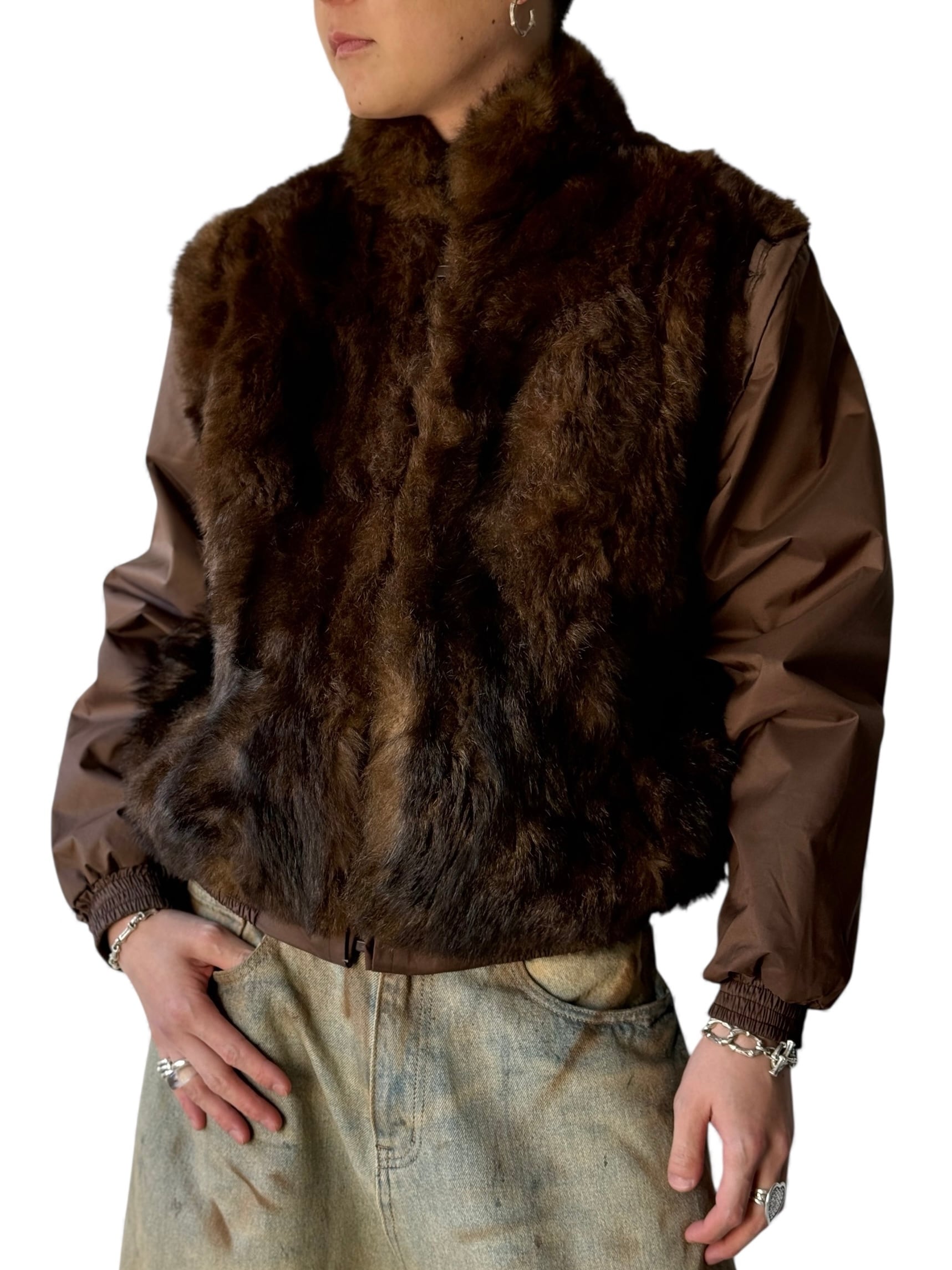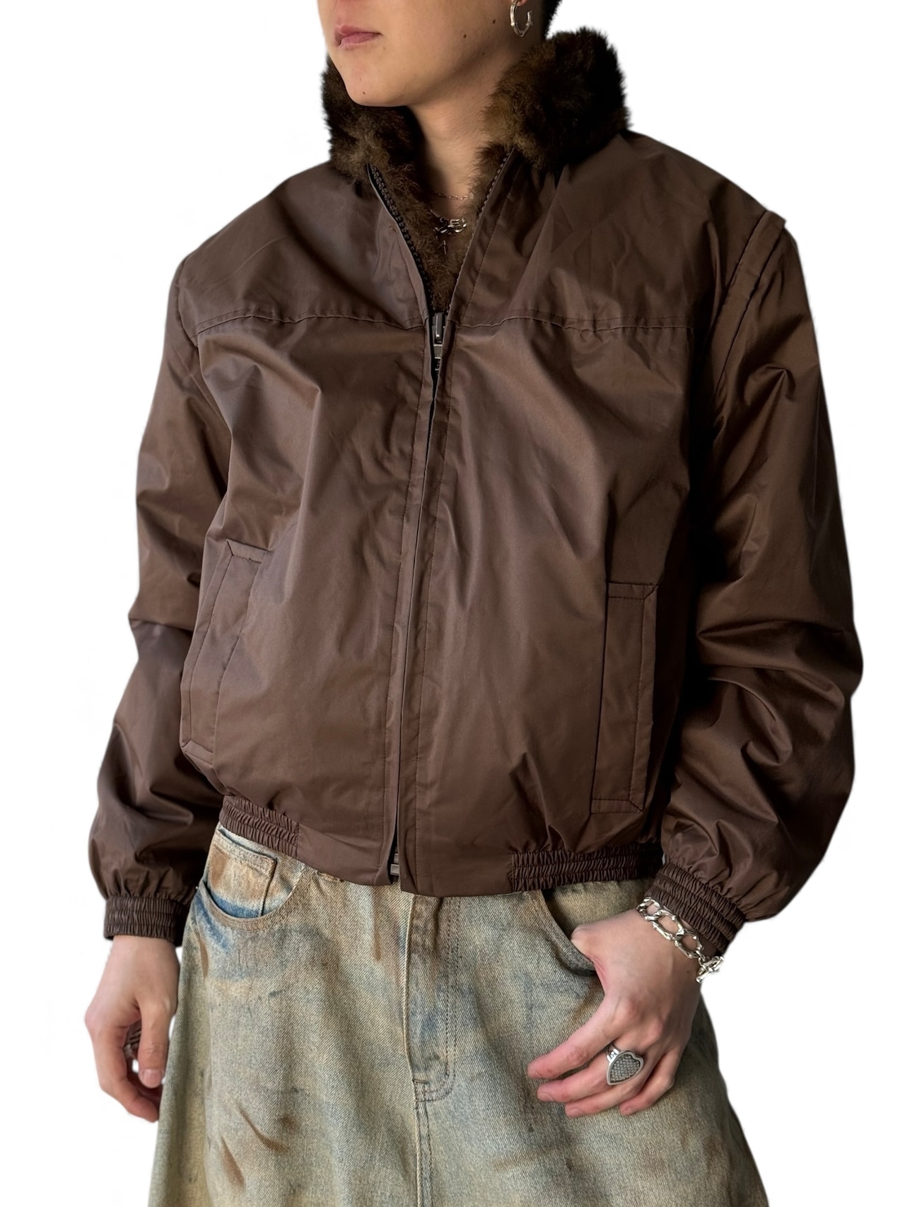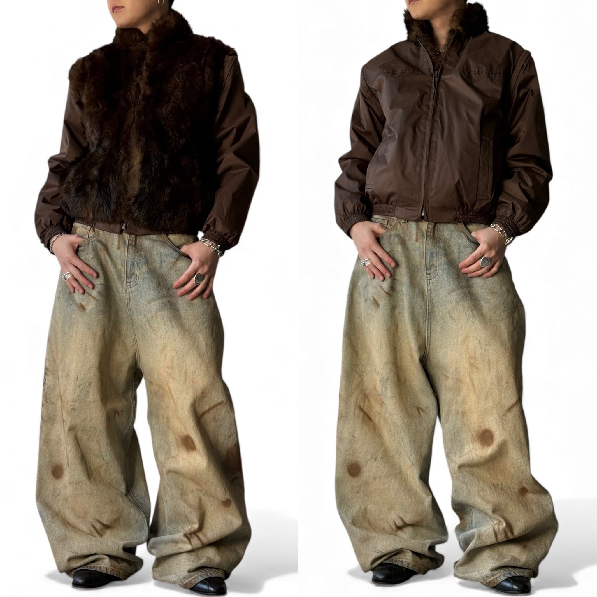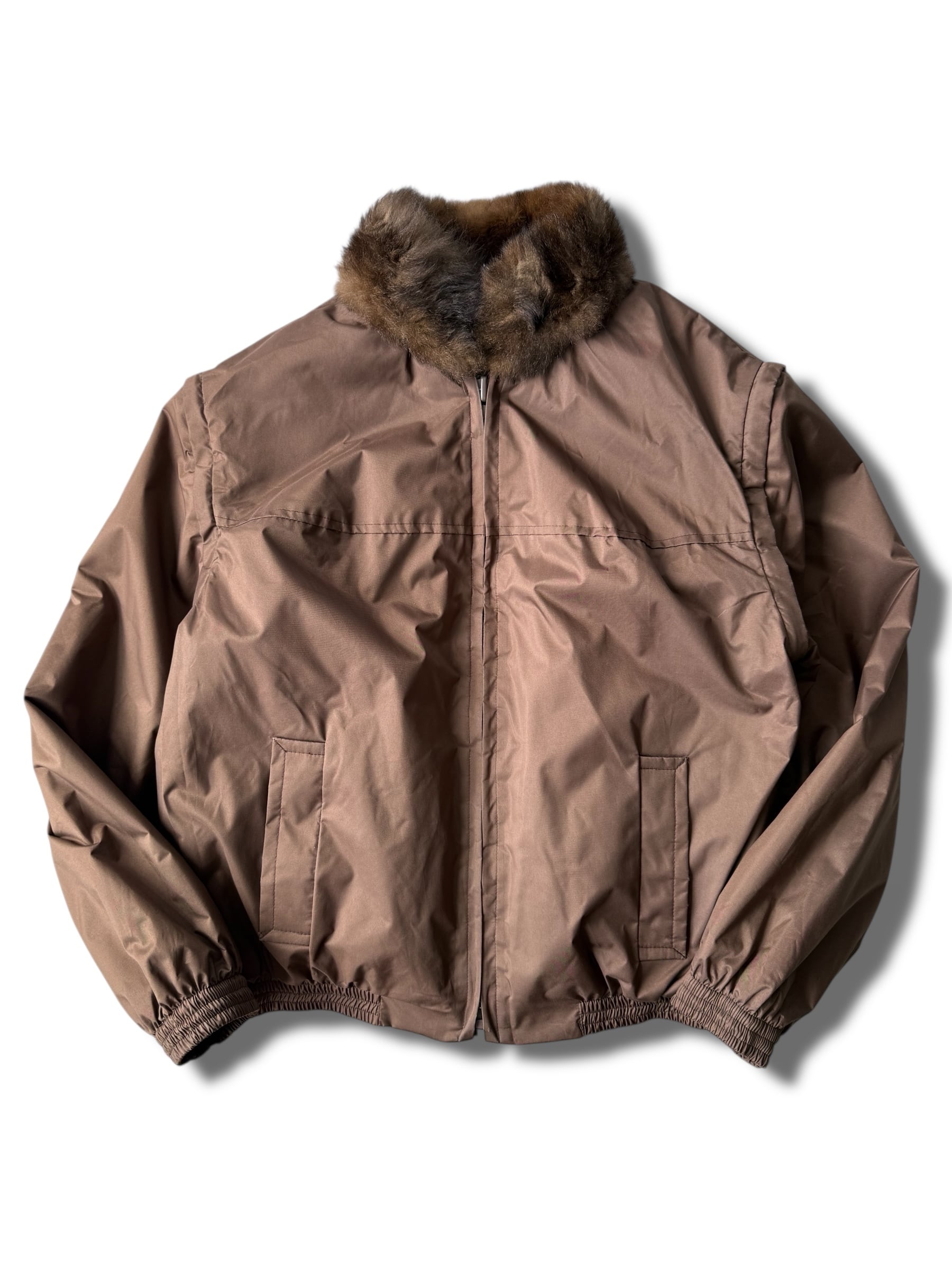【90s unknown】real fur switching reversible Detachable 4way pattern blouson