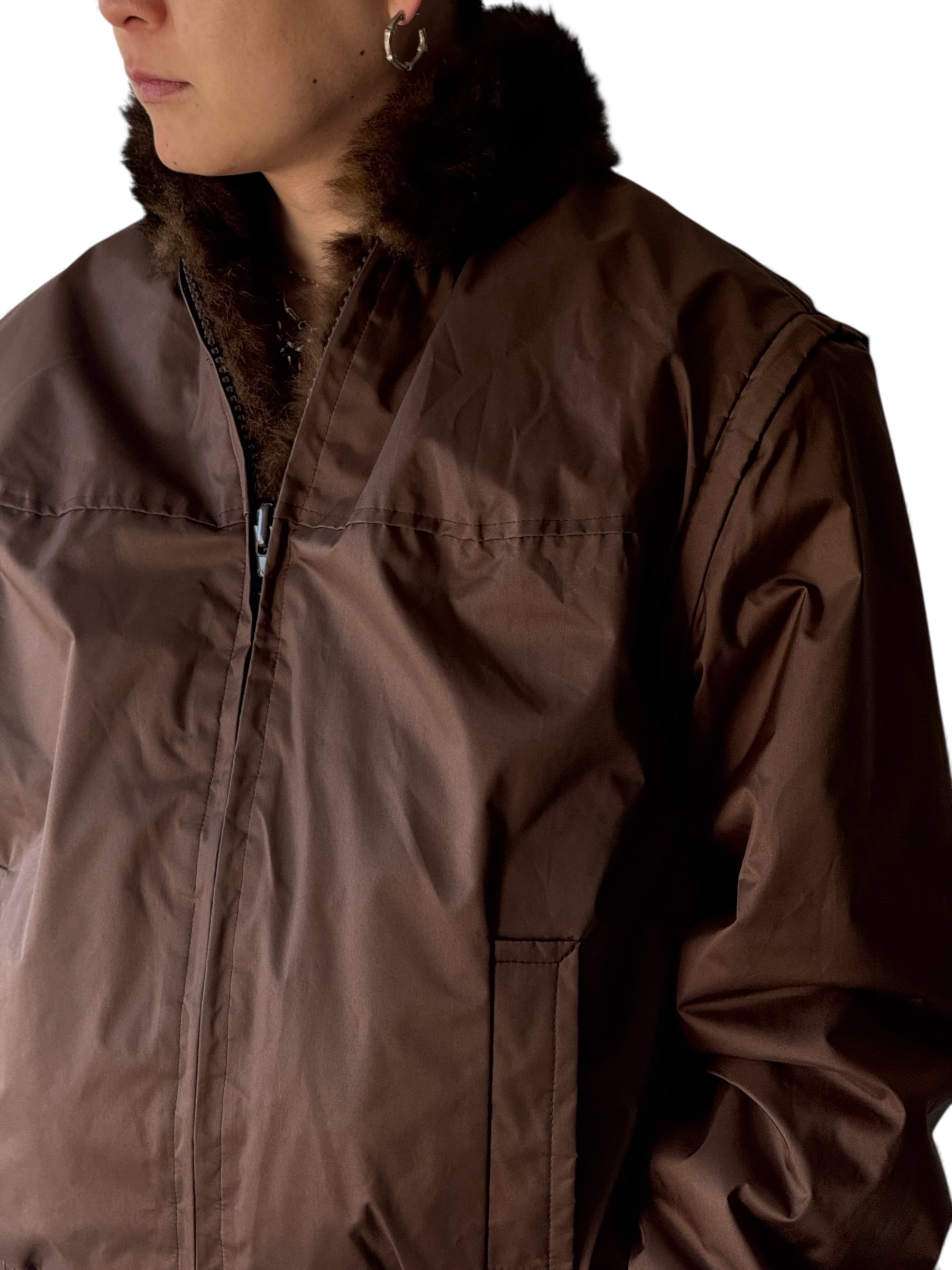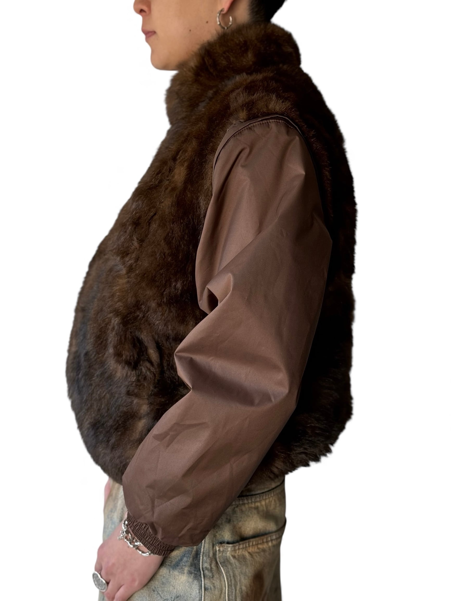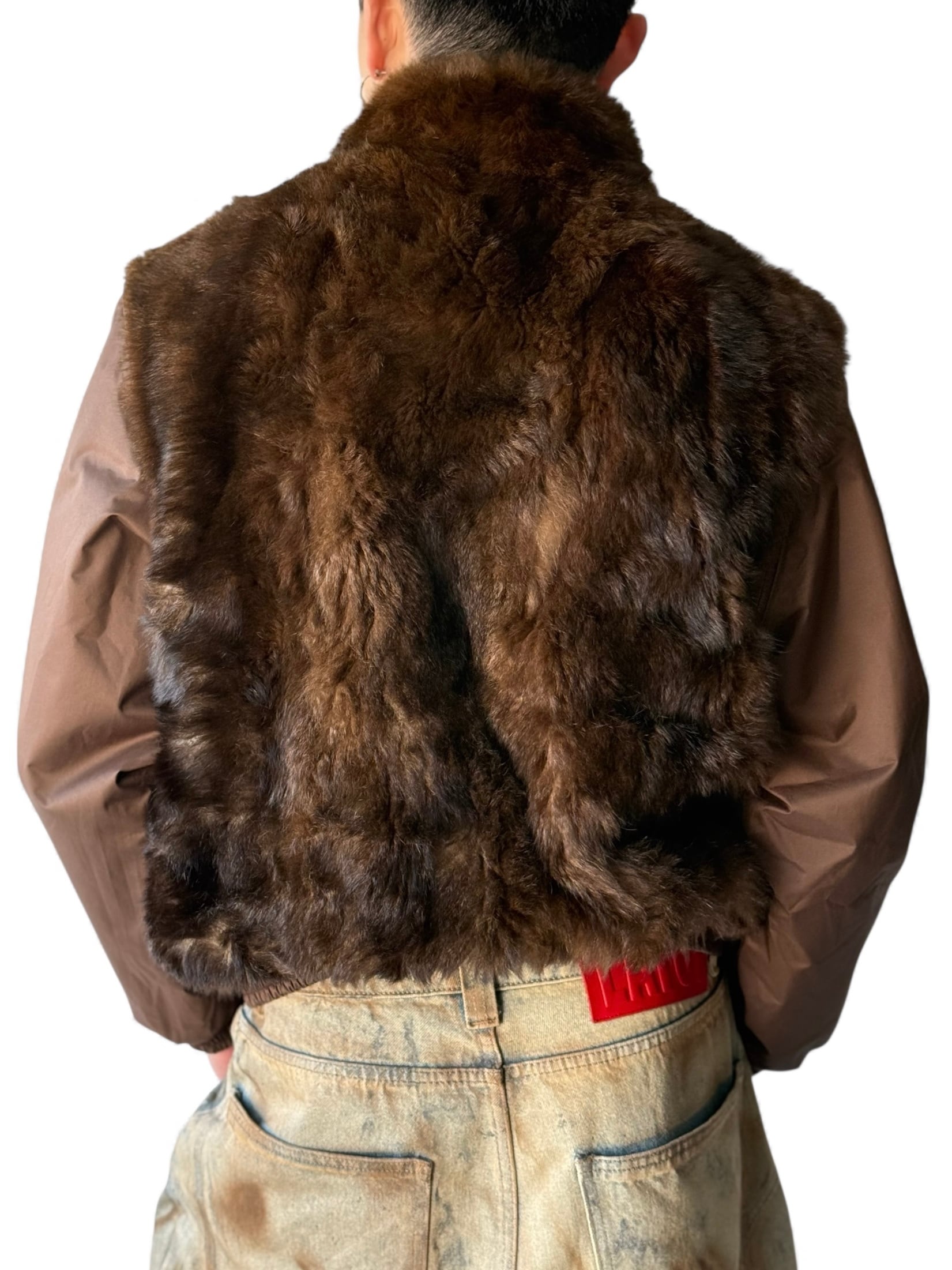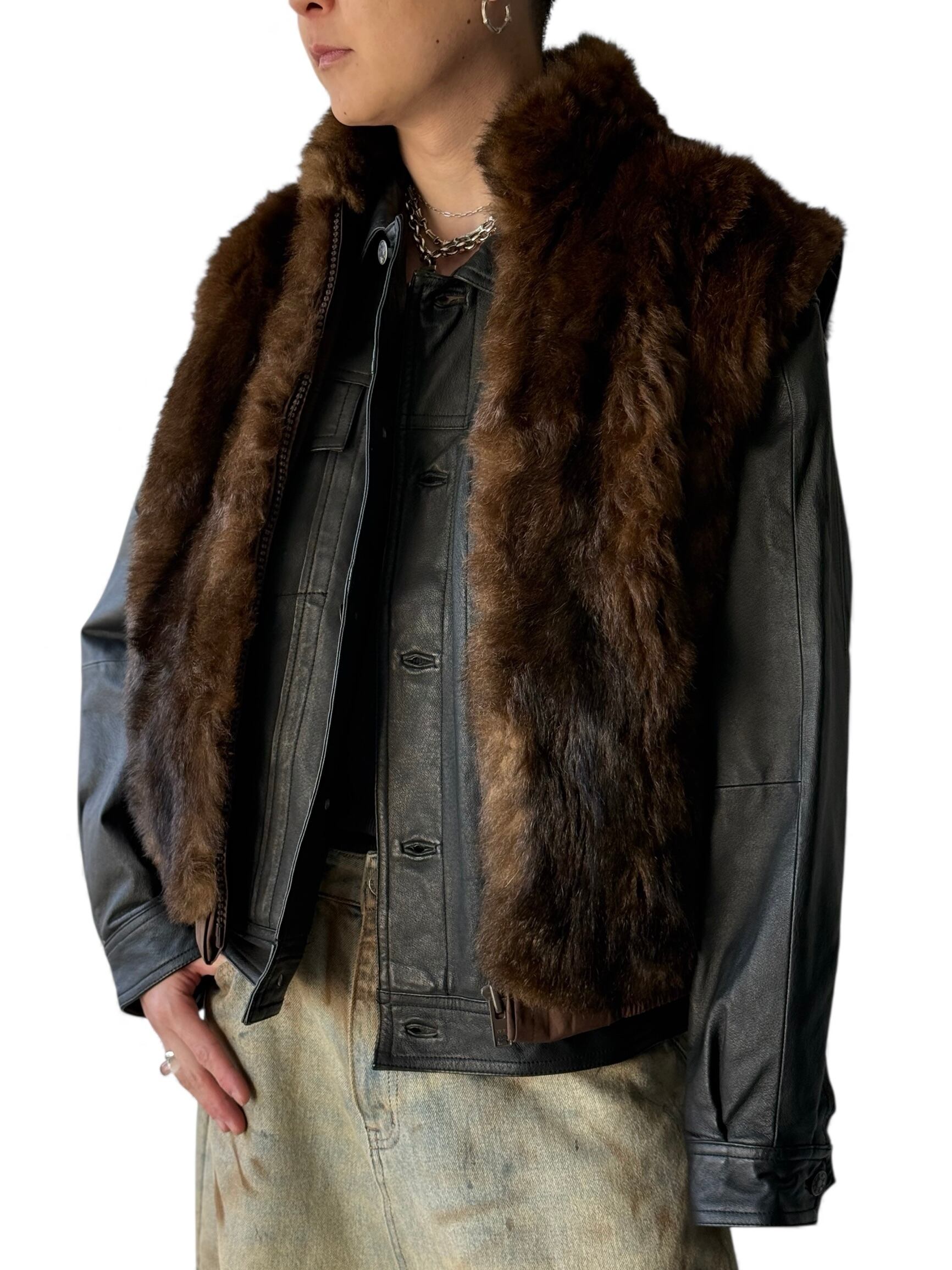 【90s unknown】real fur switching reversible Detachable 4way pattern blouson