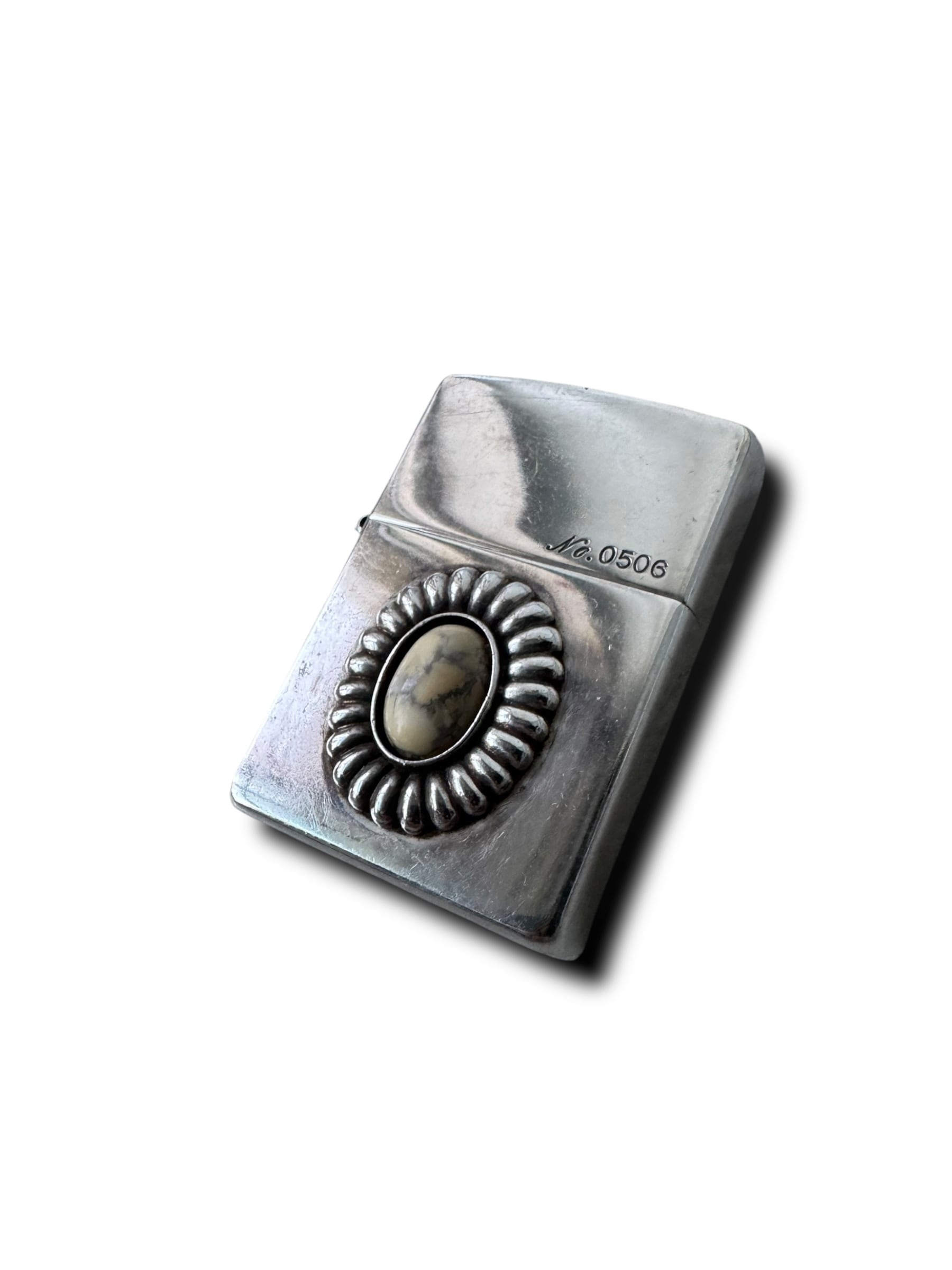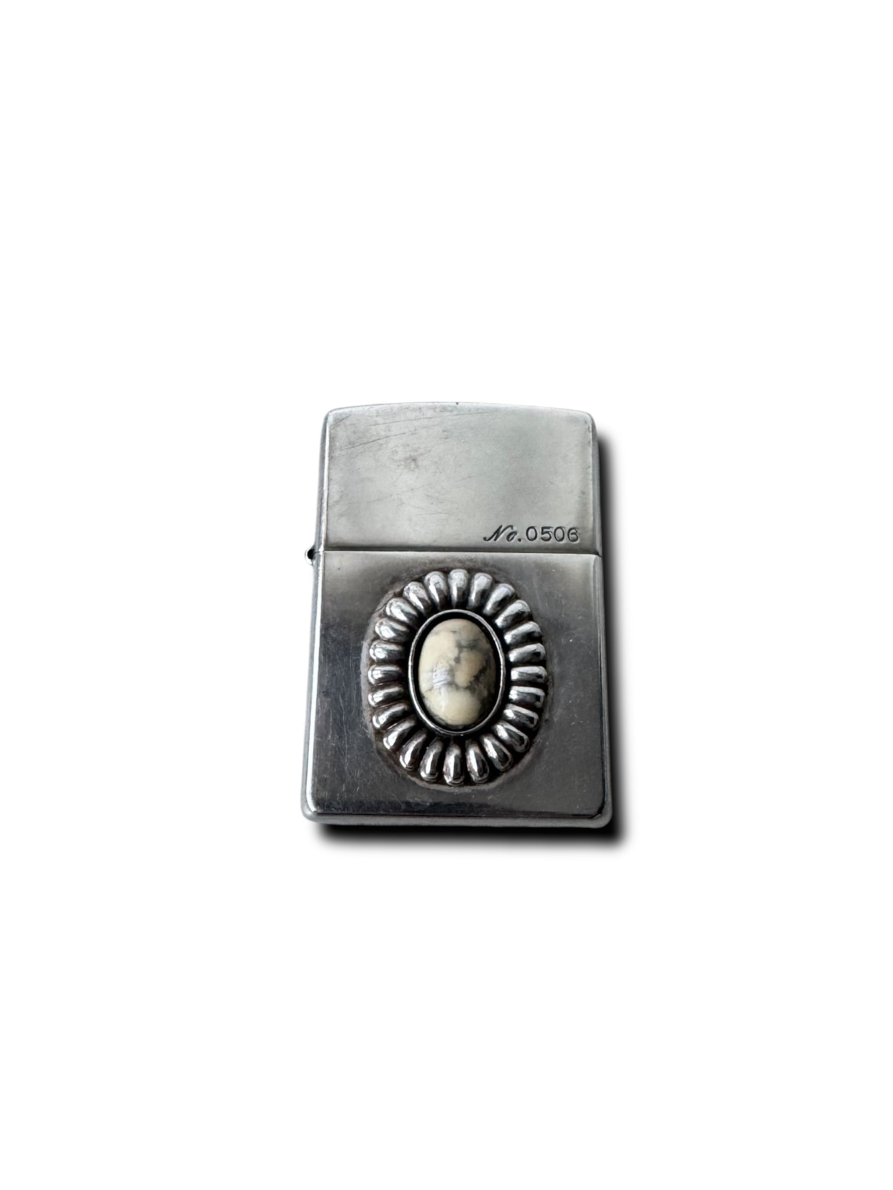 インディアンジュエリーの様なフラワーデザインにセンターにはホワイトバッファローがセットされてアクセントになったデザインジッポライターの入荷‼️