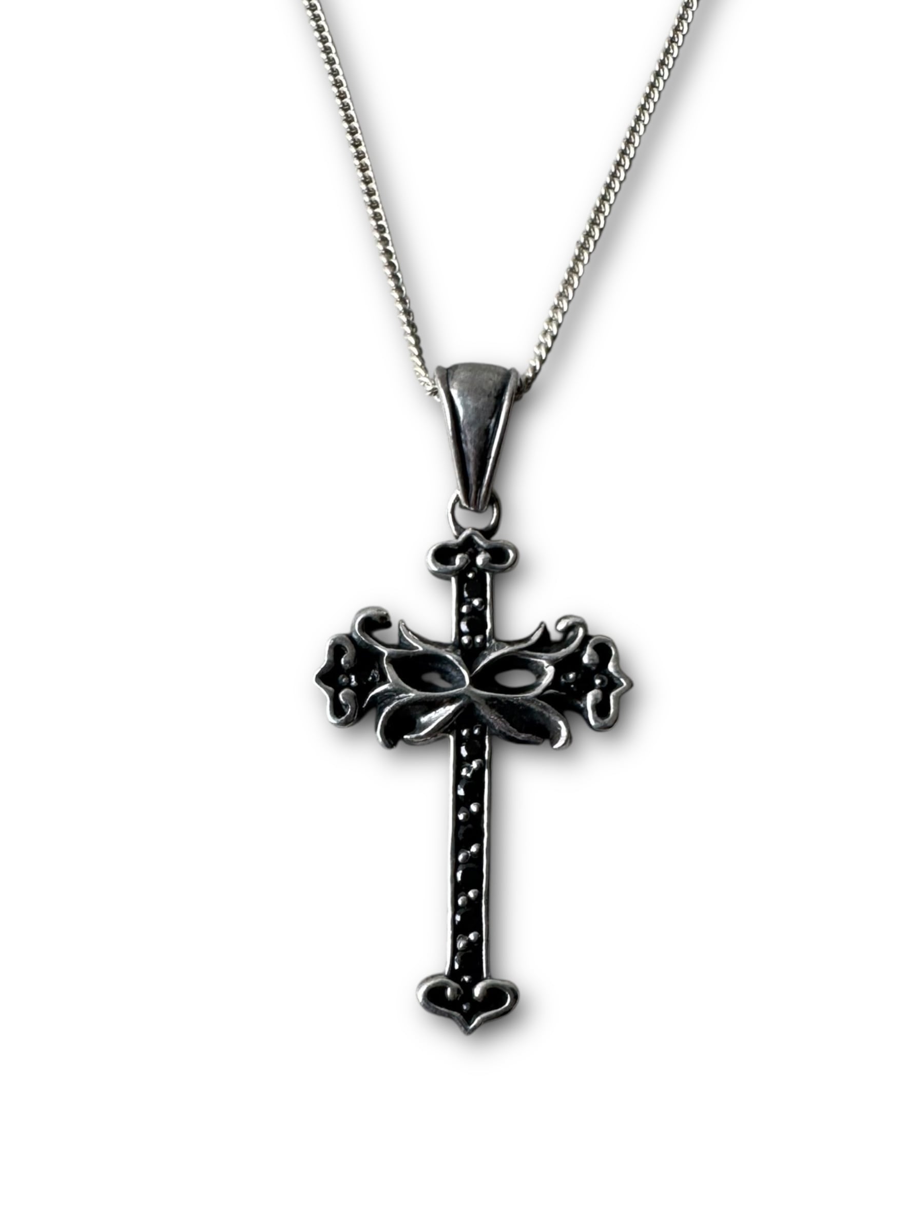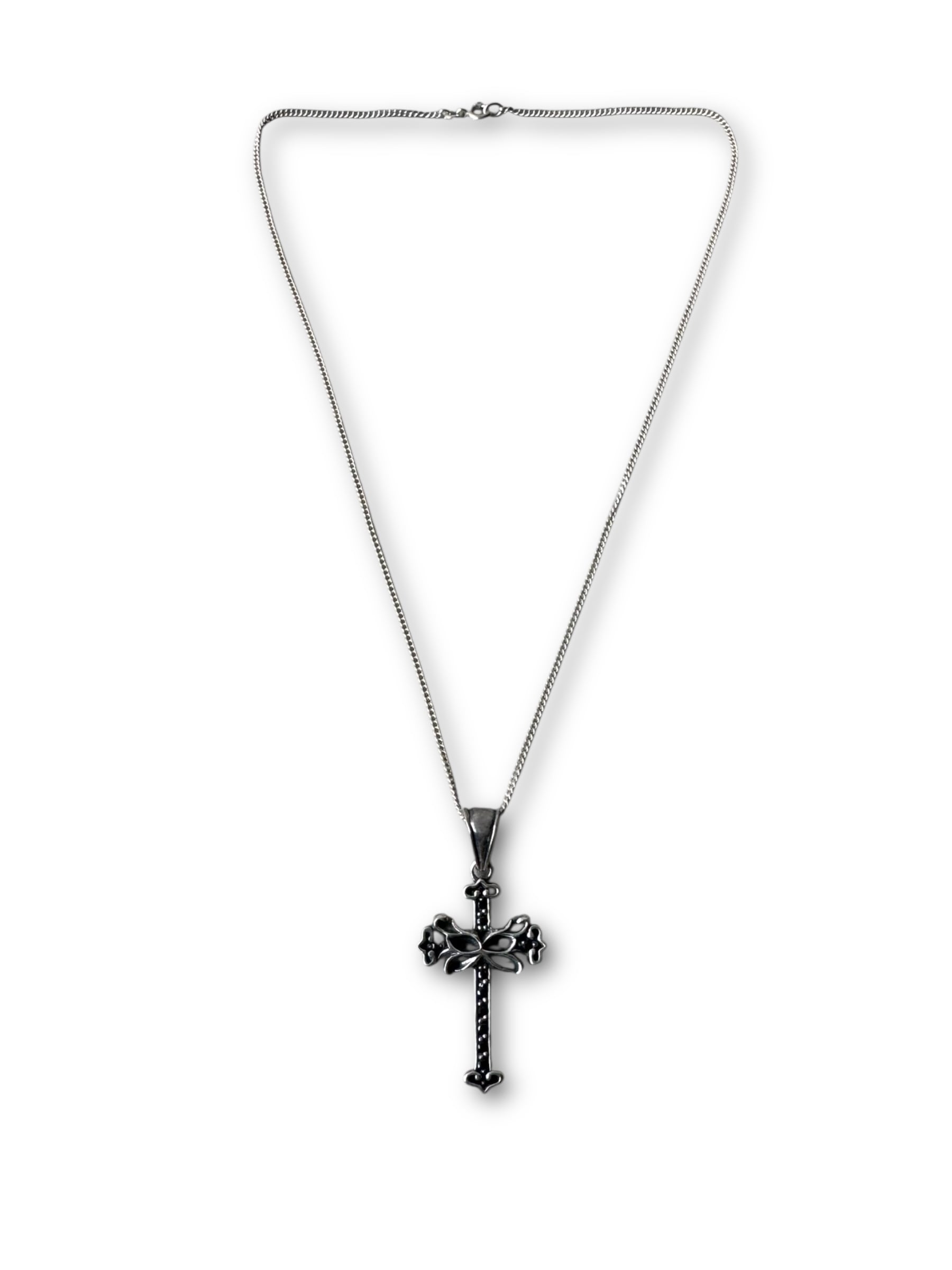 ♾vtg sv jewelry♾ Floral motif cross design necklace sv925
