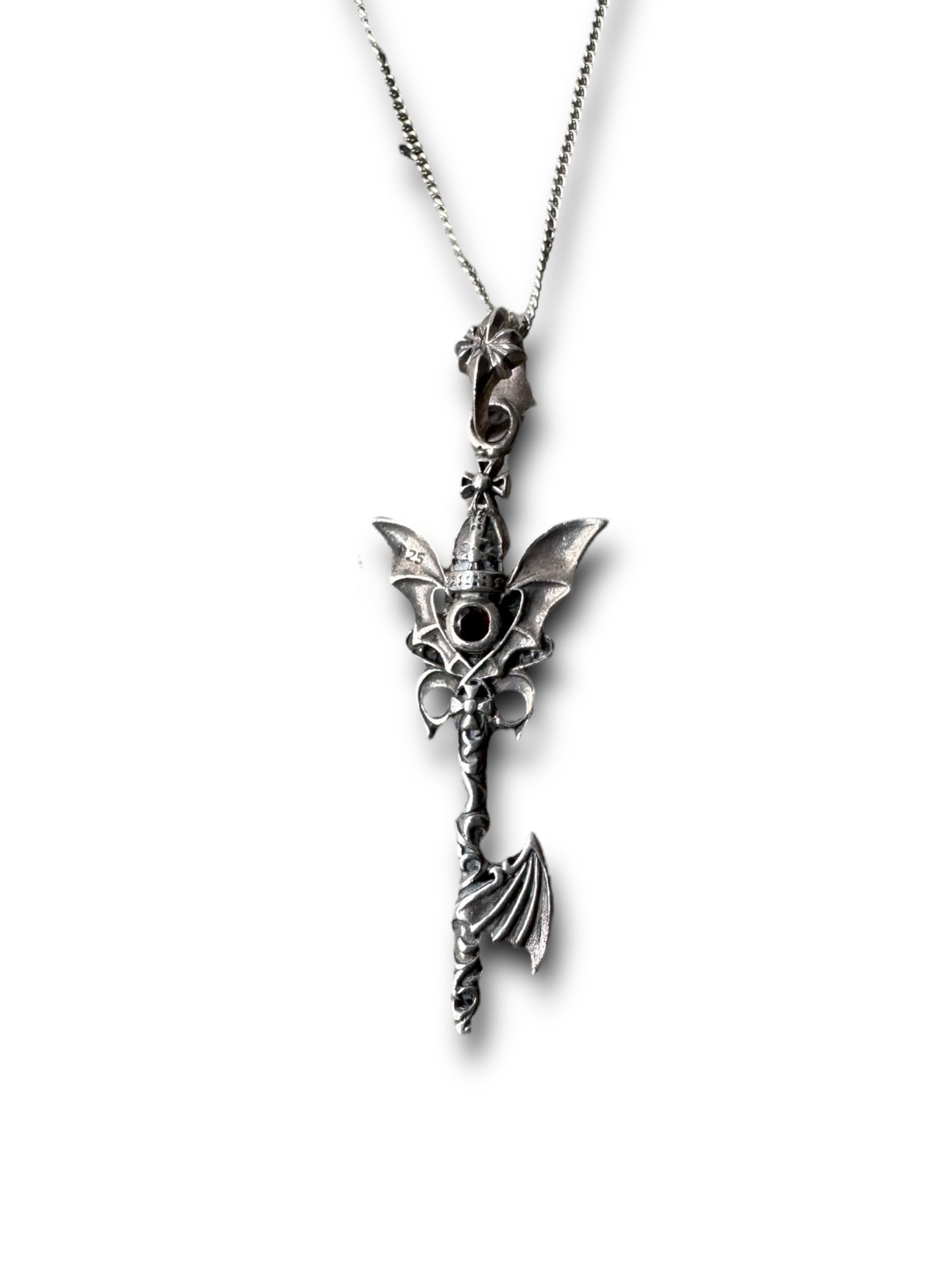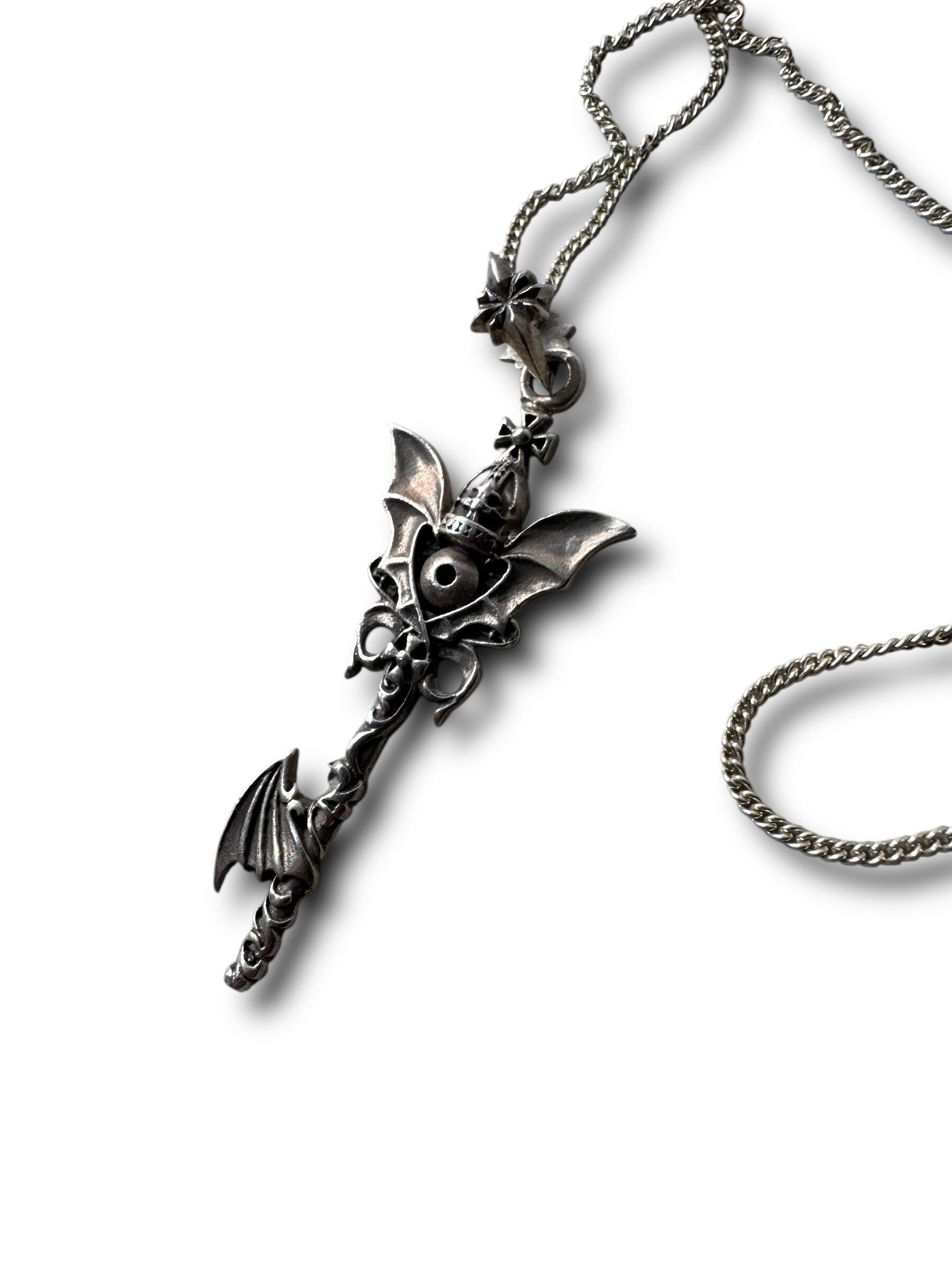 ♾vintage silver jewelry♾ Hell Bat Wing key Zirgonia Necklace