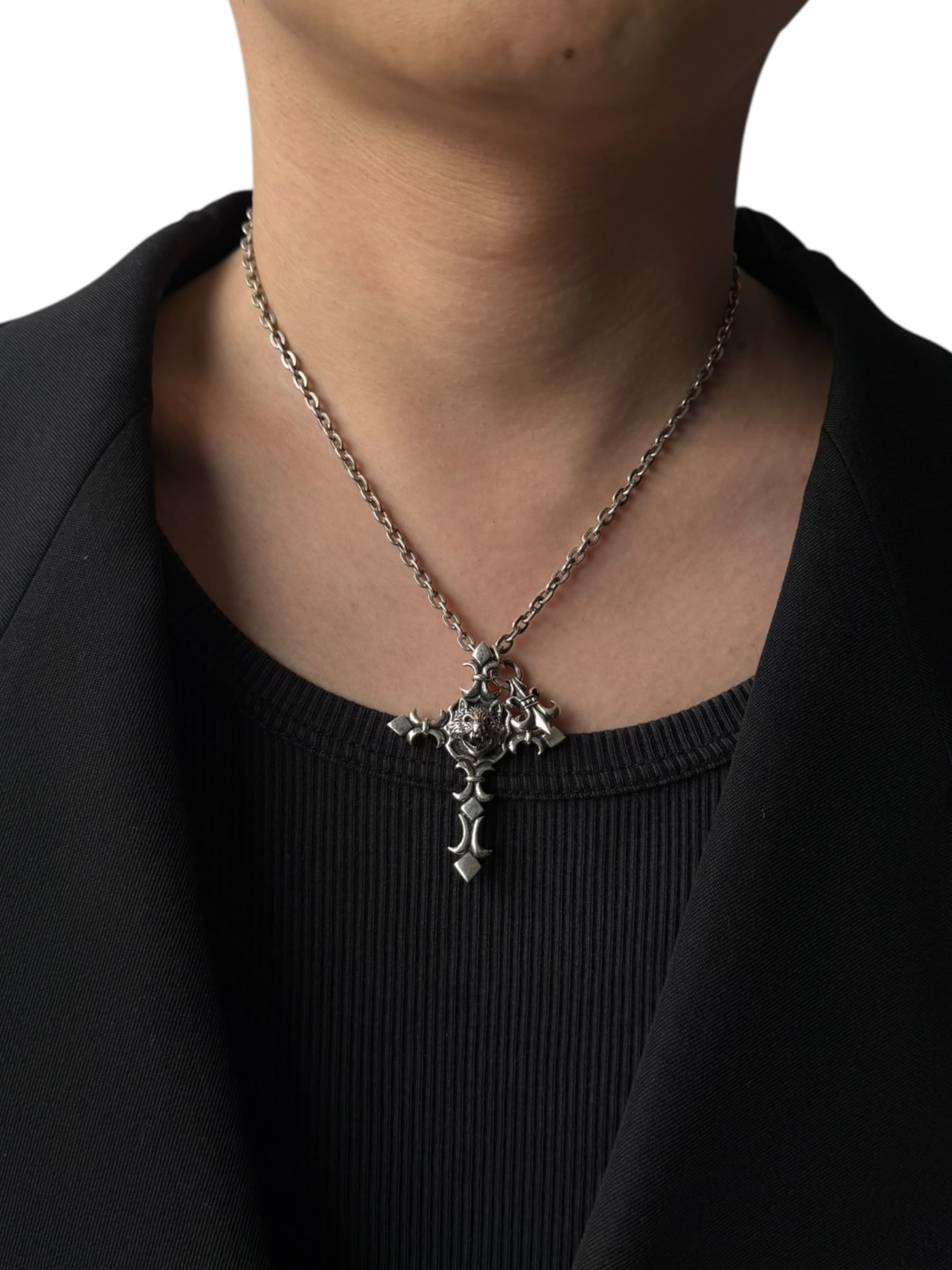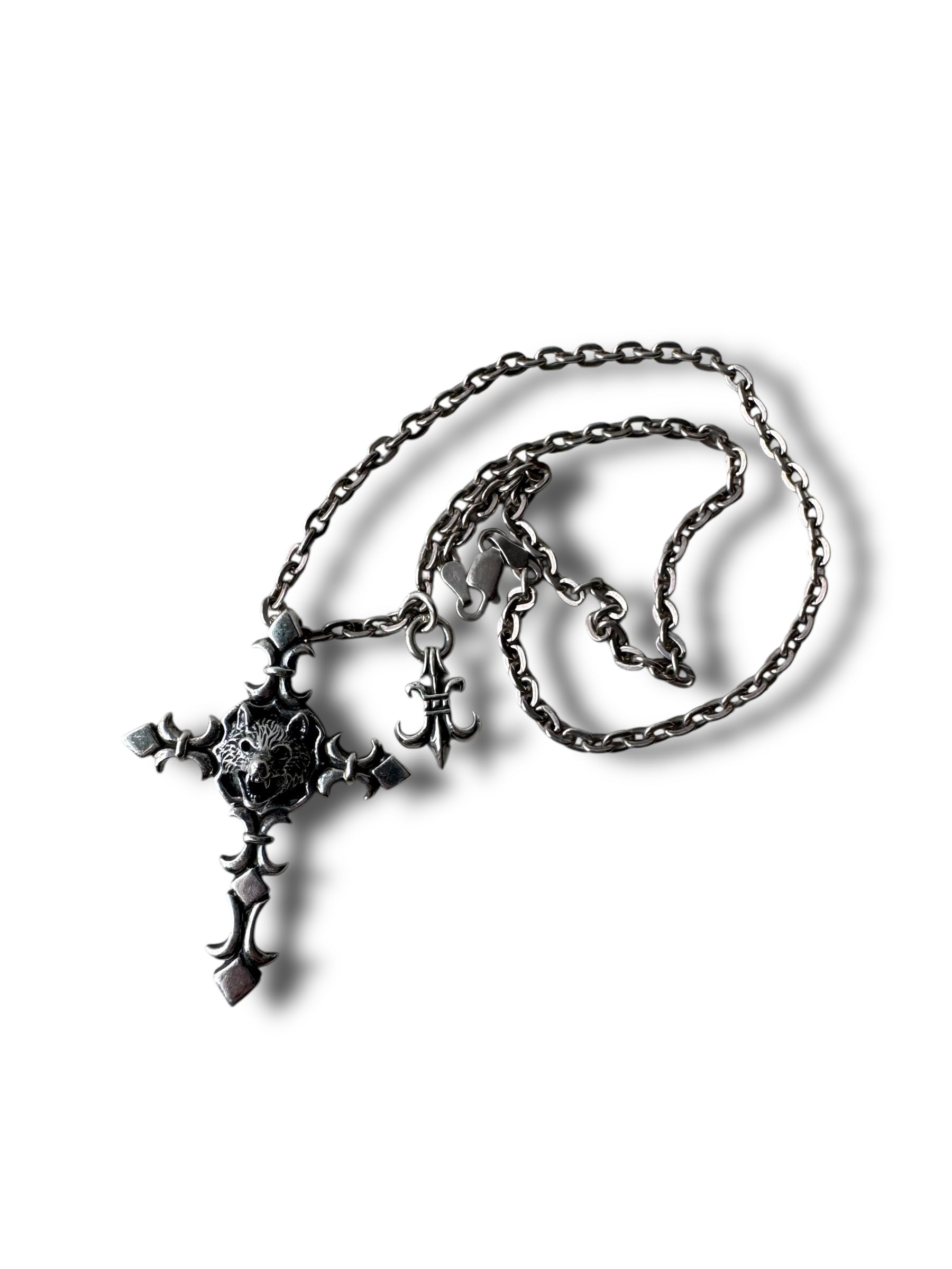 ♾vtg sv jewelry♾ double top design wolf cross motif necklace sv925