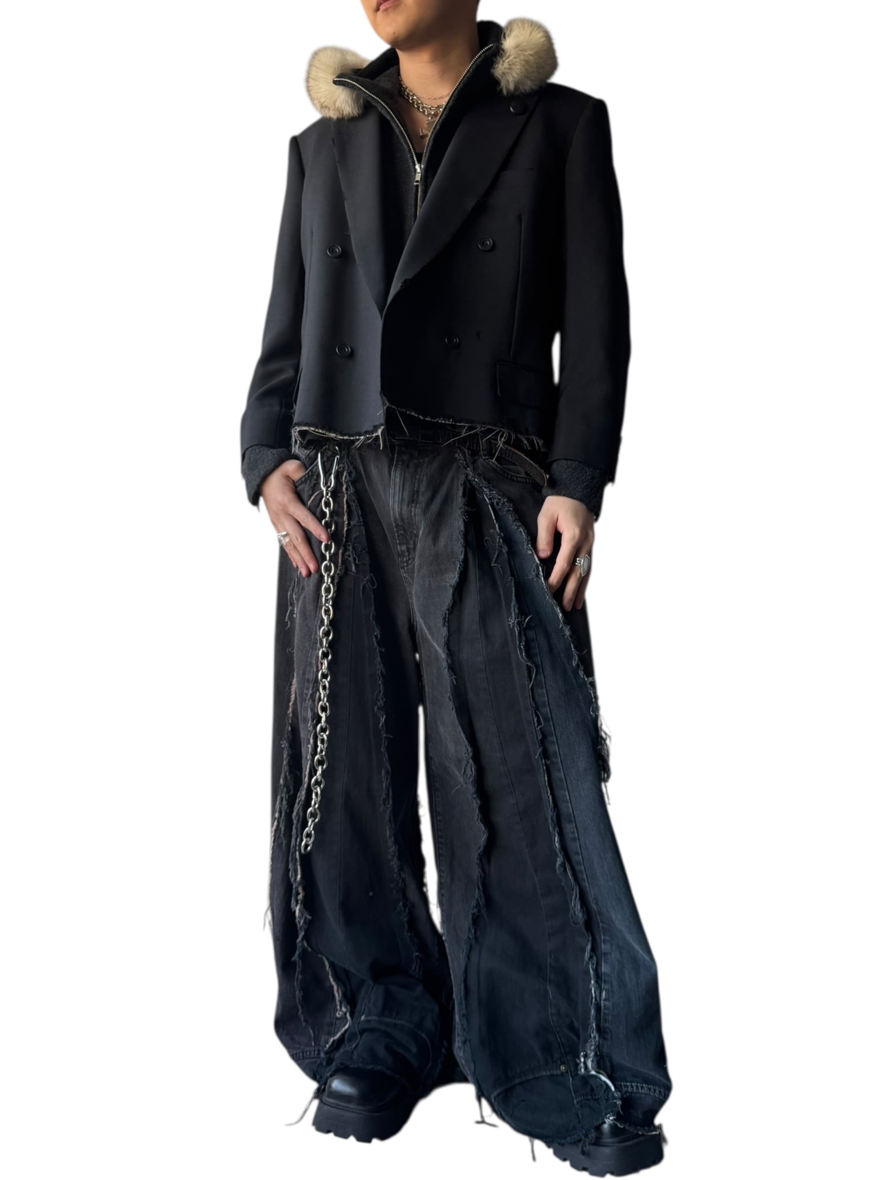 丈は大胆にカットオフされておりほつれ感のあるディテールだったりボディのさり気ないクラッシュ加工がグランジライクで最高にクール✨️