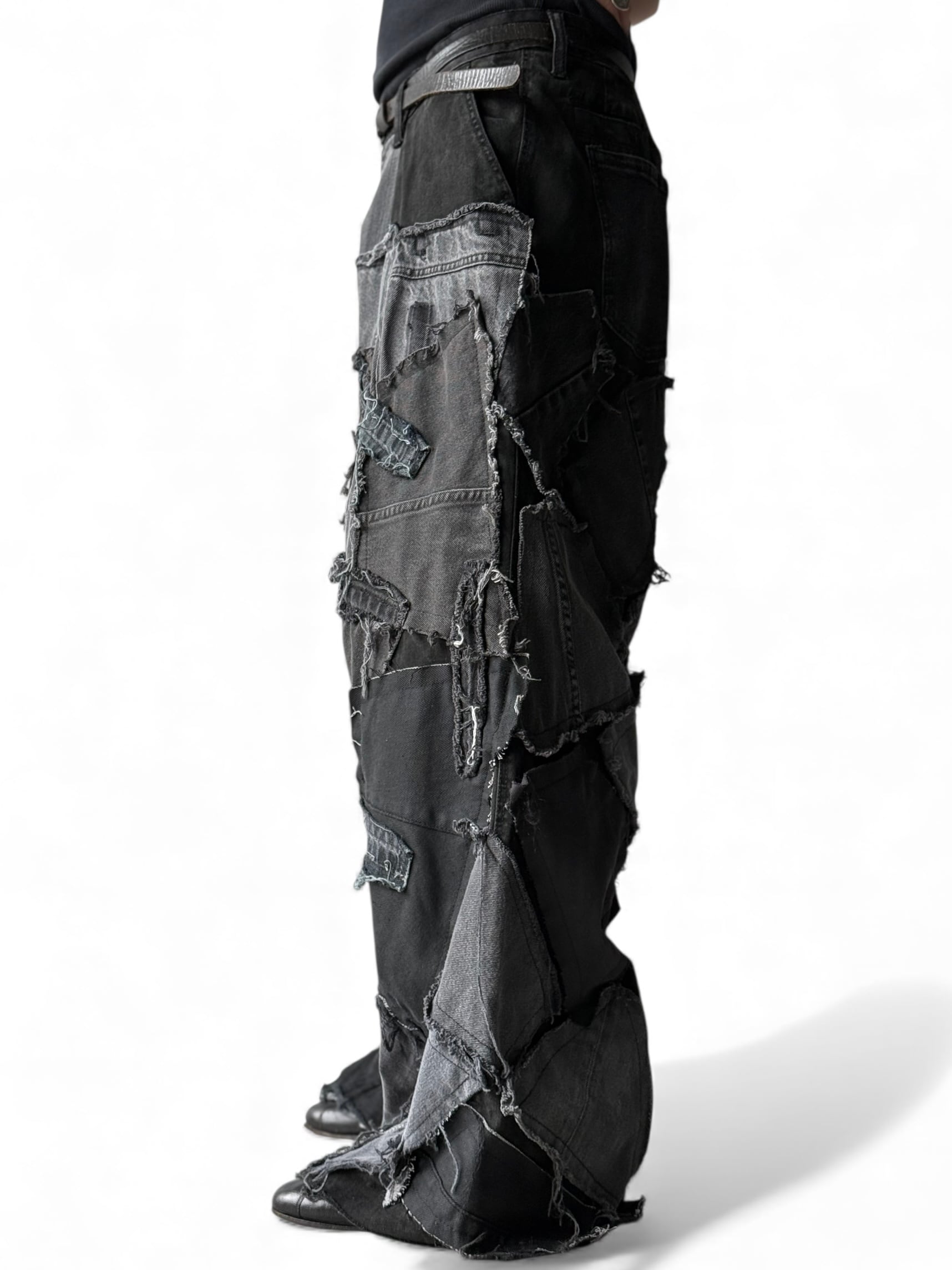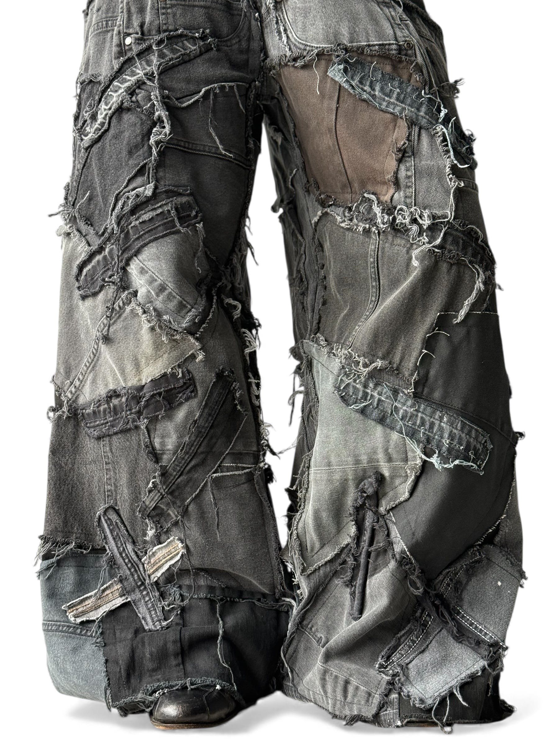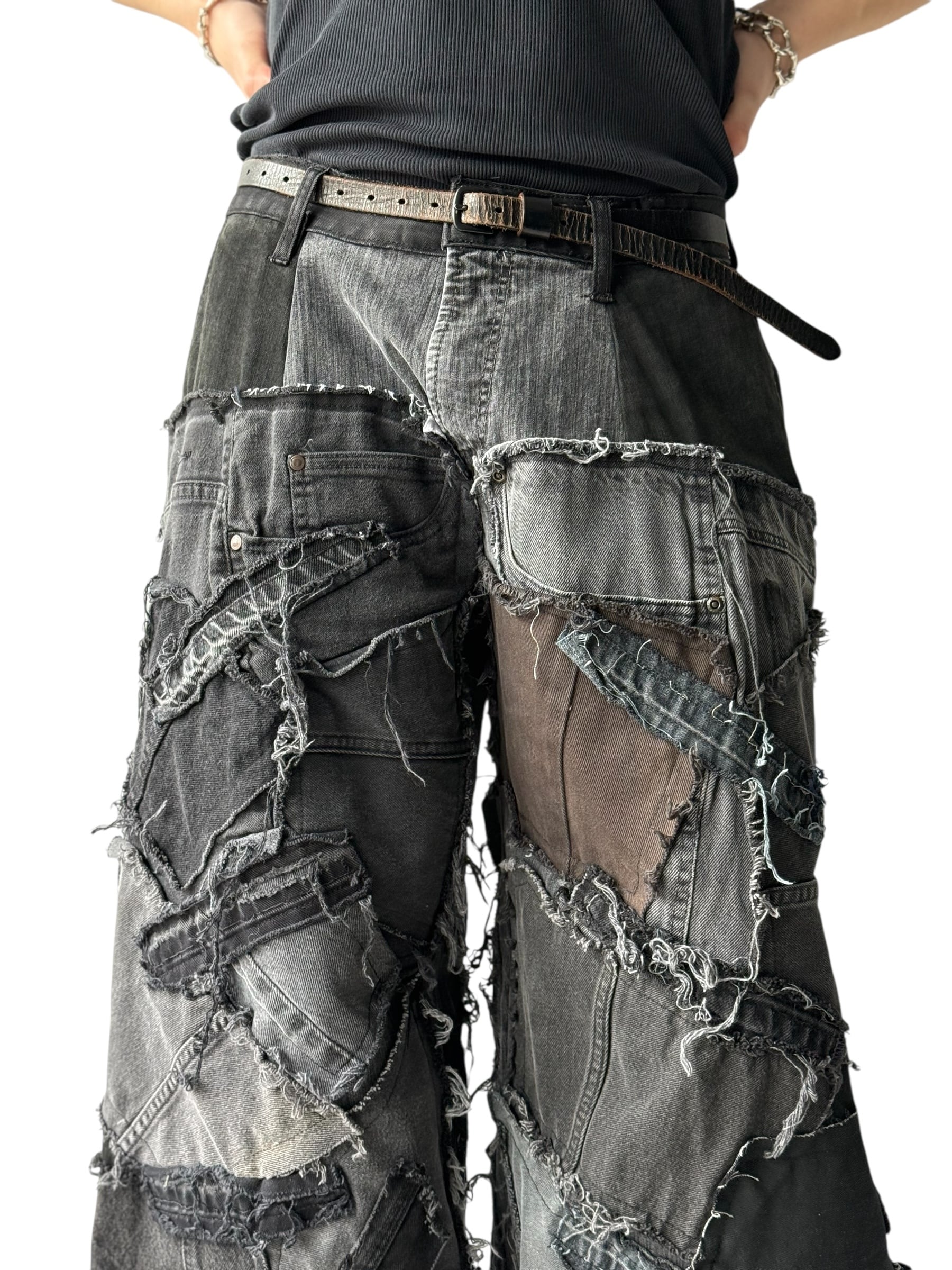 【Remake collection】 Two torn Reworked Buggy Black denim pants