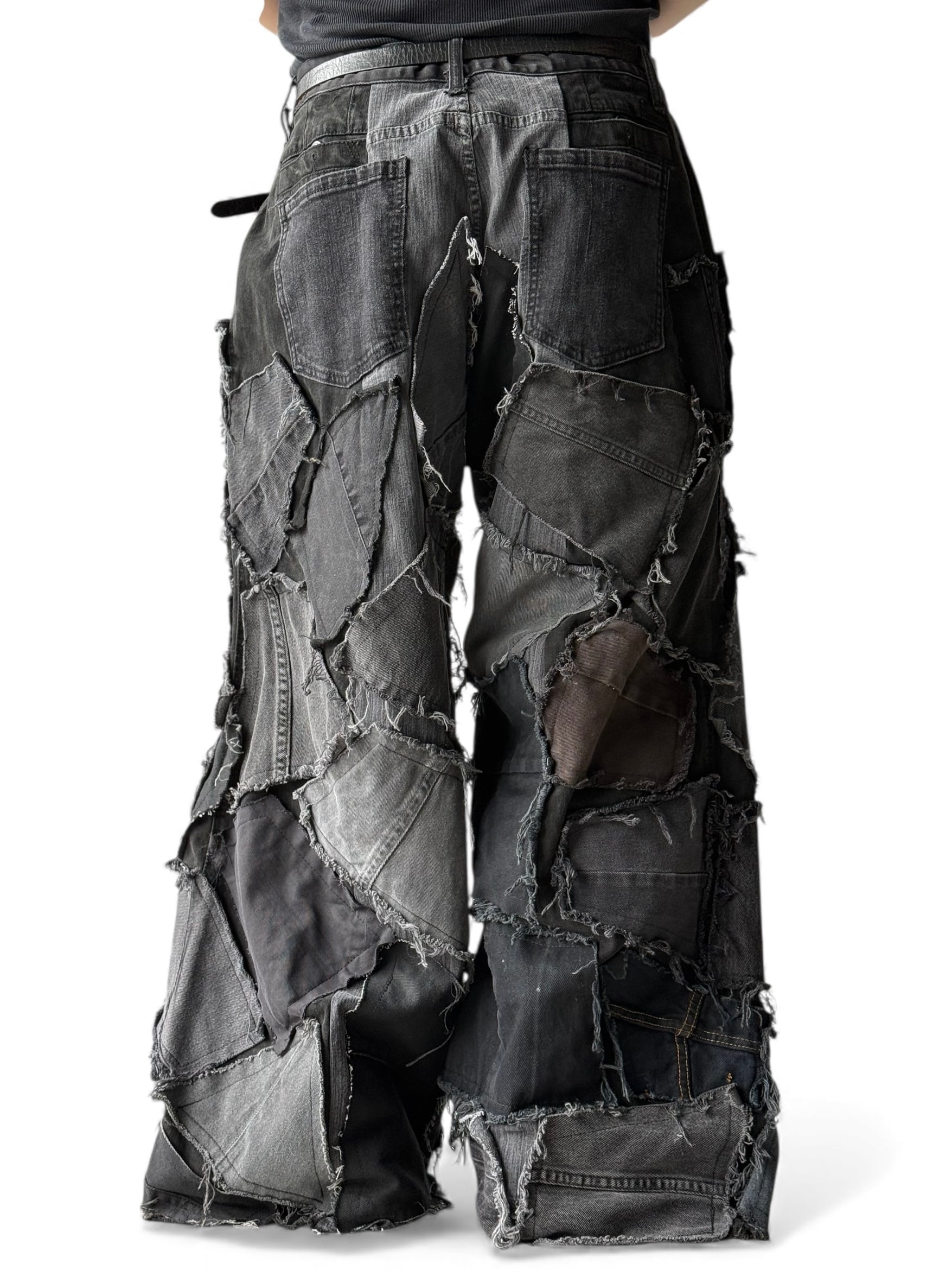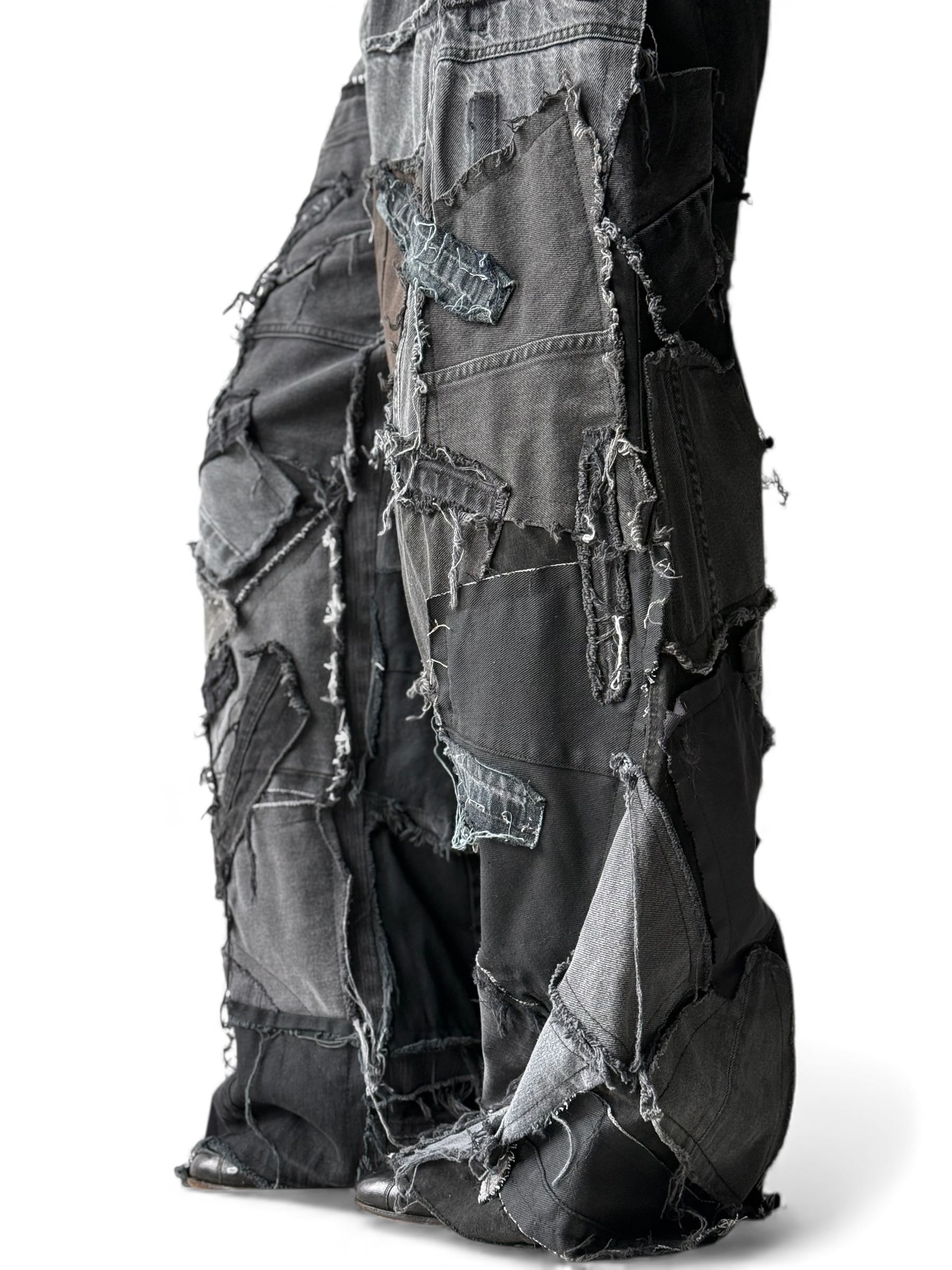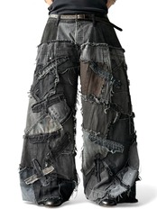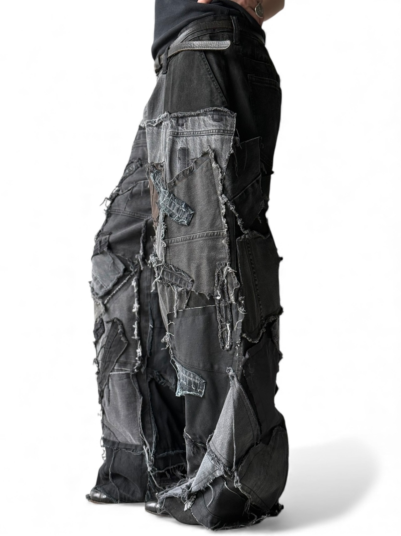 【Remake collection】 Two torn Reworked Buggy Black denim pants