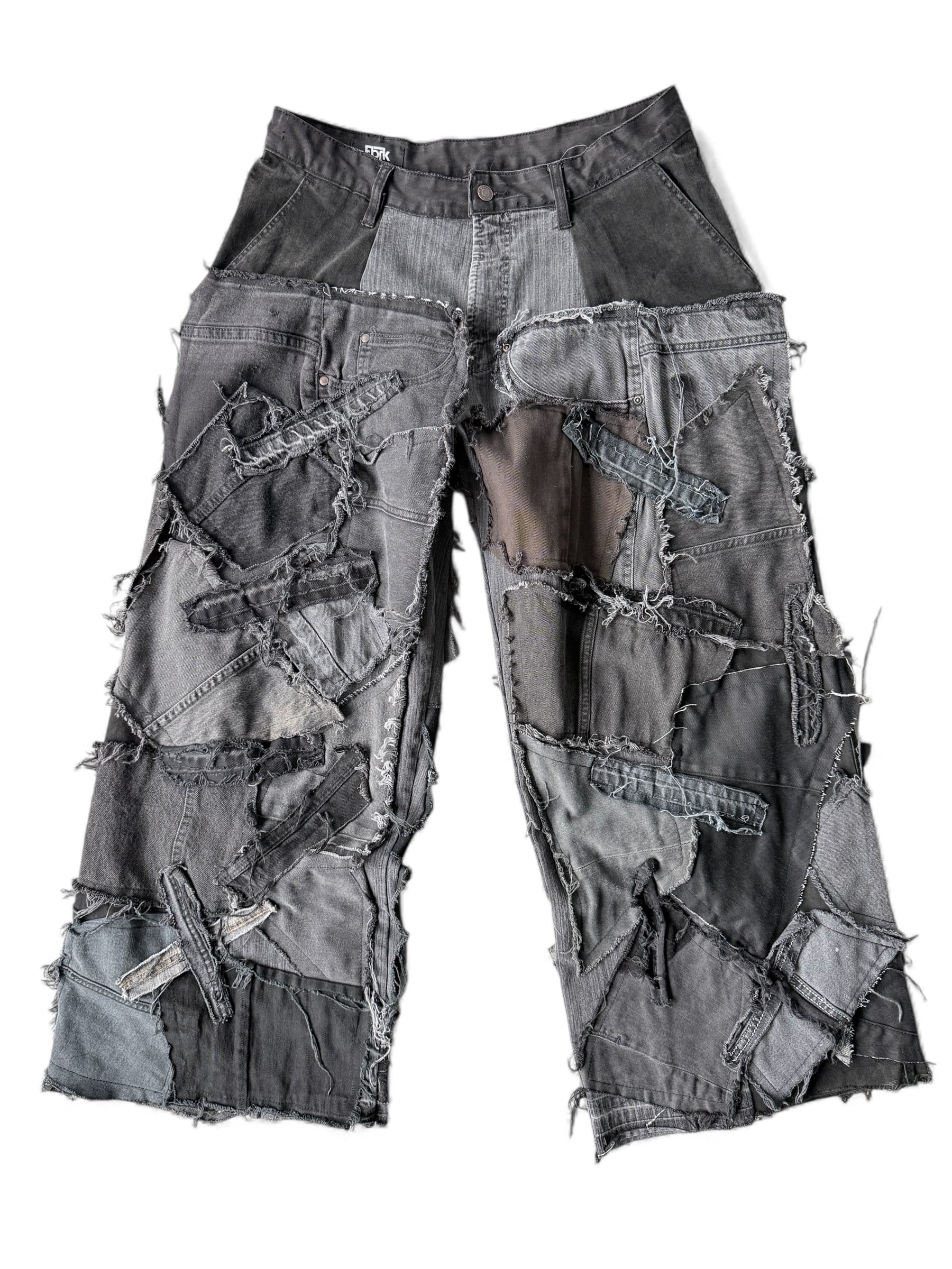 この一点もの感溢れる斬新なパッチワークパターンとボリュームが履いた時最高☺️❣️