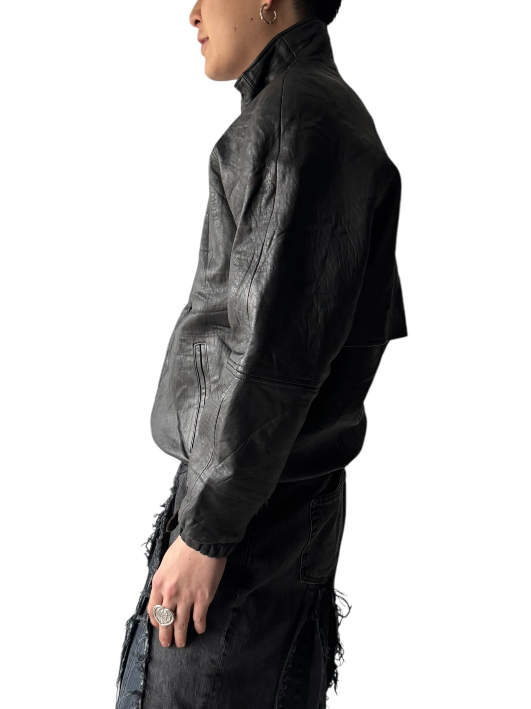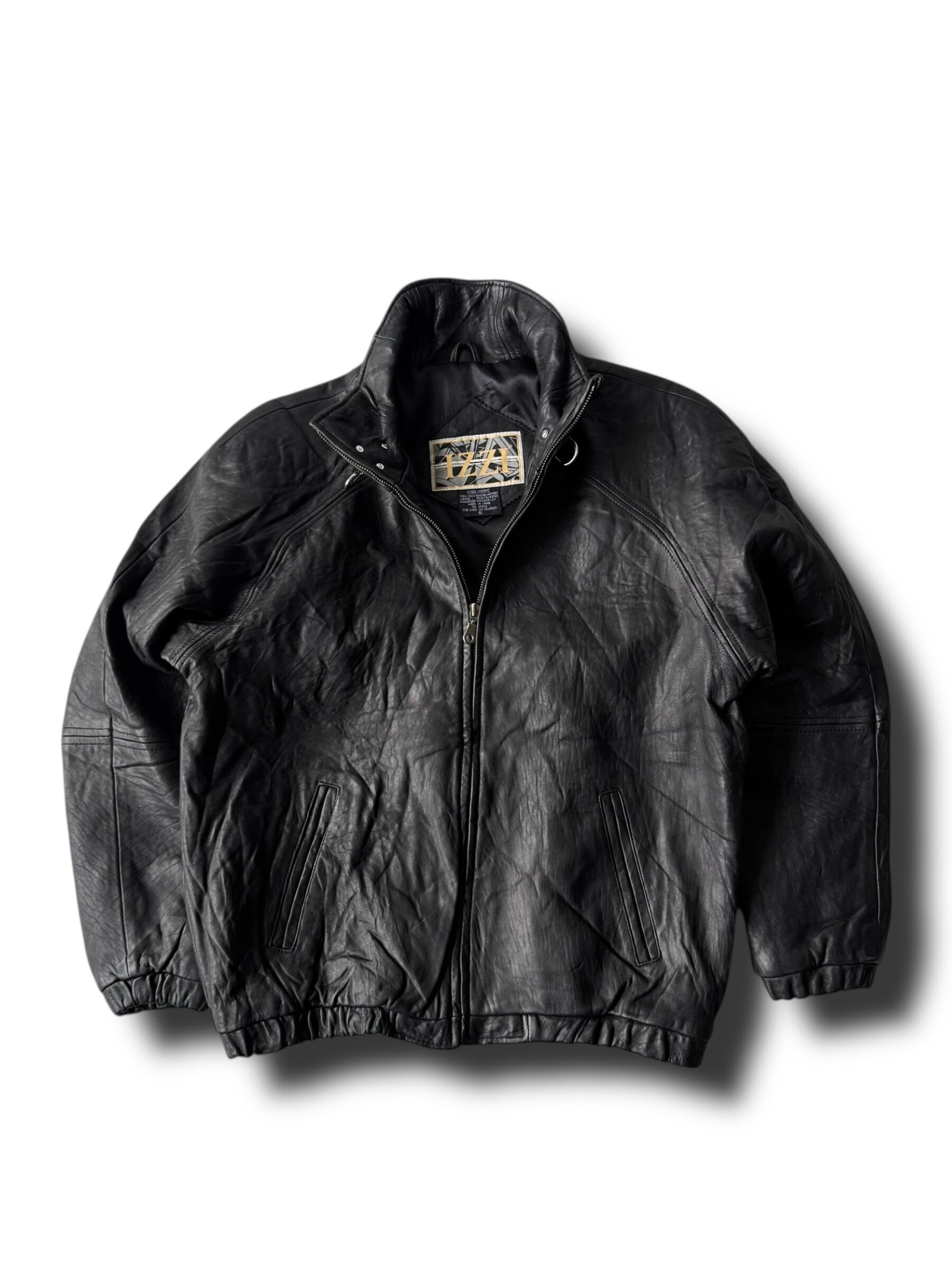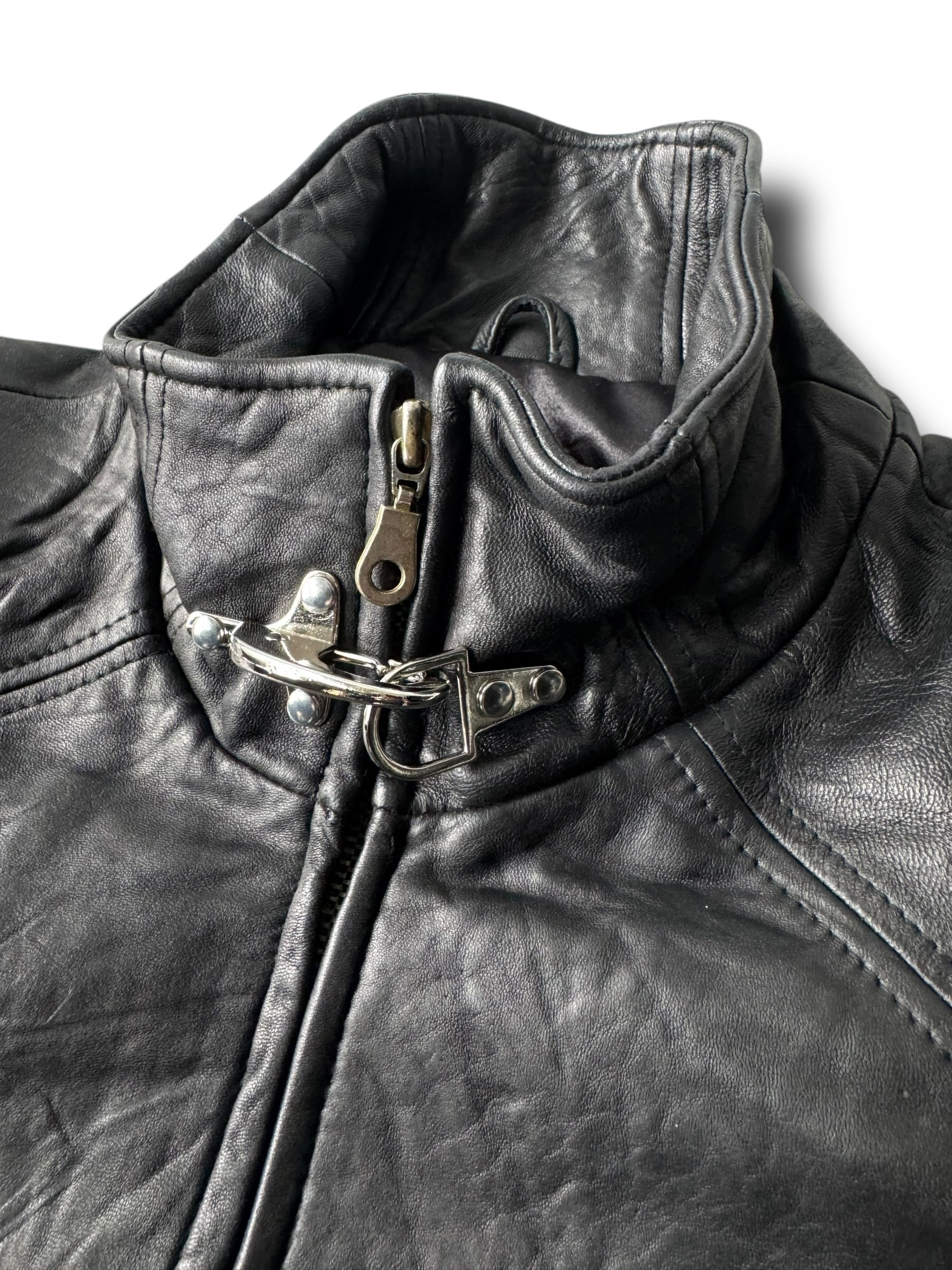 ♾IZZI♾ Fireman Toggle design high neck leather zip up jacket size S