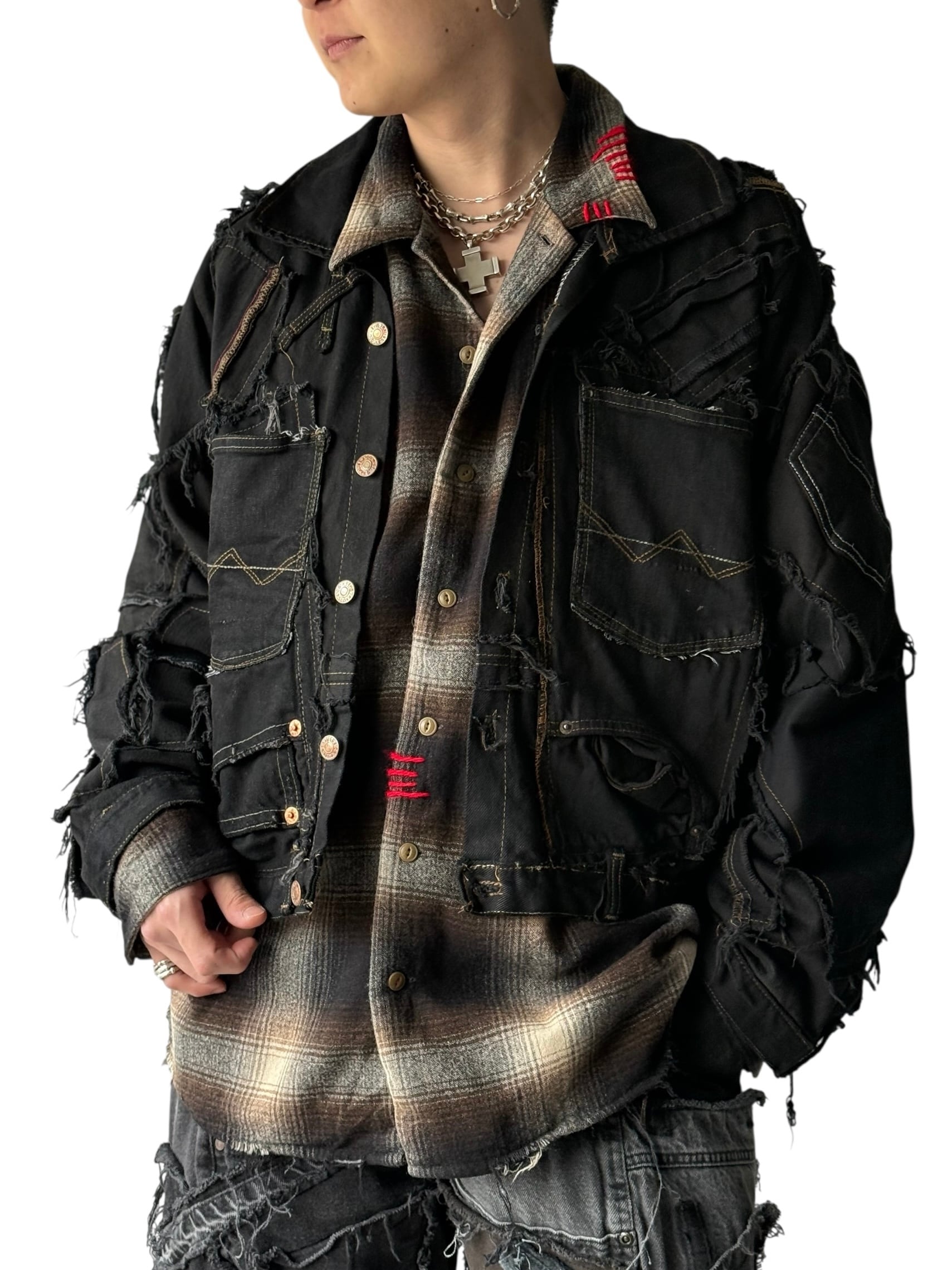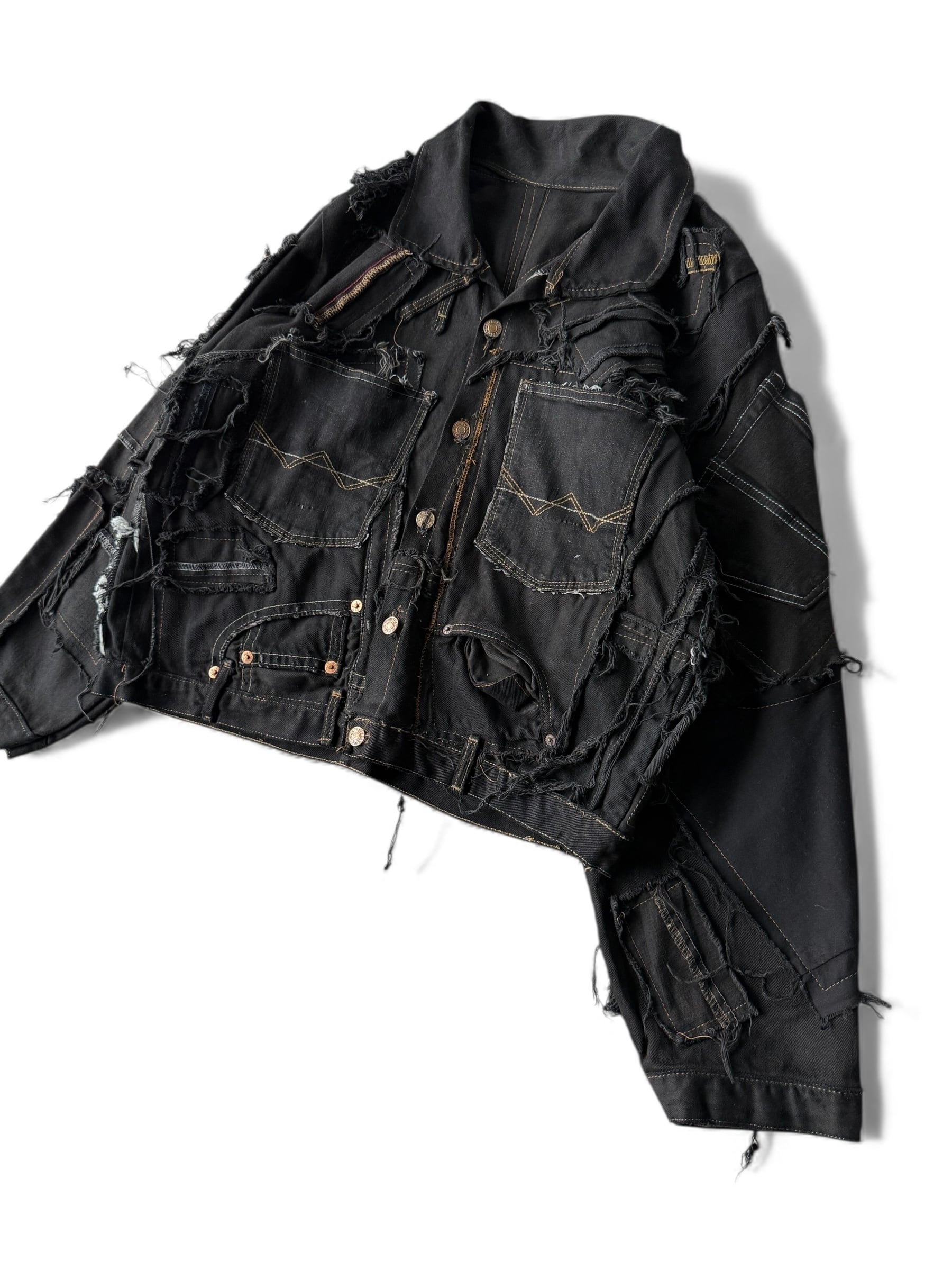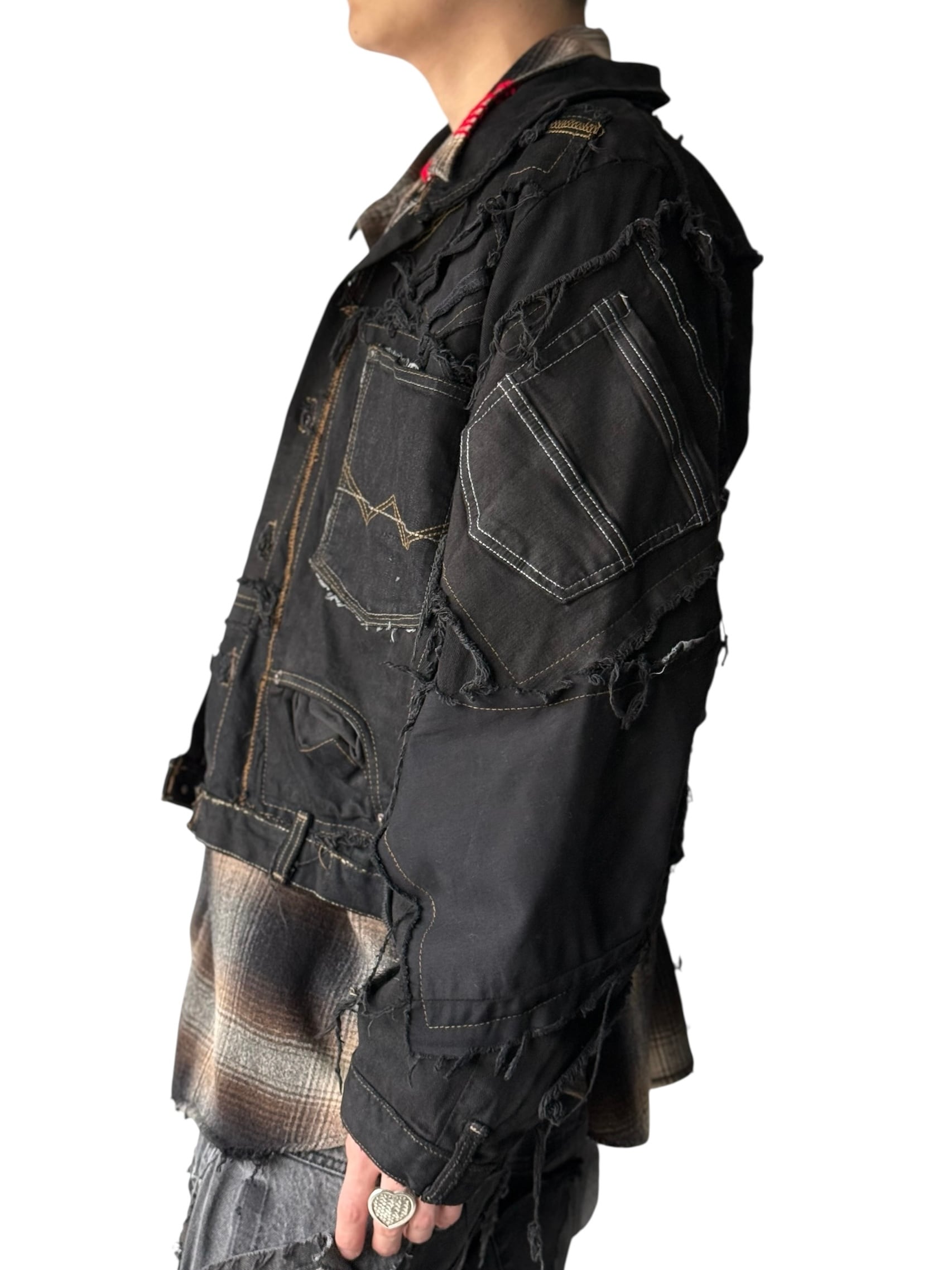 【Remake used】 Reconstructed Patchwork Black Denim Jacket