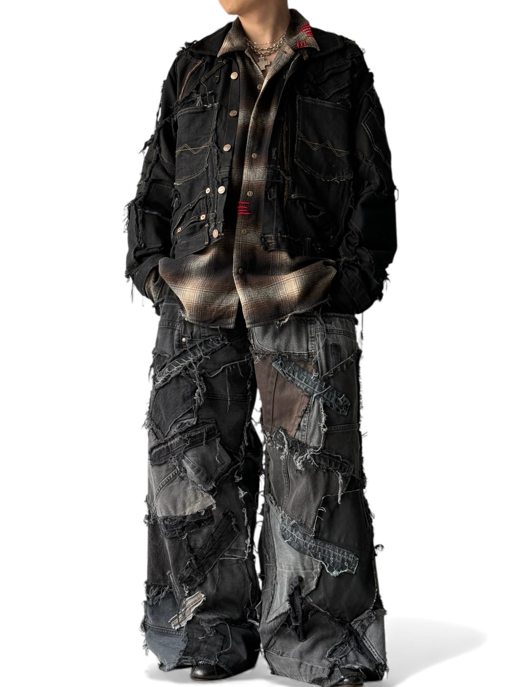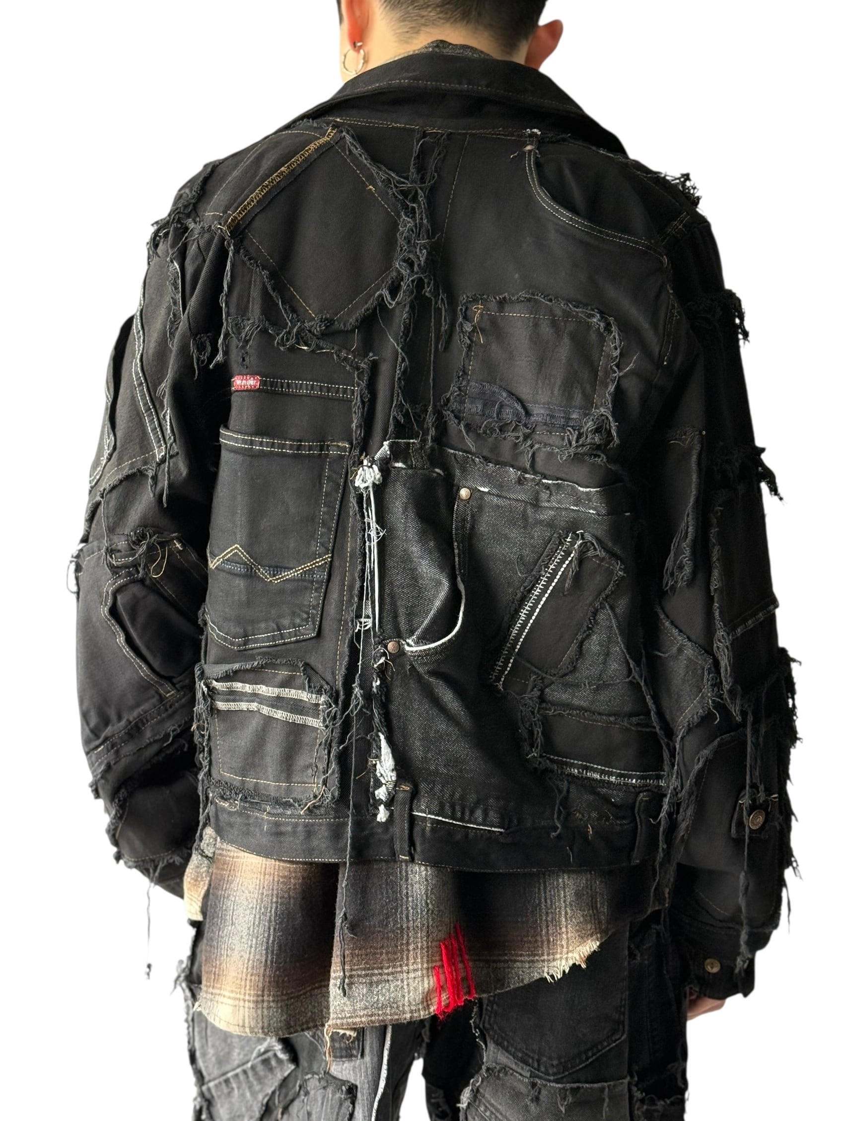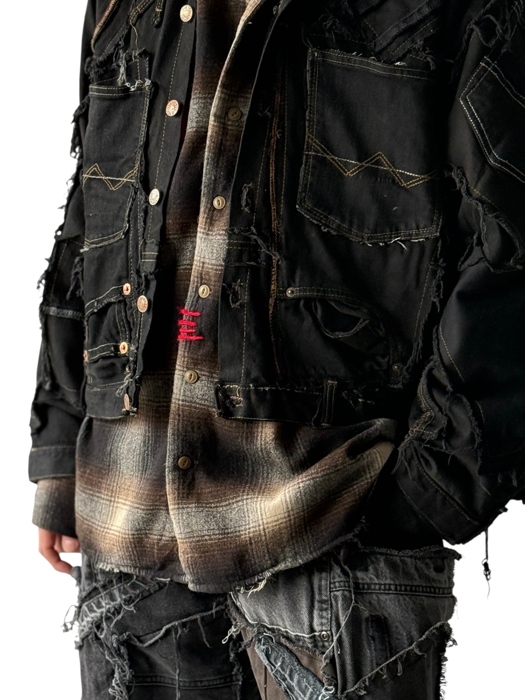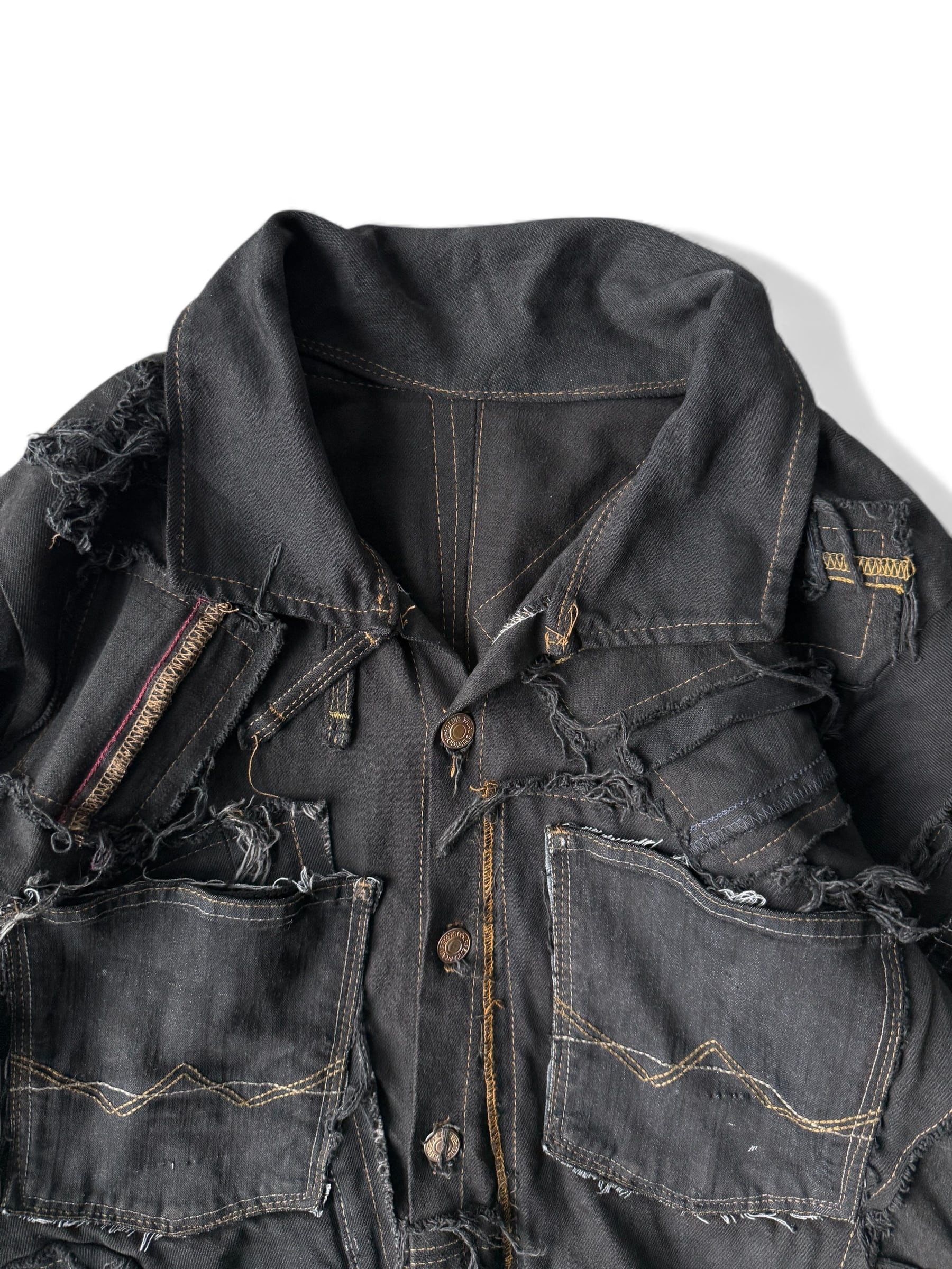 【Remake used】 Reconstructed Patchwork Black Denim Jacket