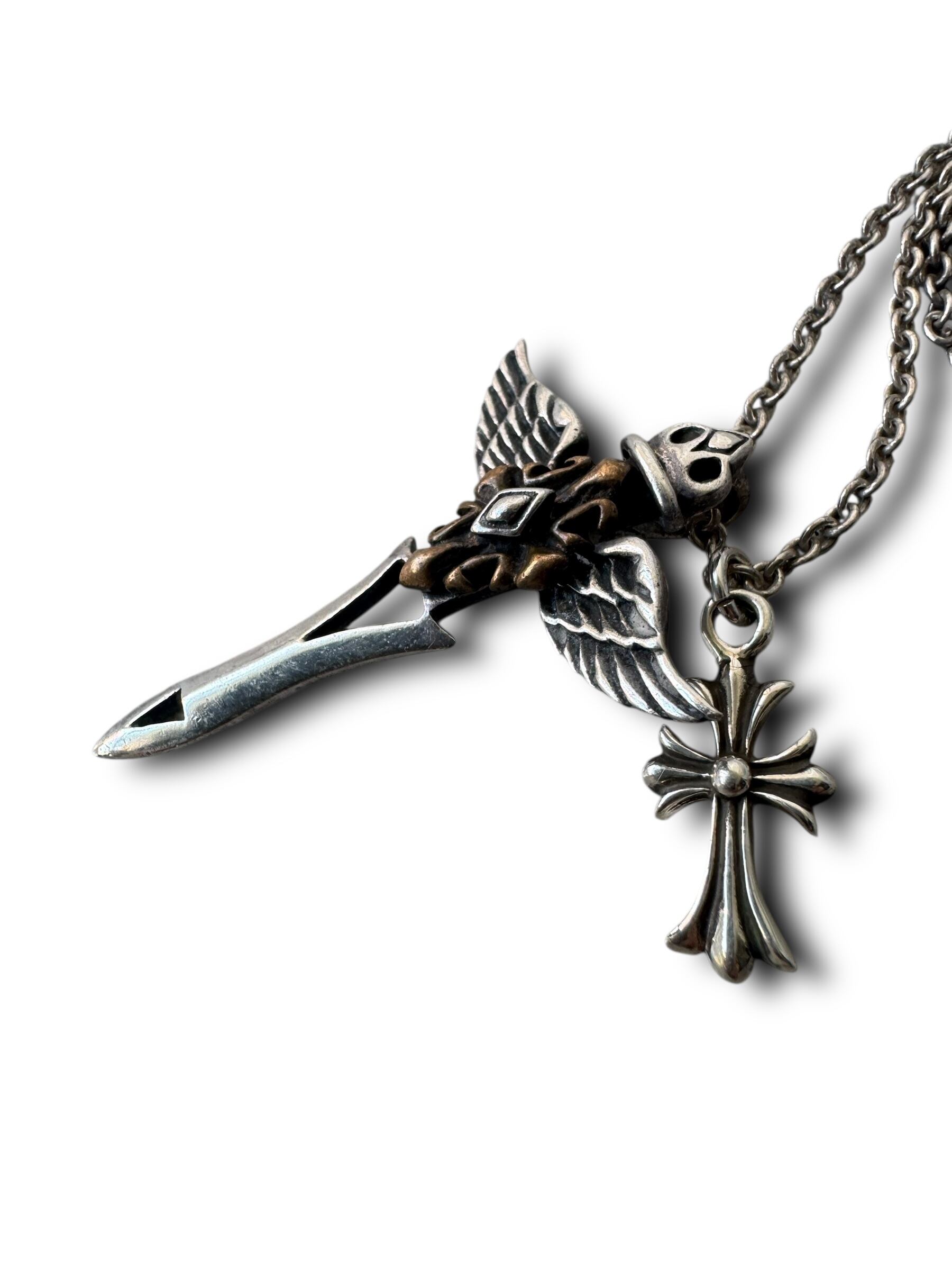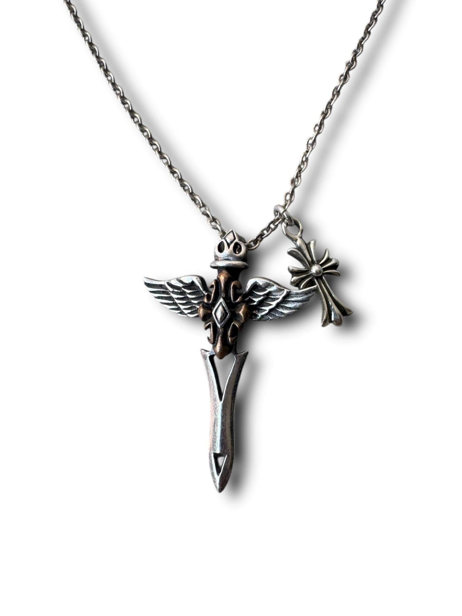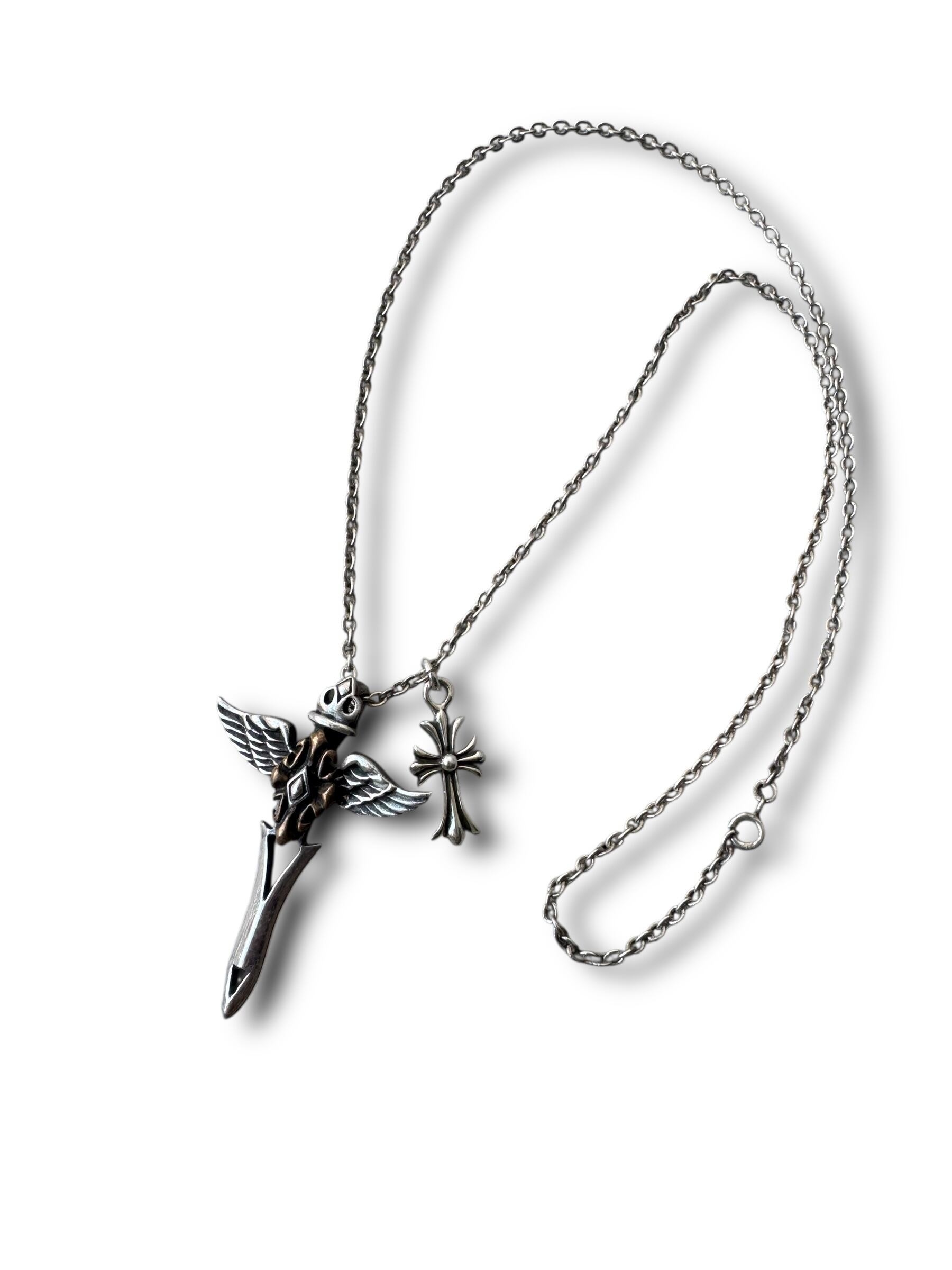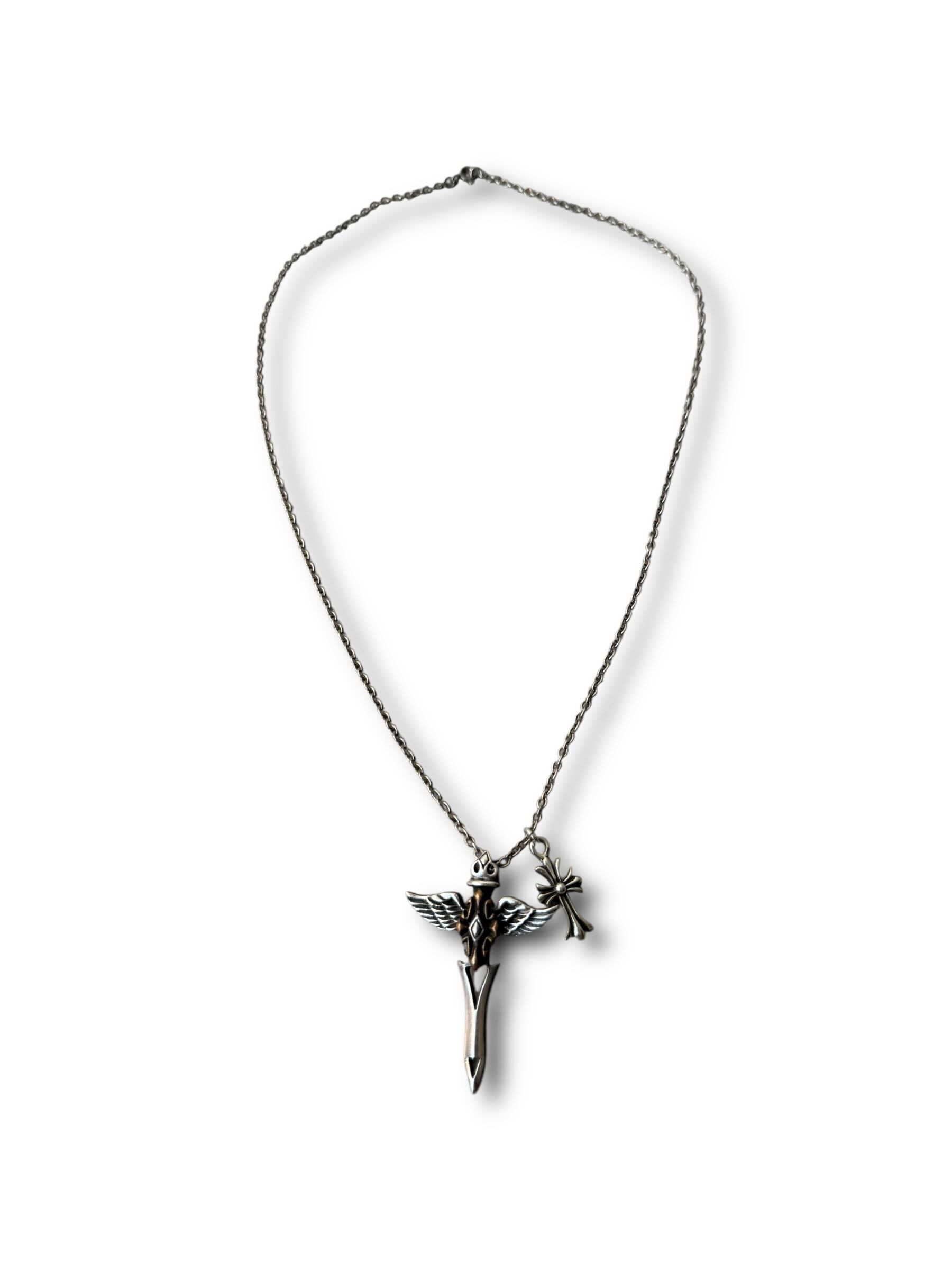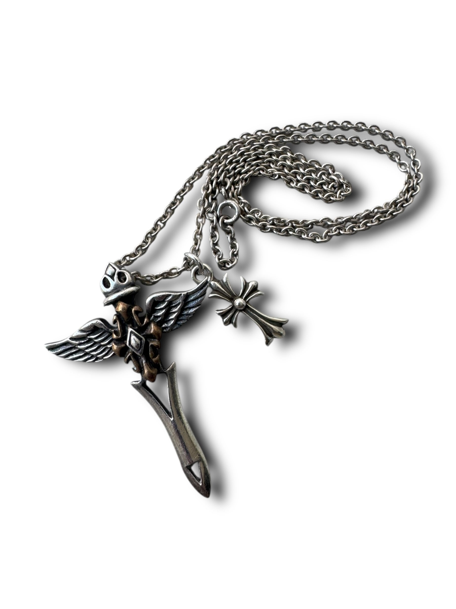 ♾vtg sv jewelry♾ wing cross n' cross motif w top design necklace sv925 ・