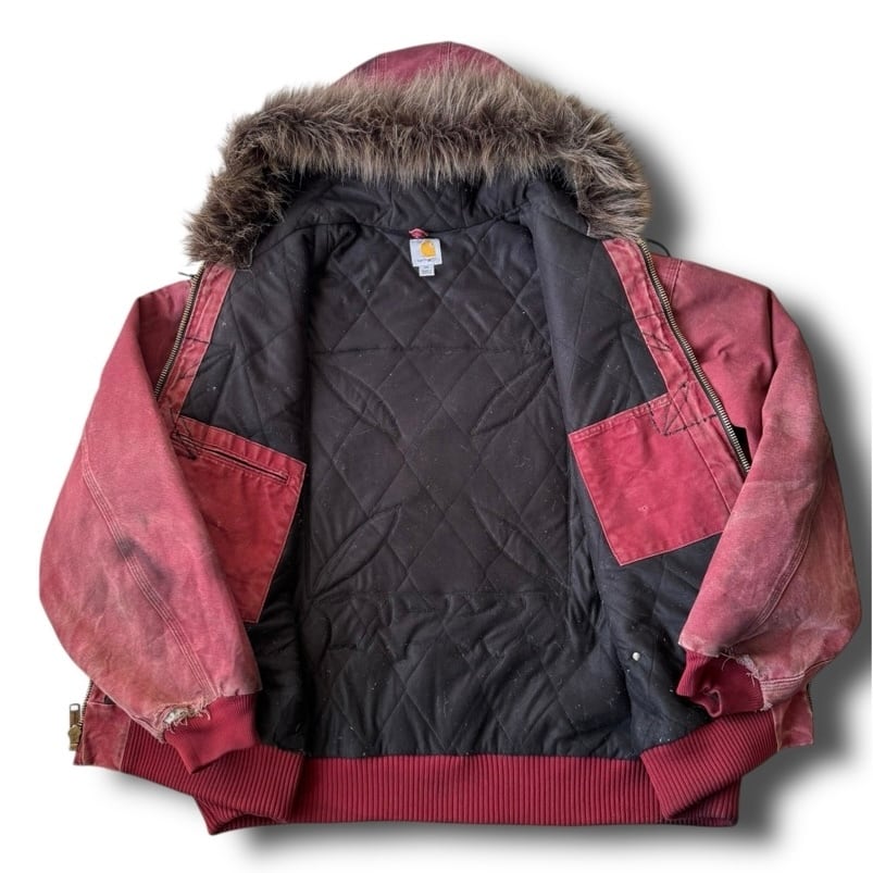 こちらは汚れが随所に飛んでいたり、サンフェードした色落ち、部分的ヴィンテージならではのダック生地の経年変化、雰囲気を楽しめる今人気のオールドカーハートらしい醍醐味が素敵な1着‼️