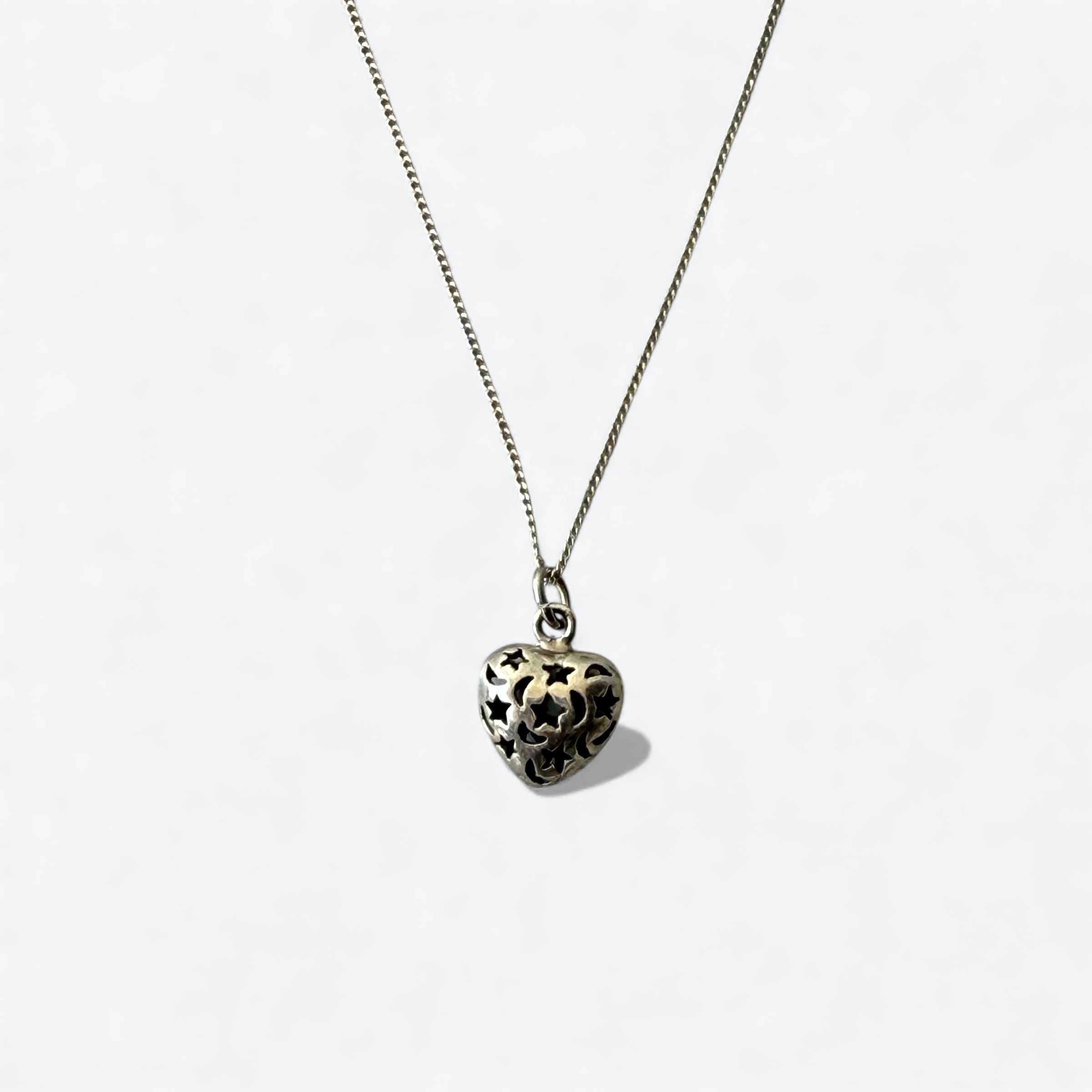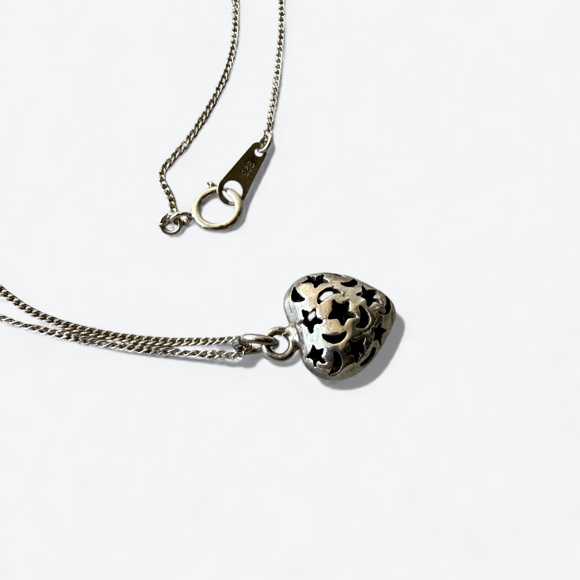 【Vintage Silver Jewelry】 sv925 heart motif Star and crescent moon design necklace
