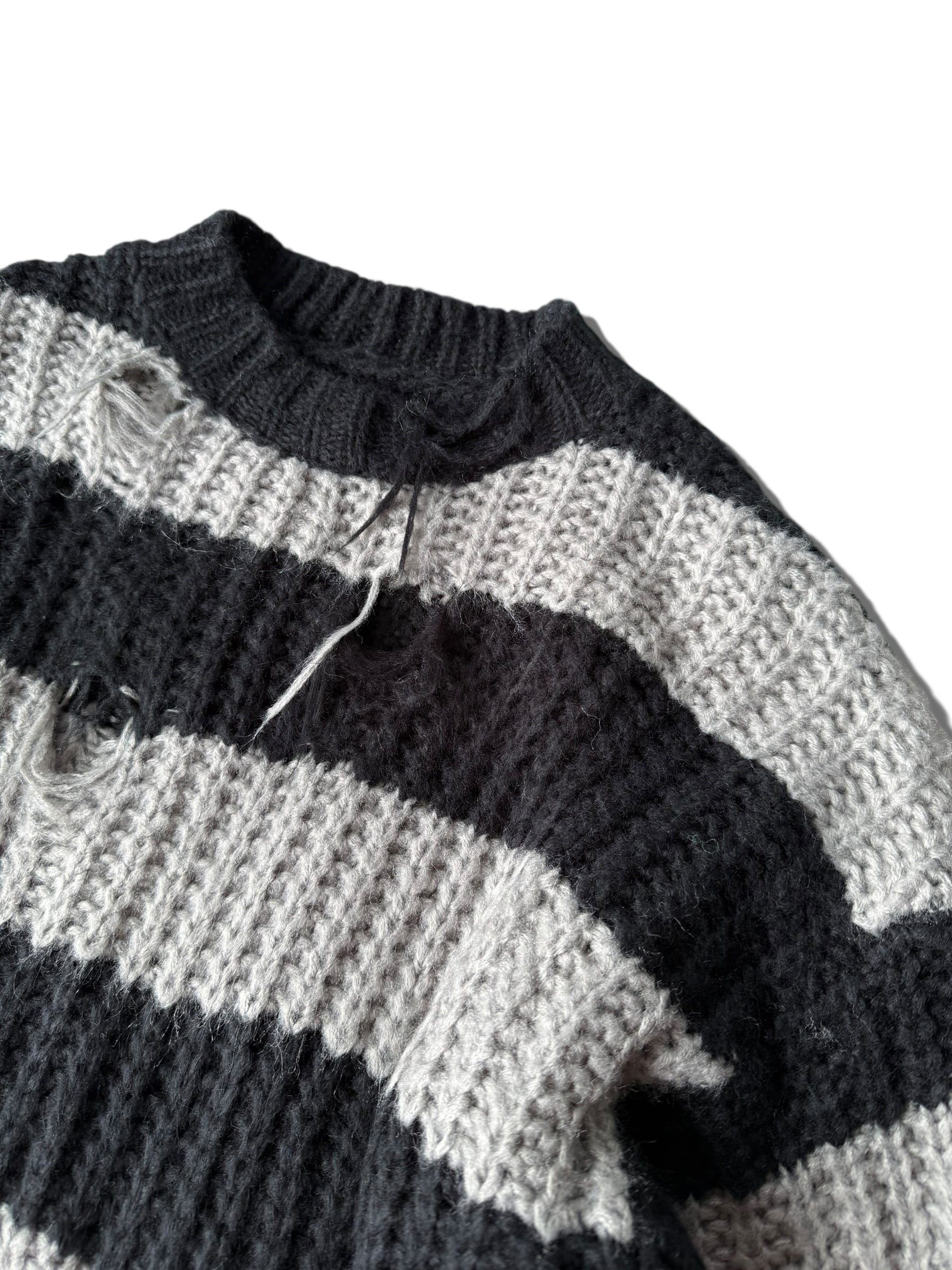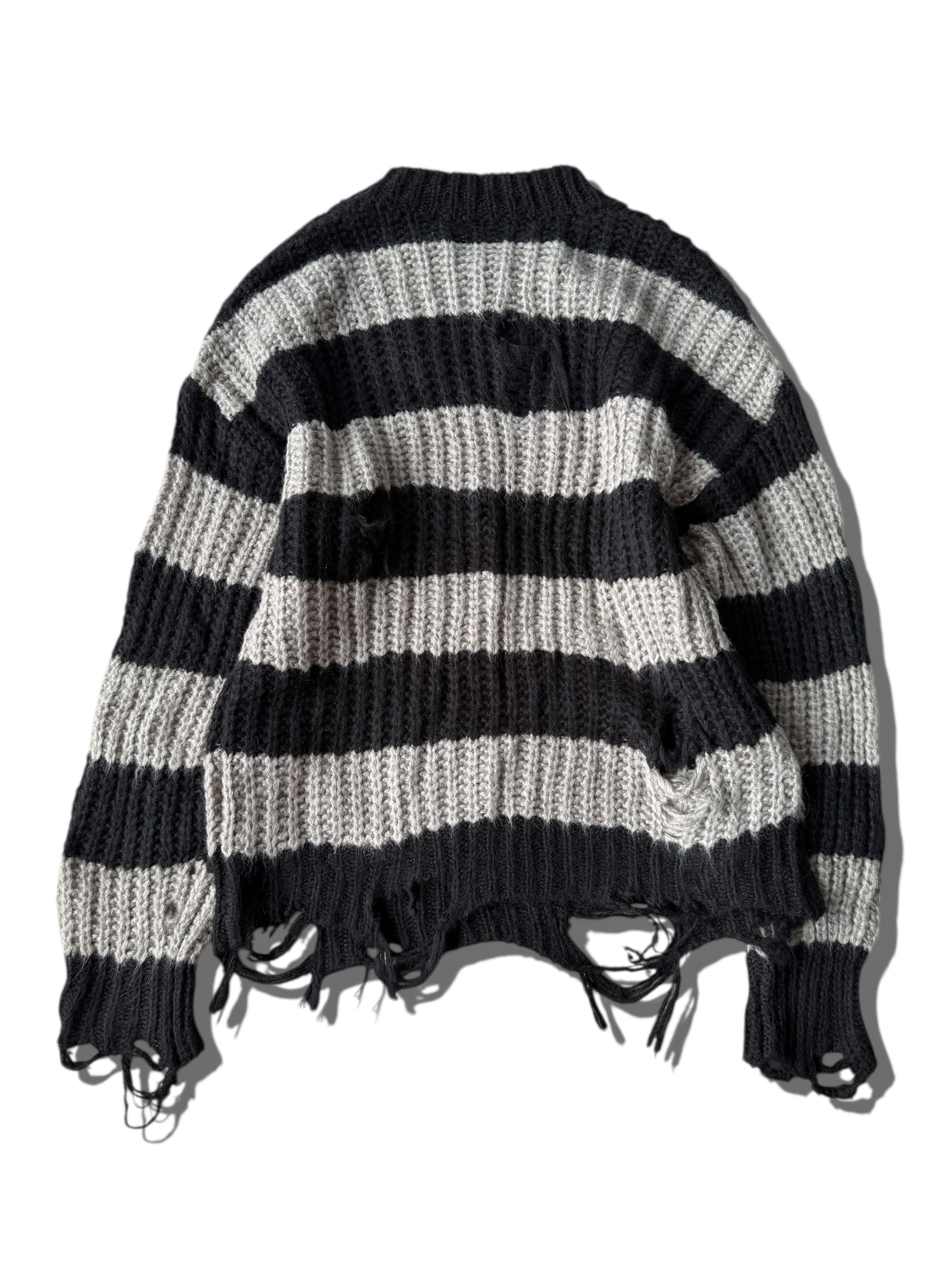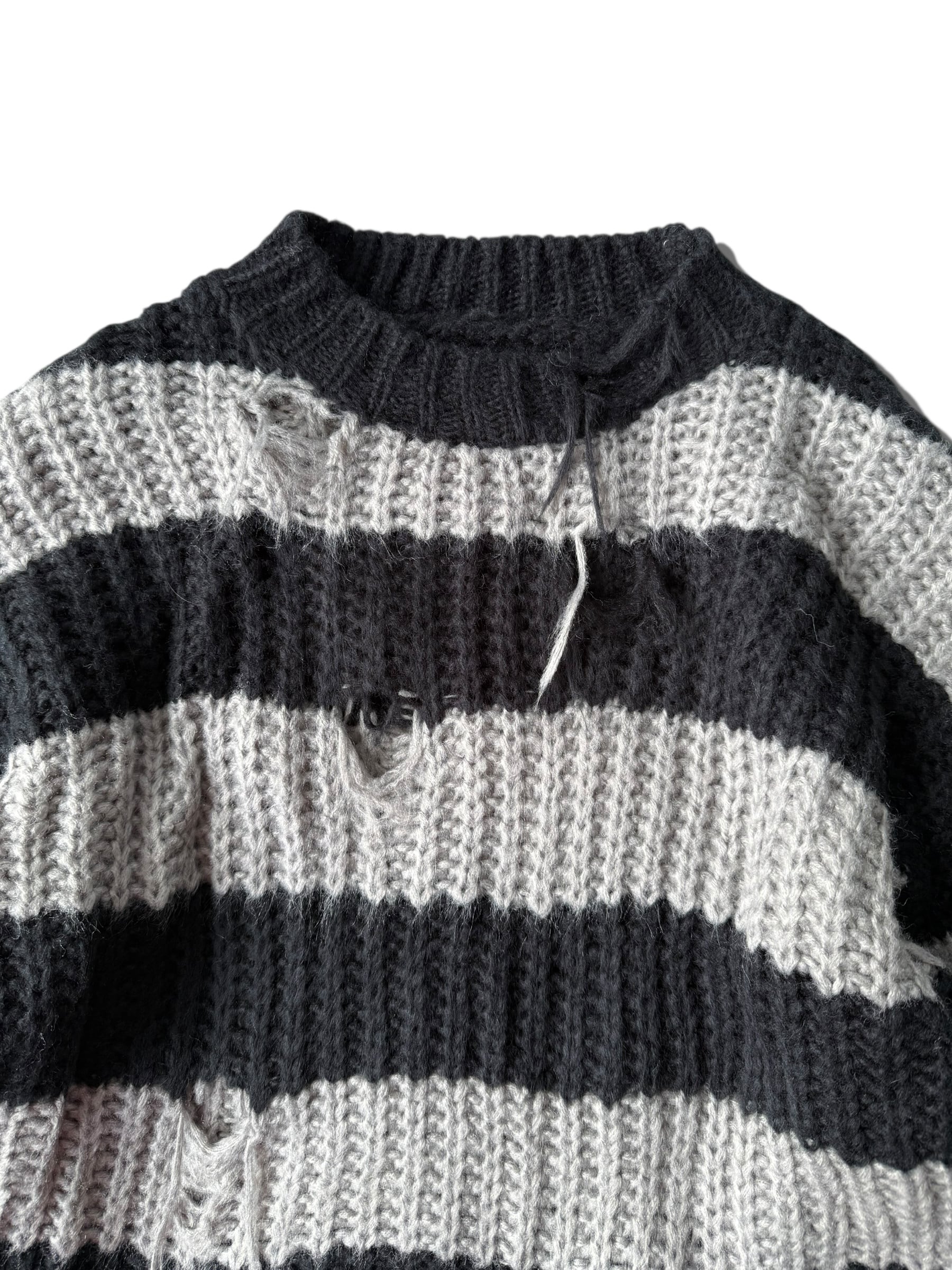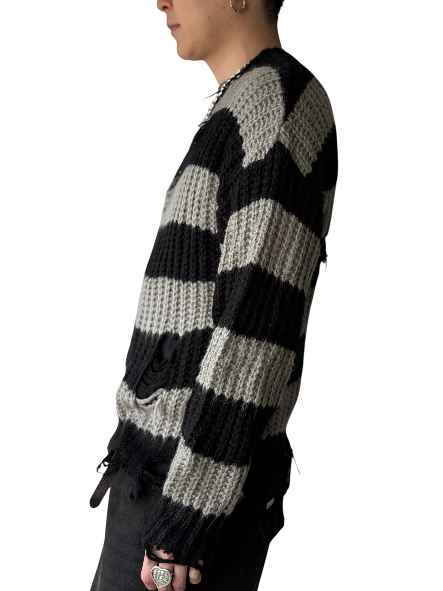 ブラック×グレーのボーダーカラーがお洒落なダメージニットちゃん✨️