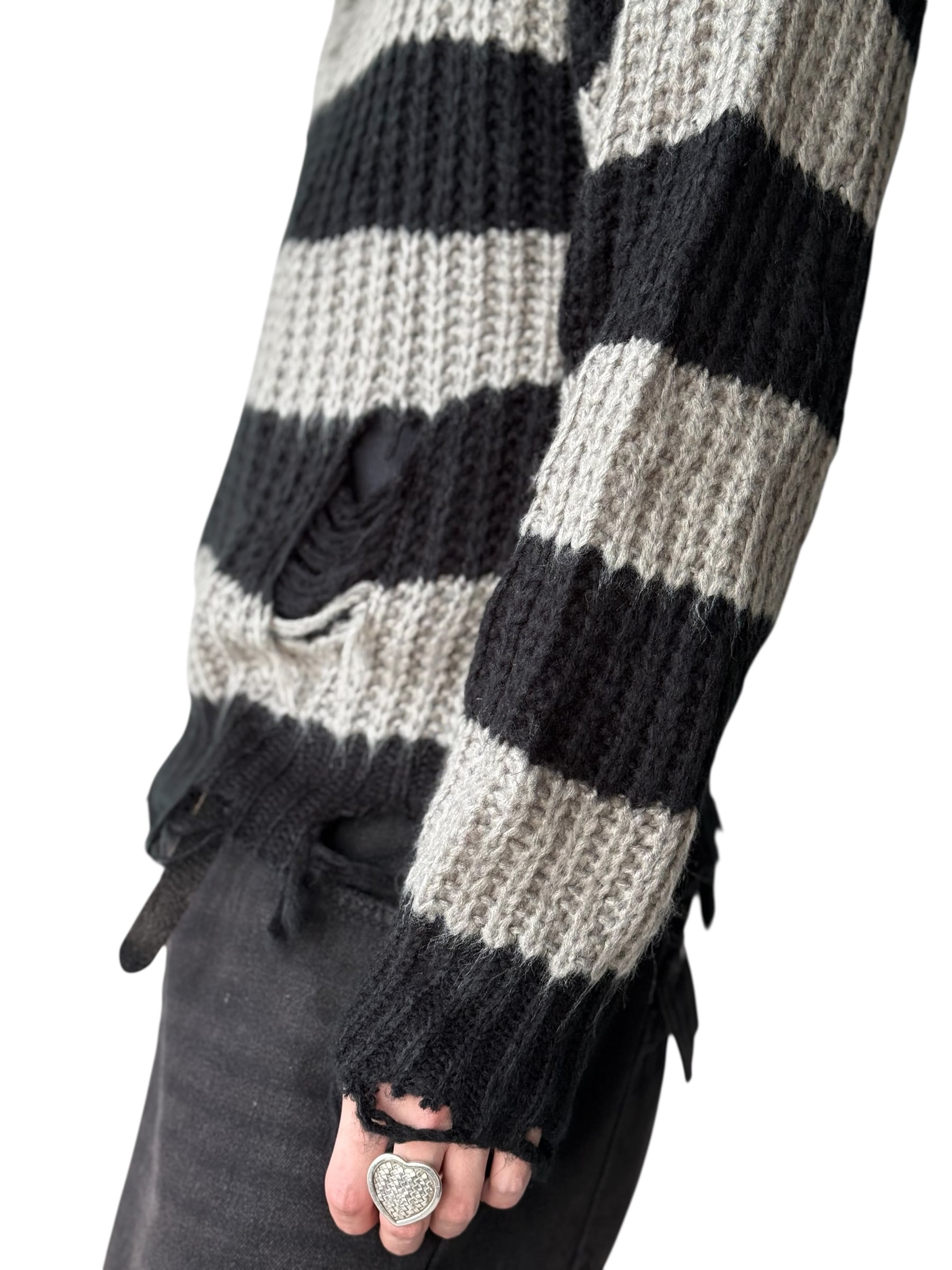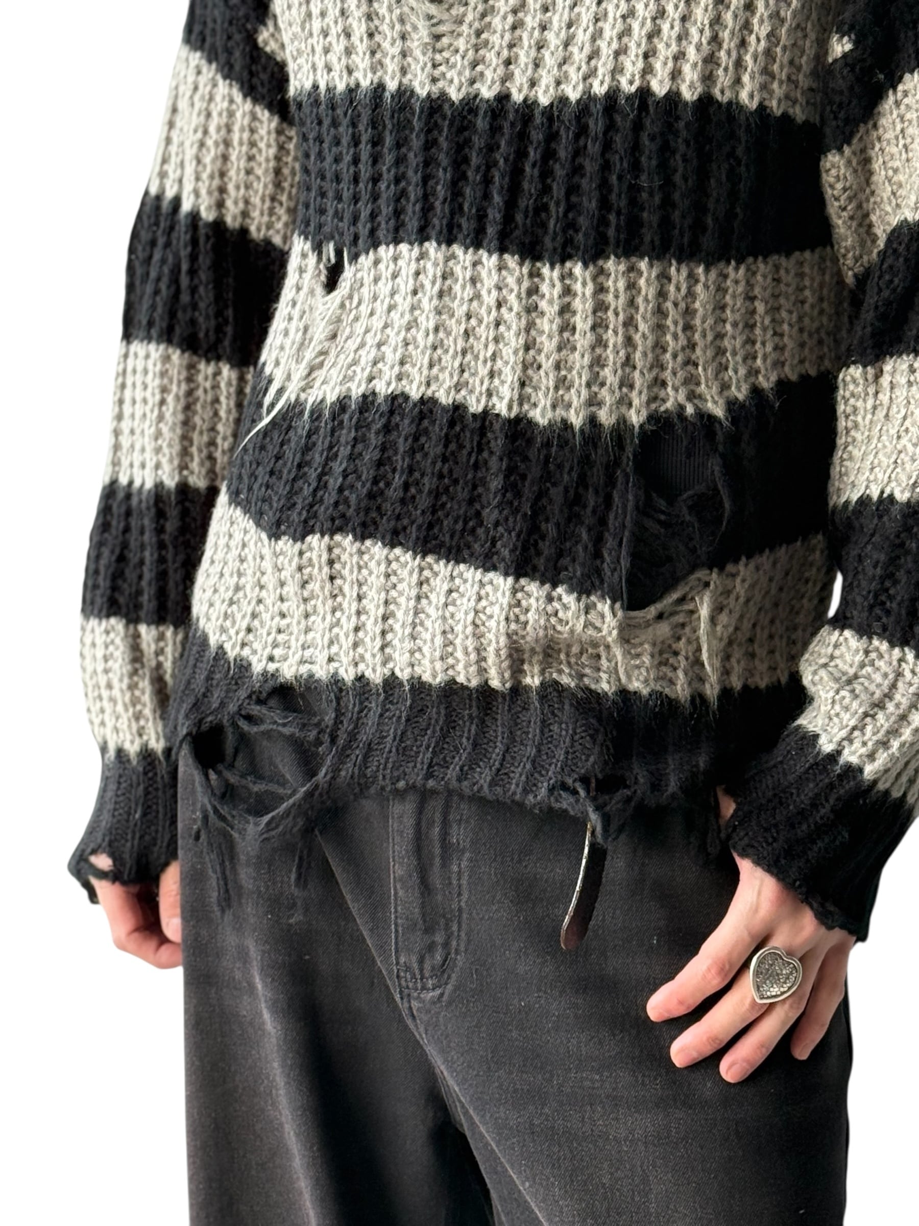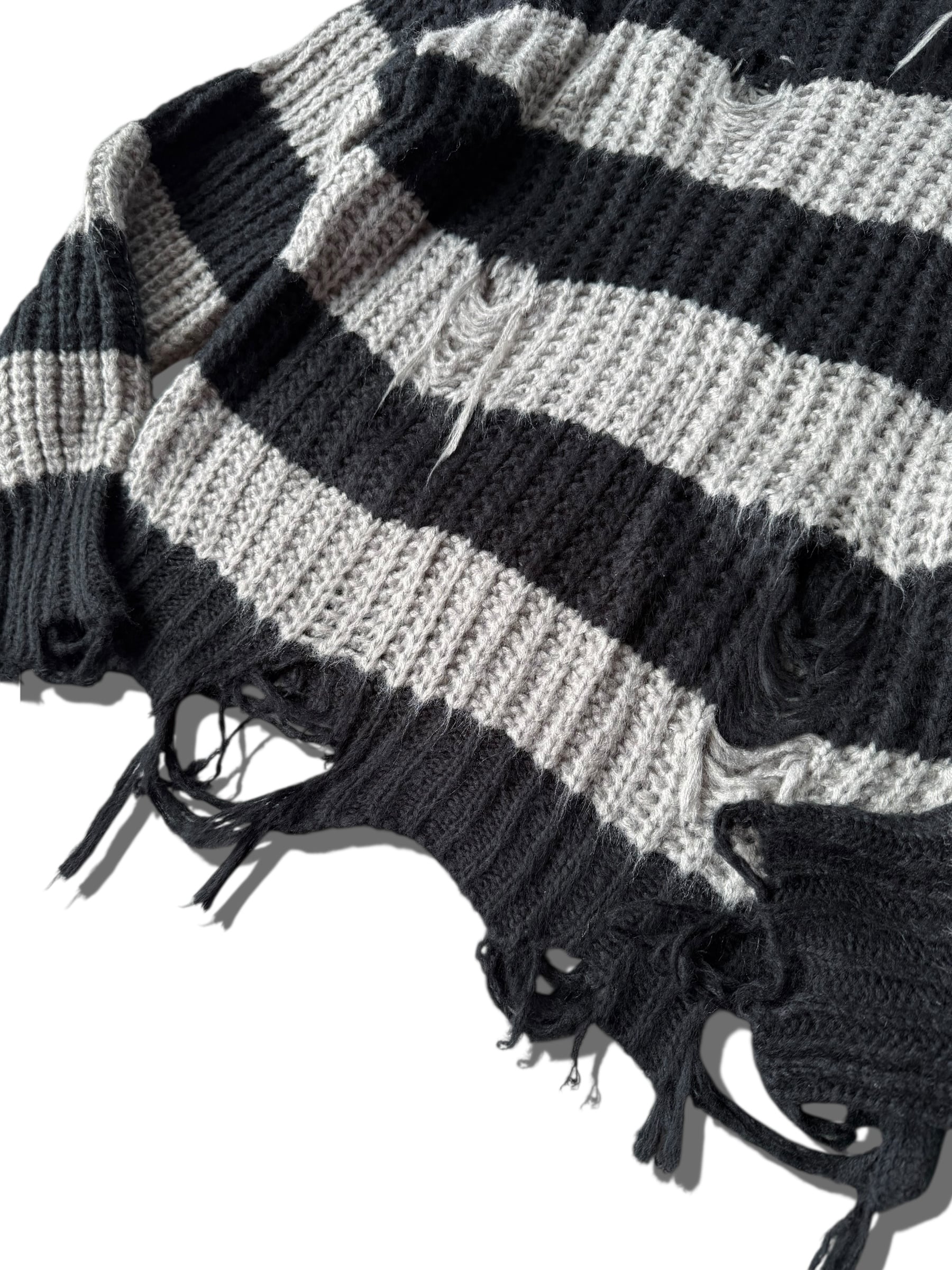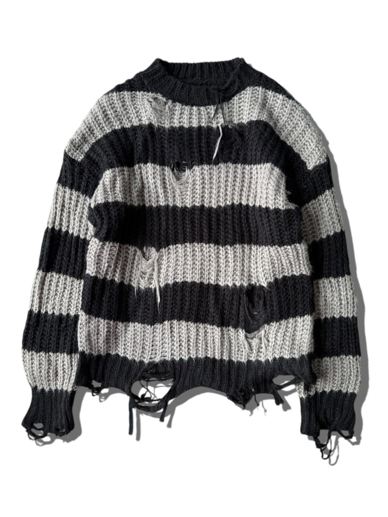 ブラック×グレーのボーダーカラーがお洒落なダメージニットちゃん✨️