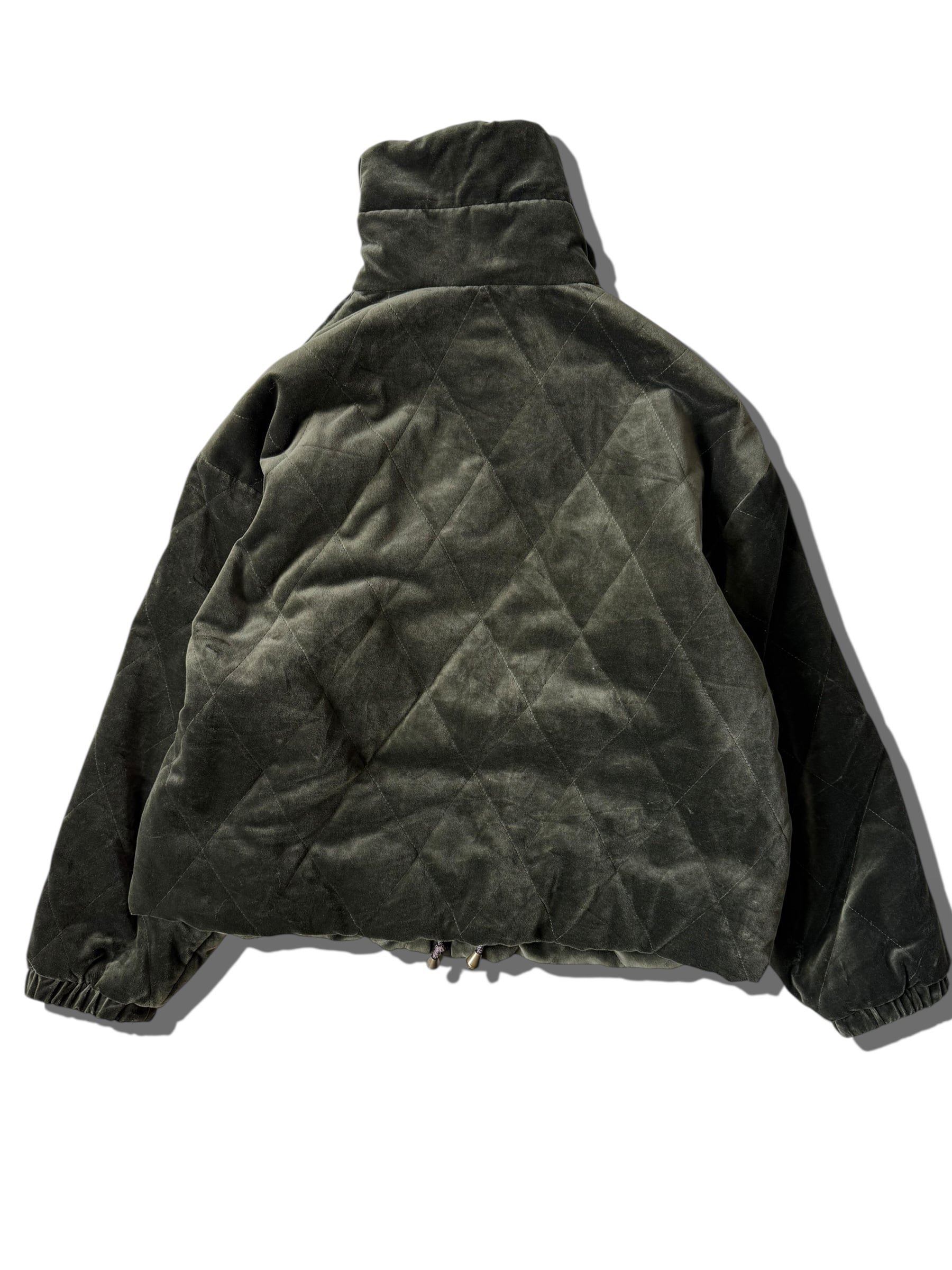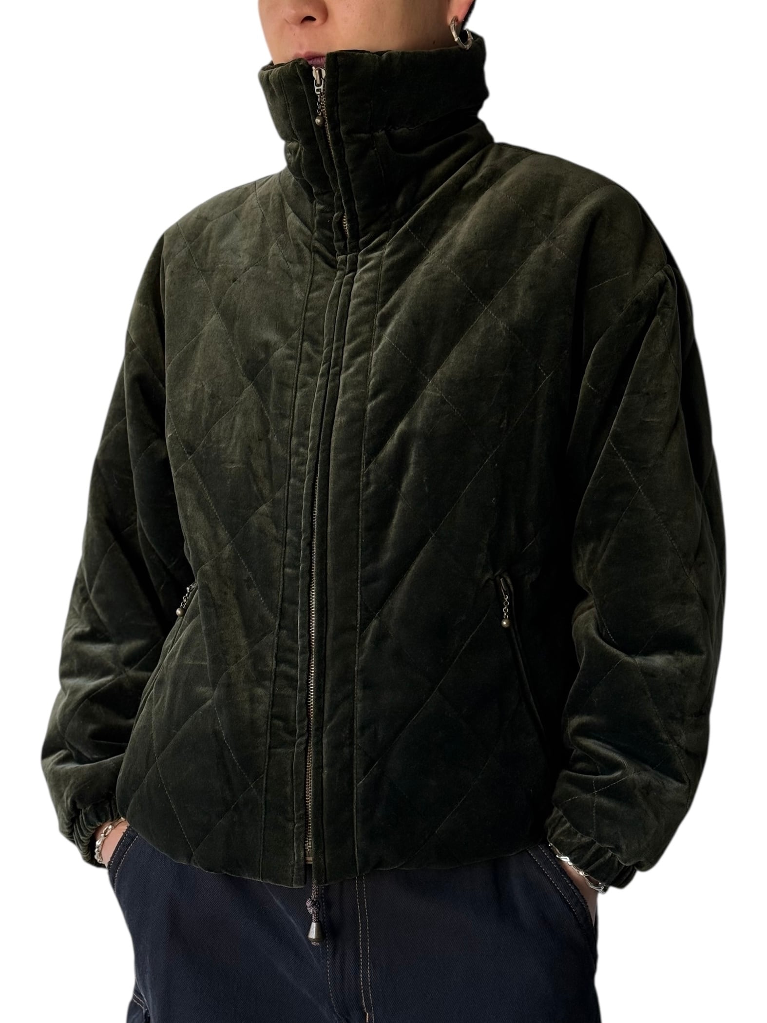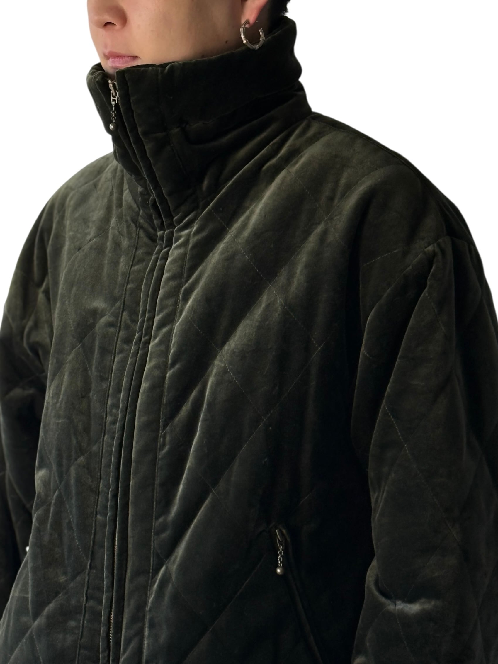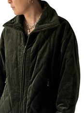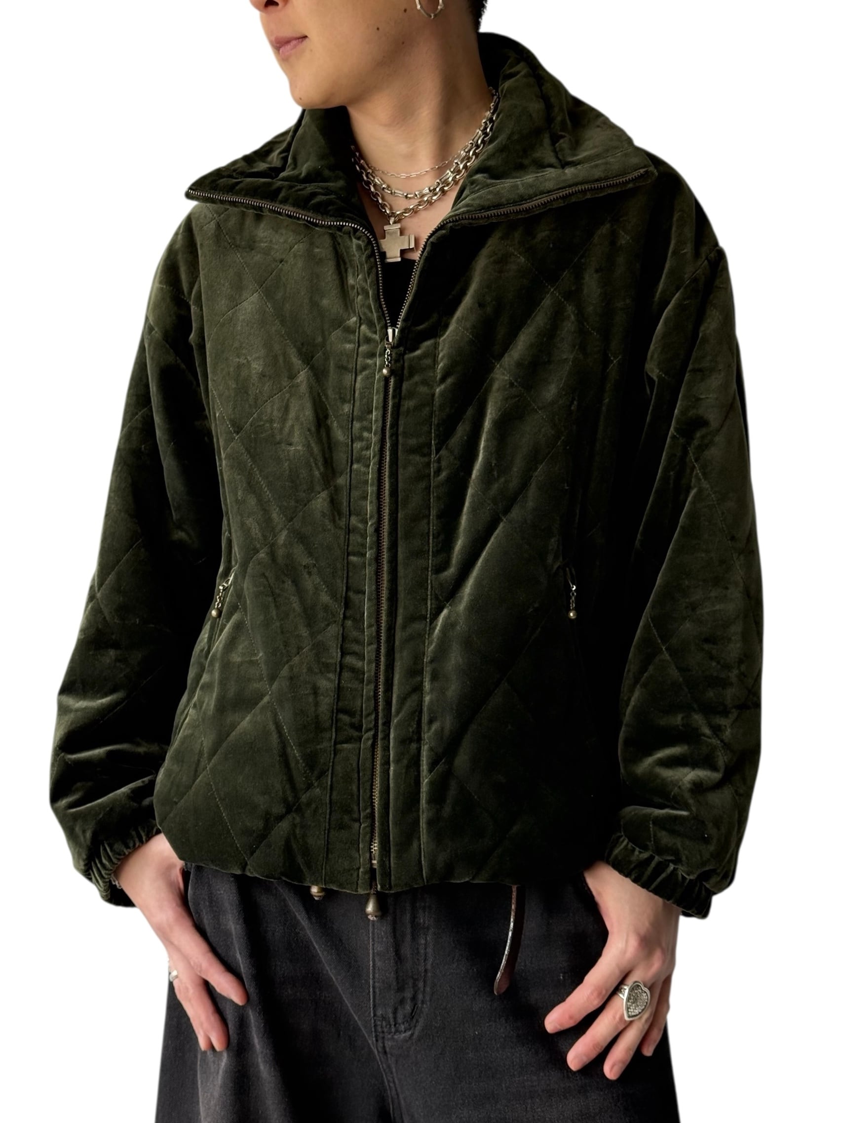 深いオリーブカラーの落ち着いたベロアブルゾン‼️ 首元形の良いハイネックにボリューミーなシルエットがめちゃイケ❗️