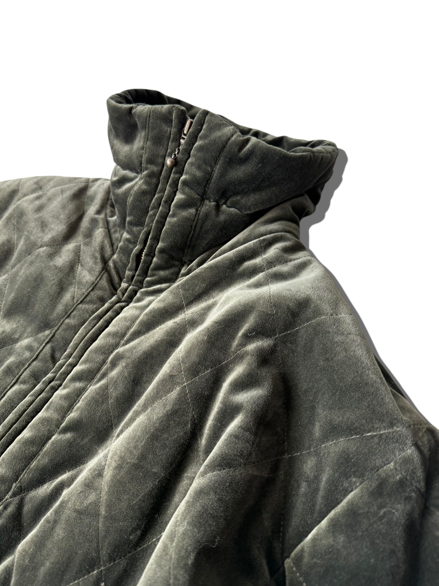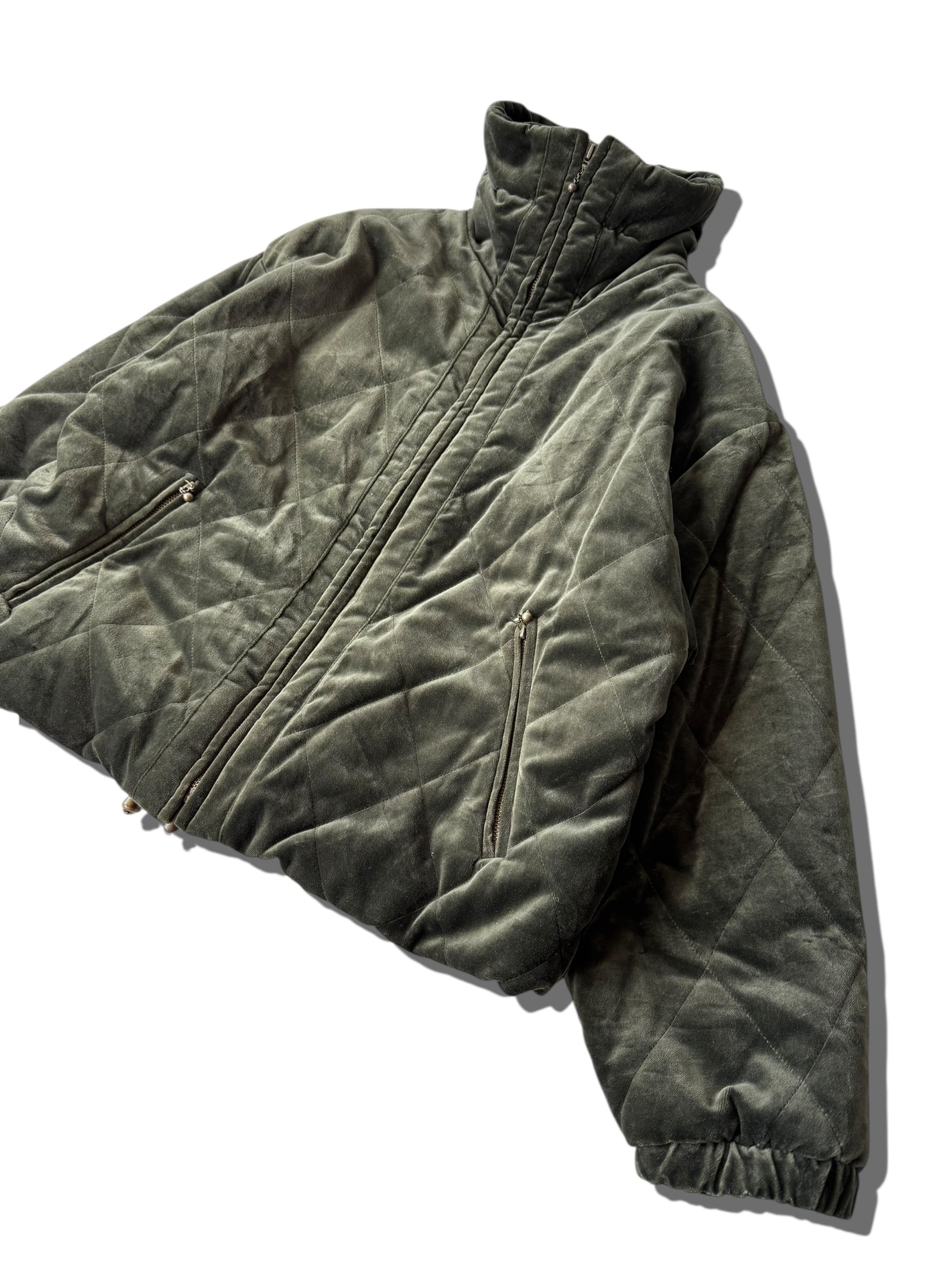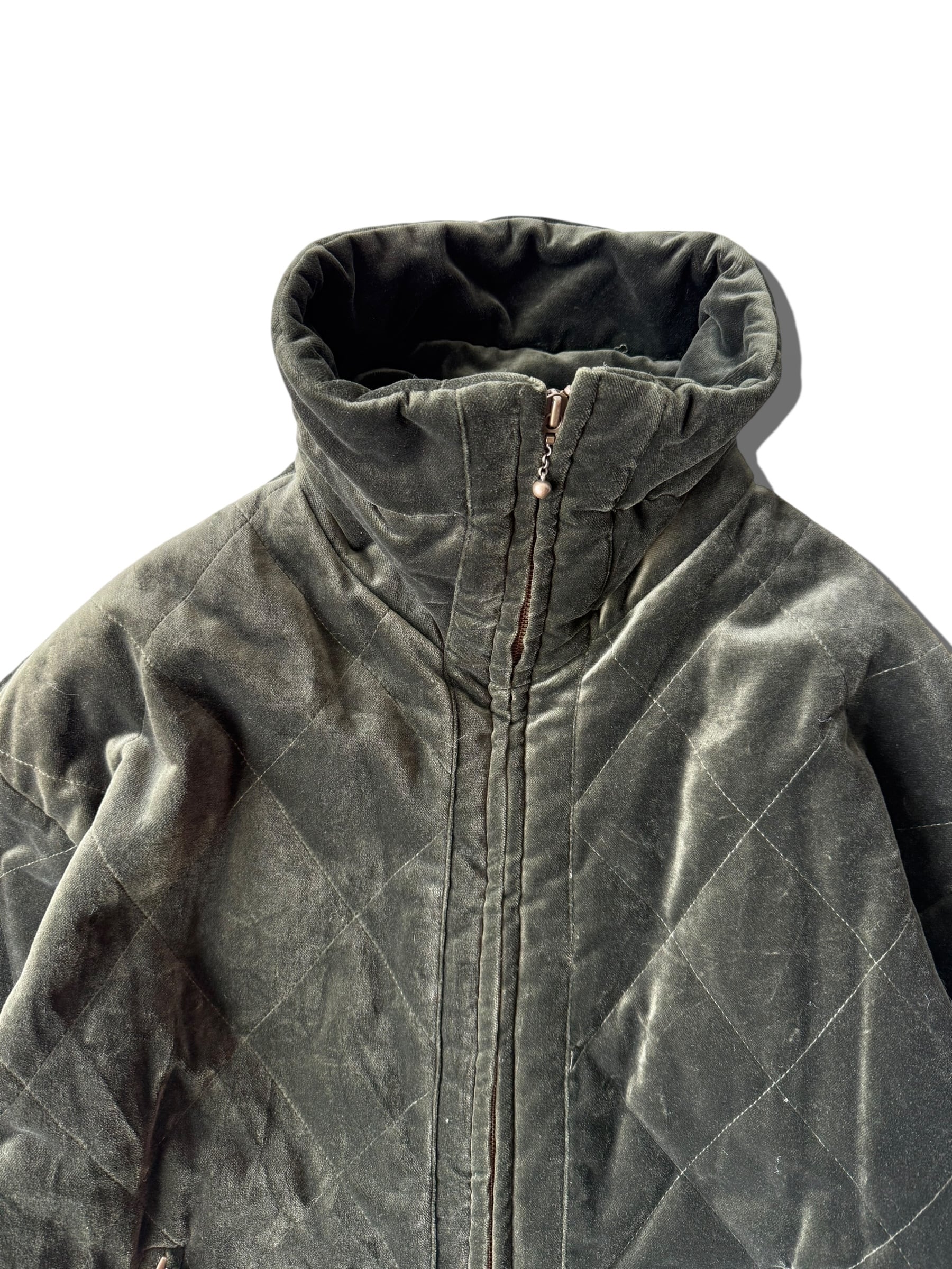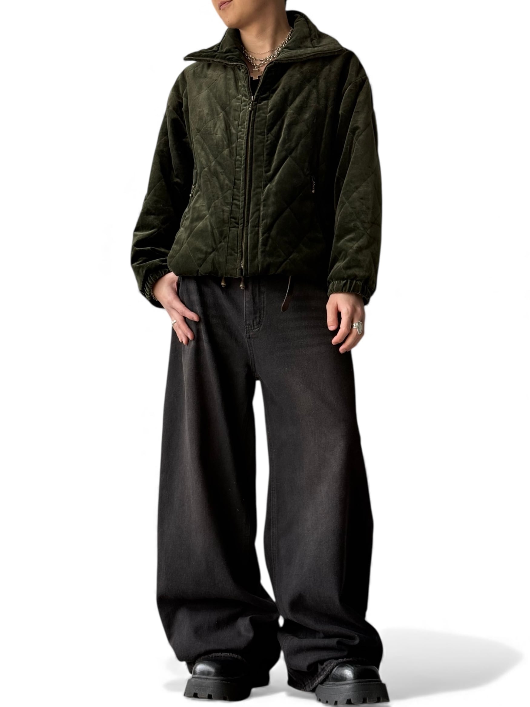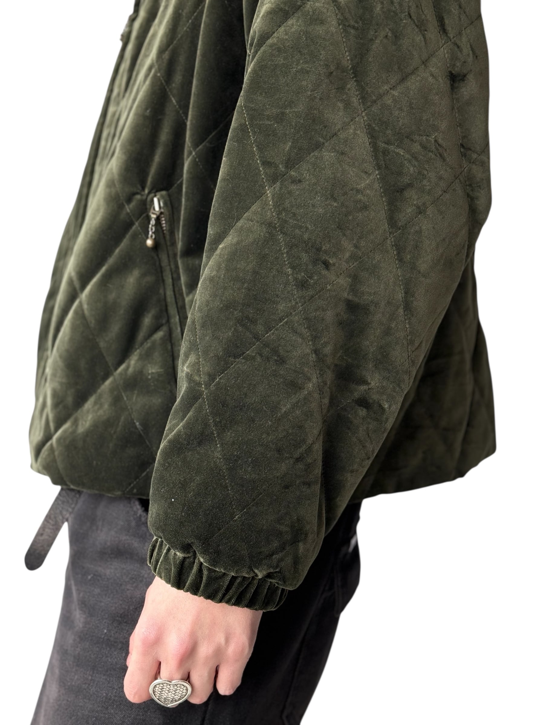 深いオリーブカラーの落ち着いたベロアブルゾン‼️ 首元形の良いハイネックにボリューミーなシルエットがめちゃイケ❗️