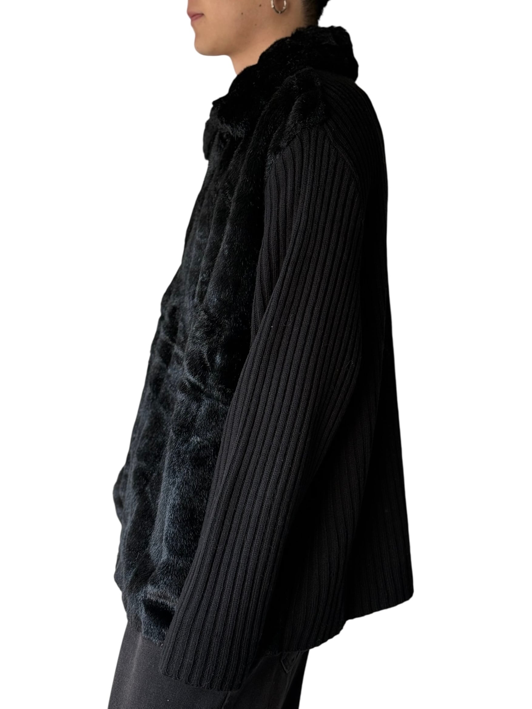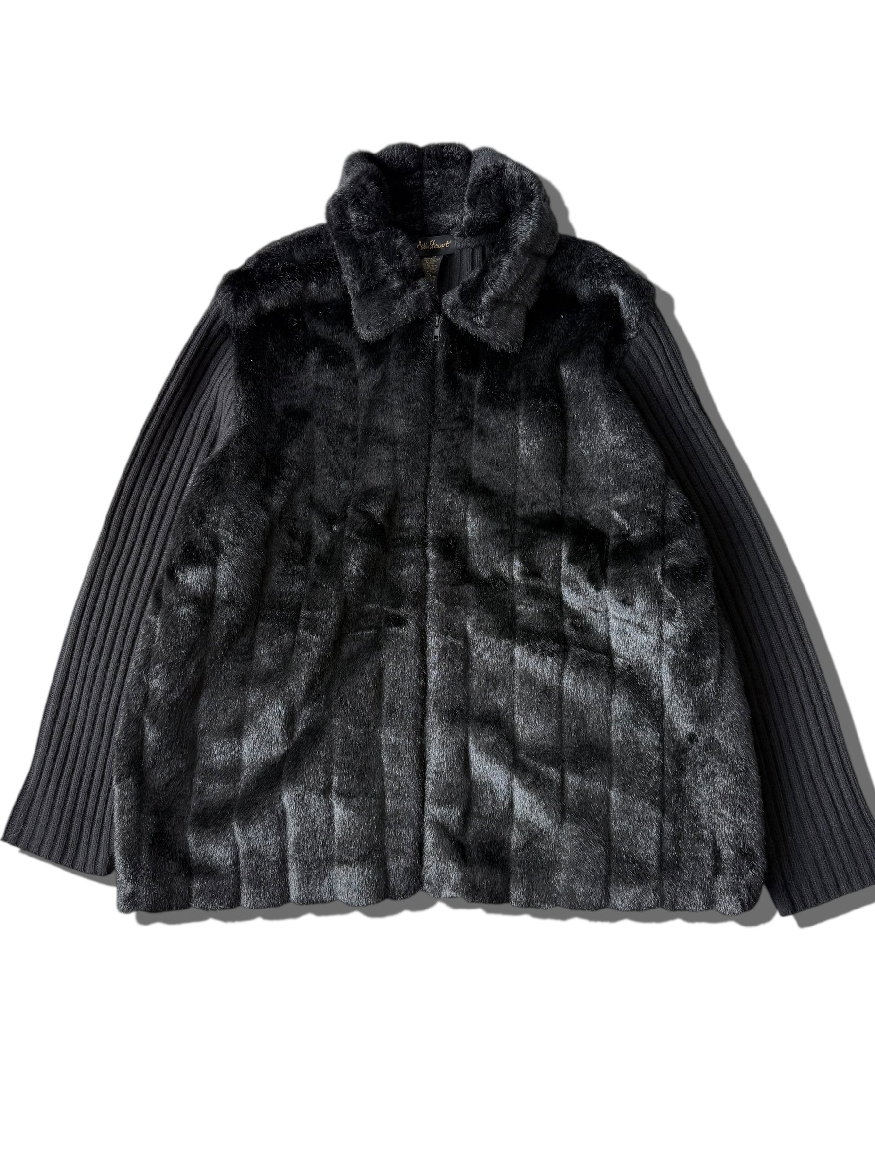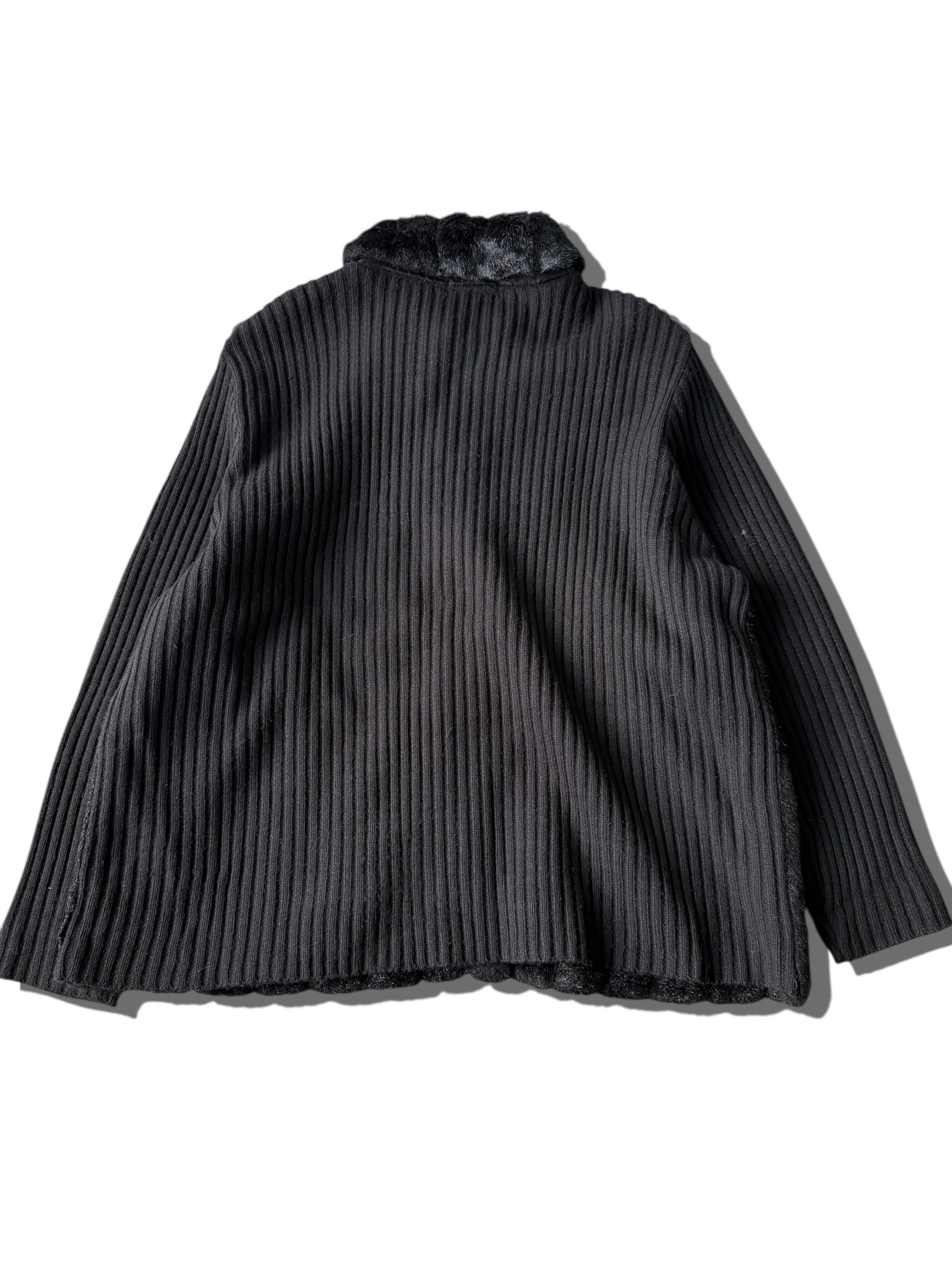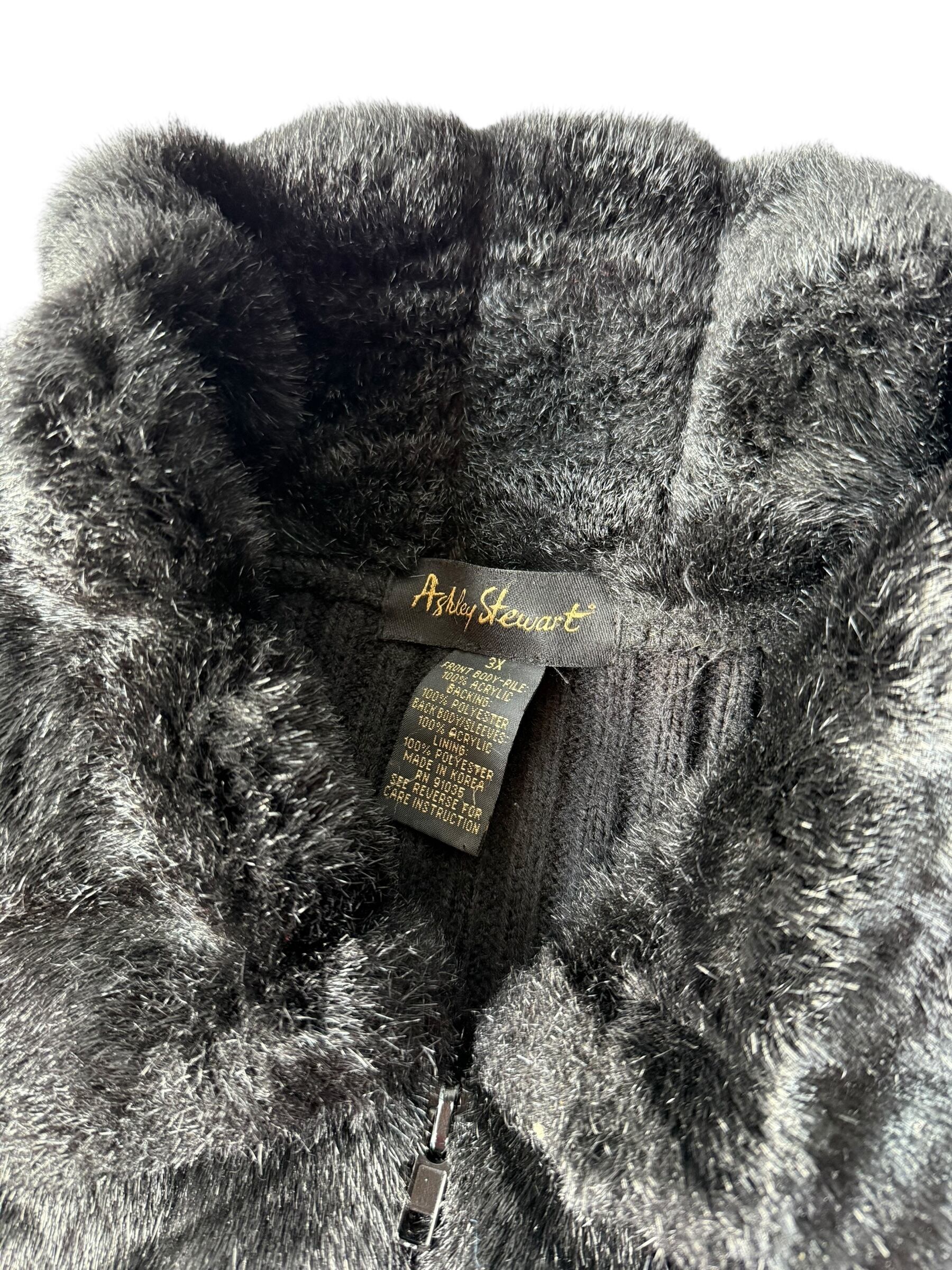 【ASHLEY STEWART】Fur-trimmed zip-up knit jacket