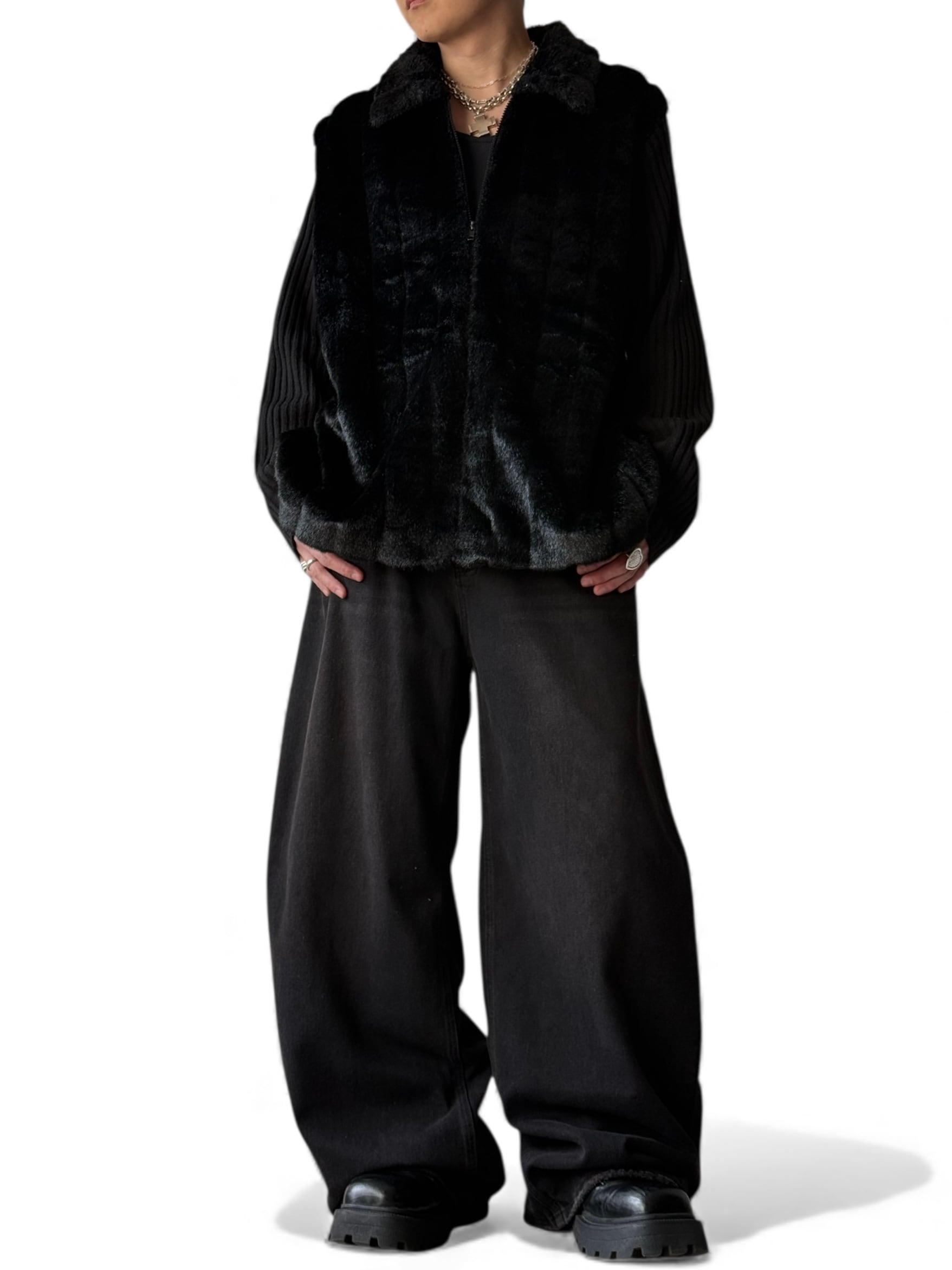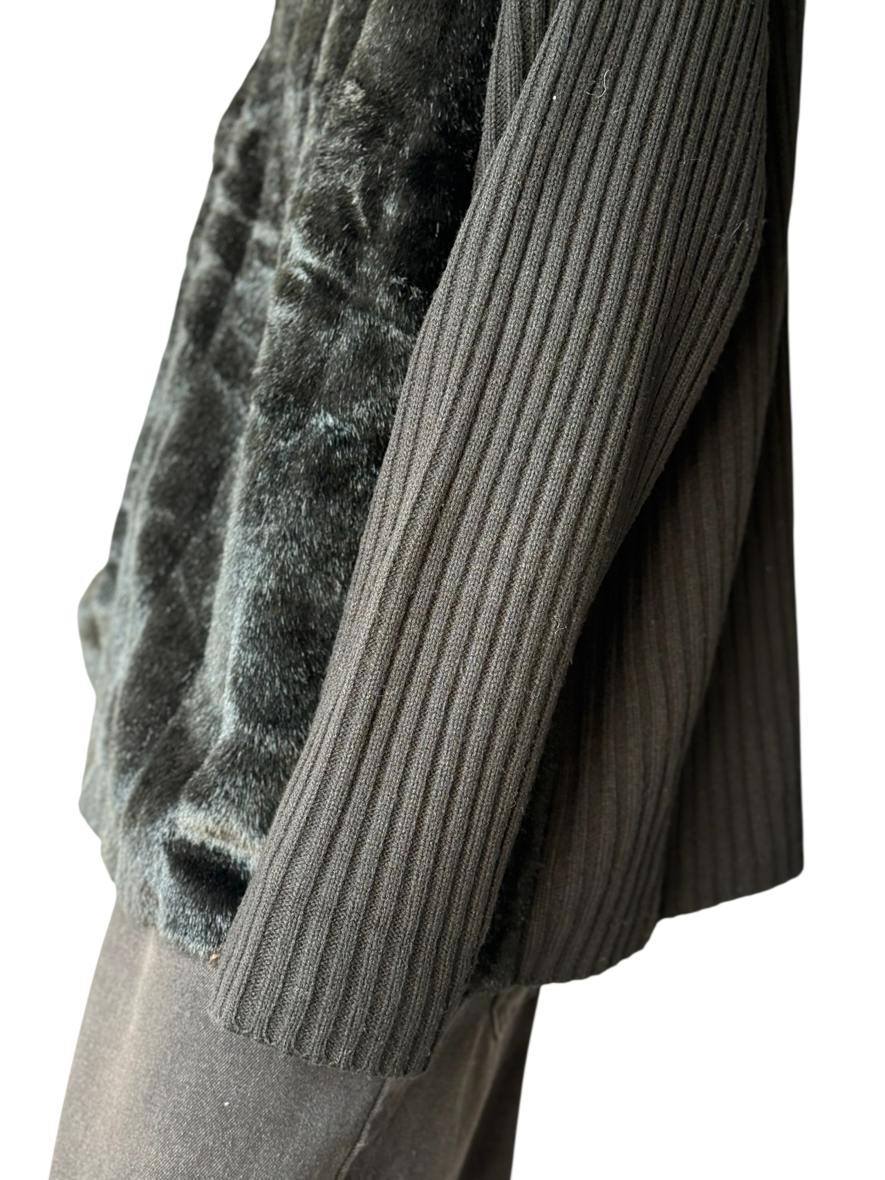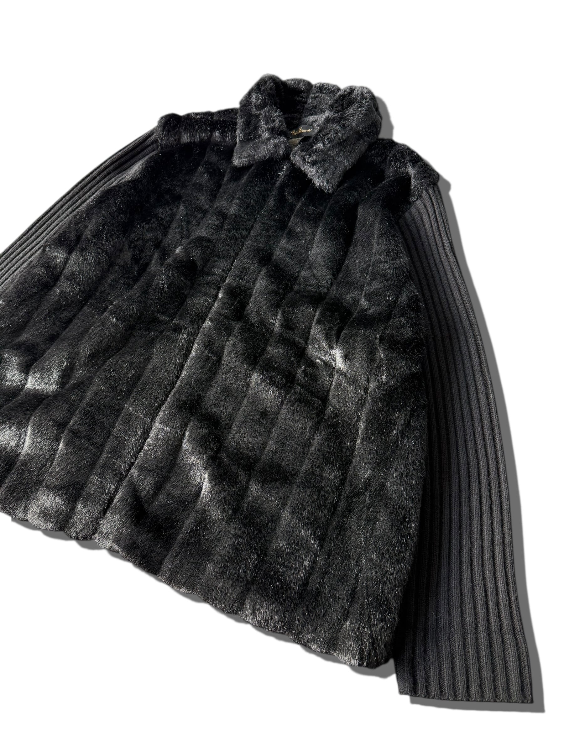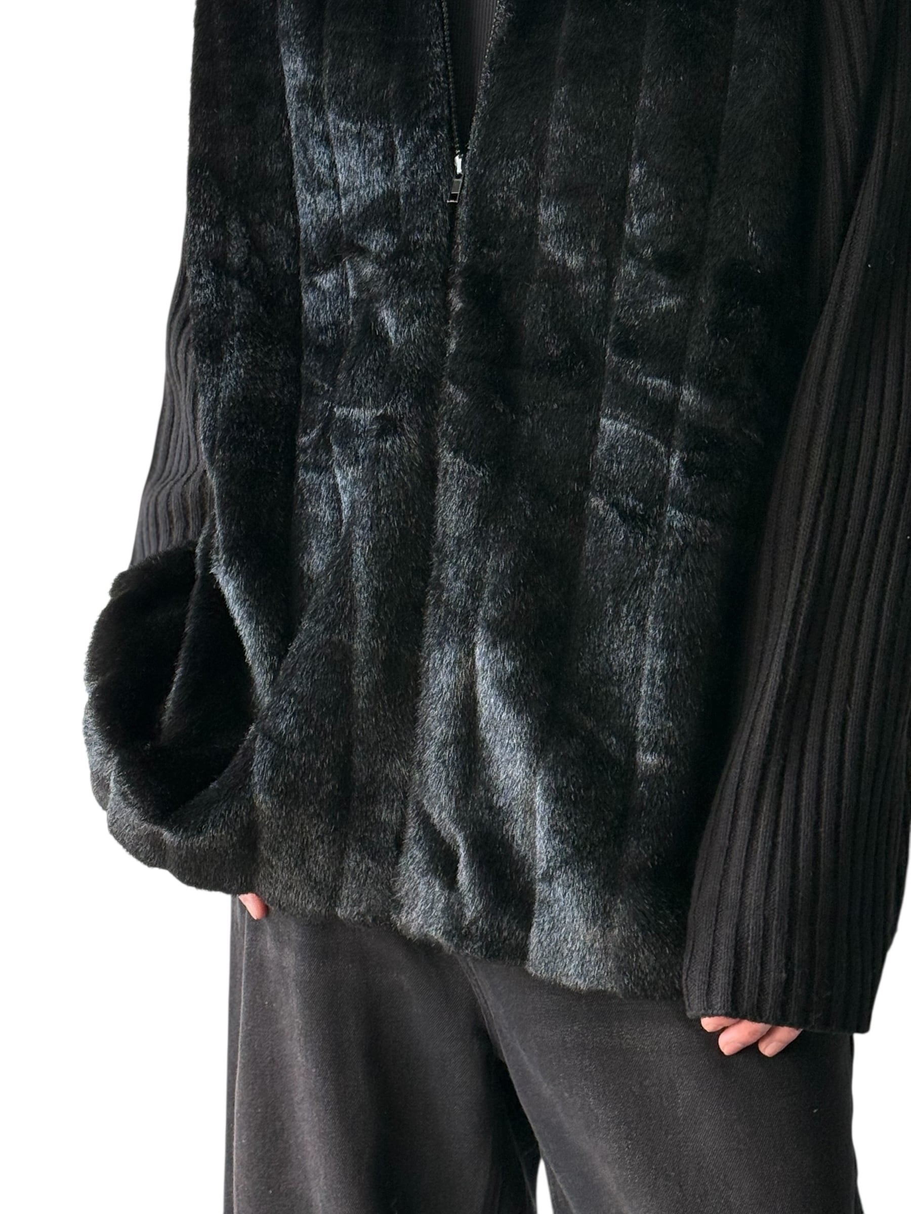 【ASHLEY STEWART】Fur-trimmed zip-up knit jacket