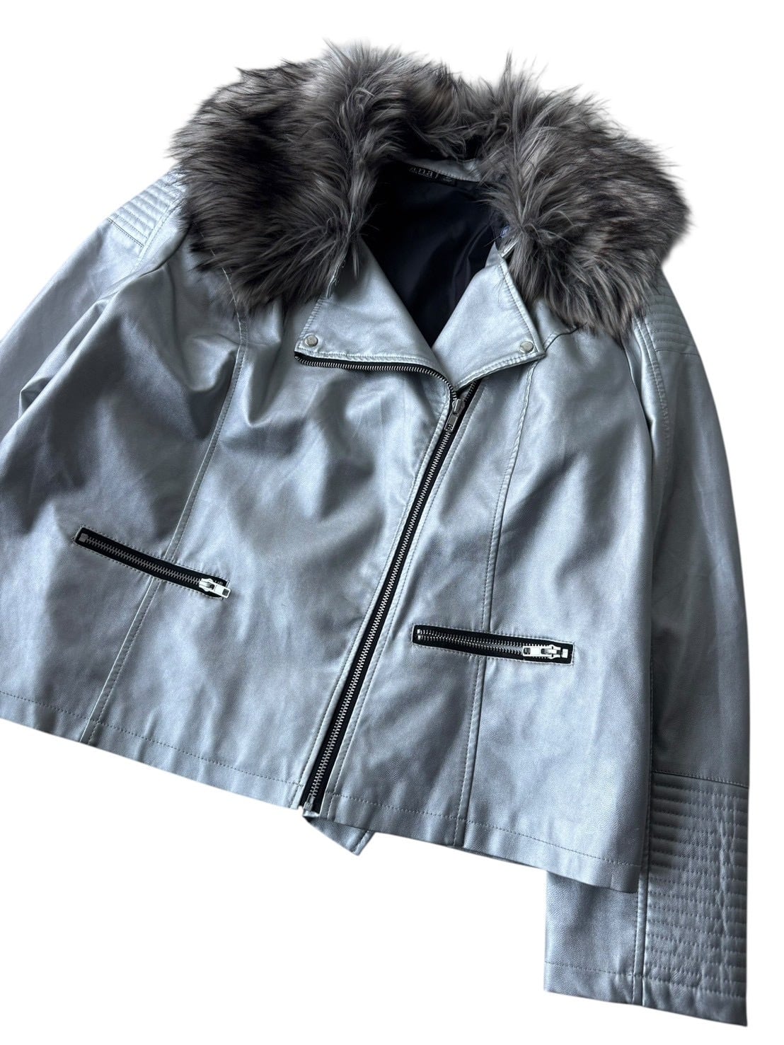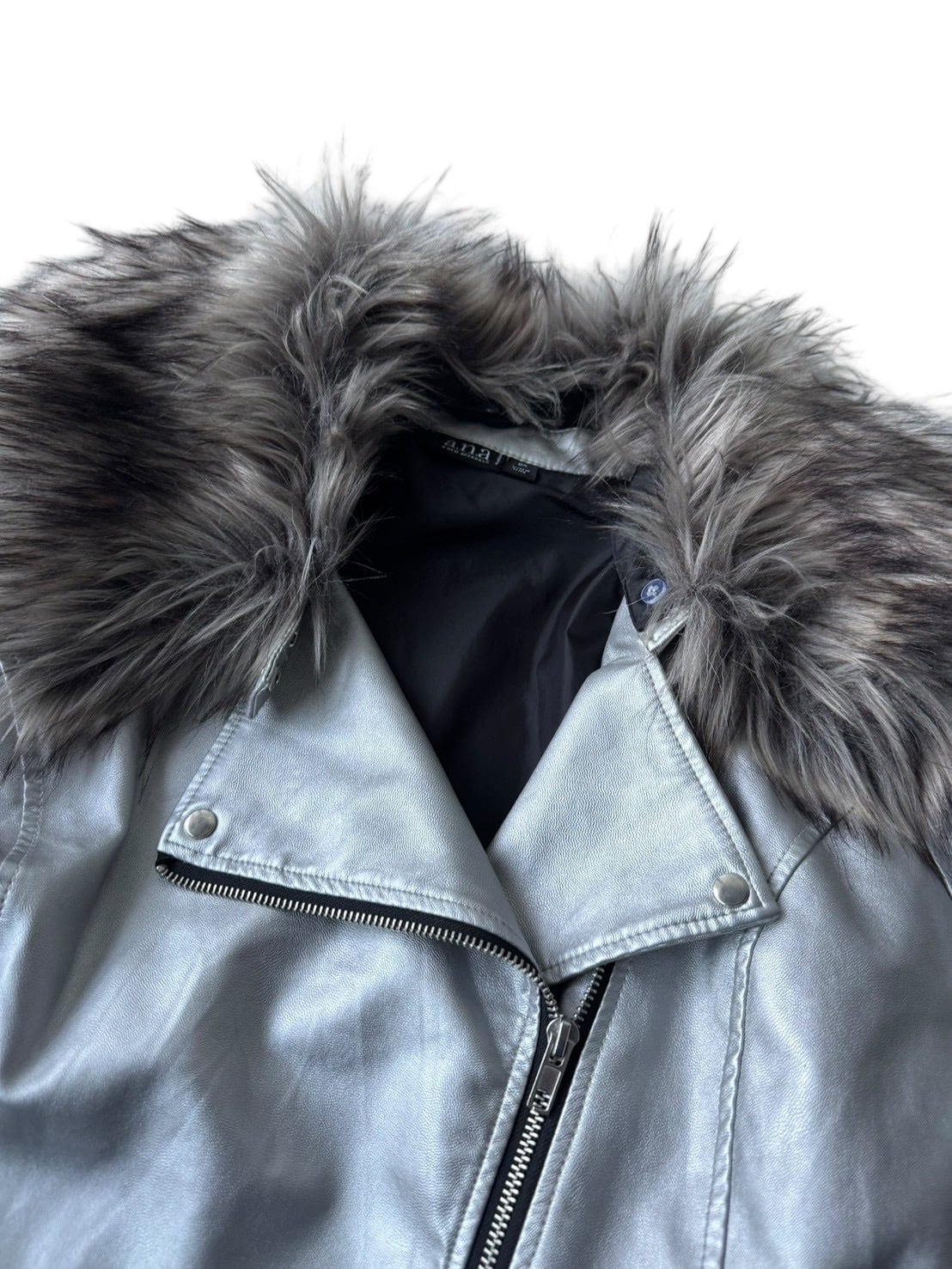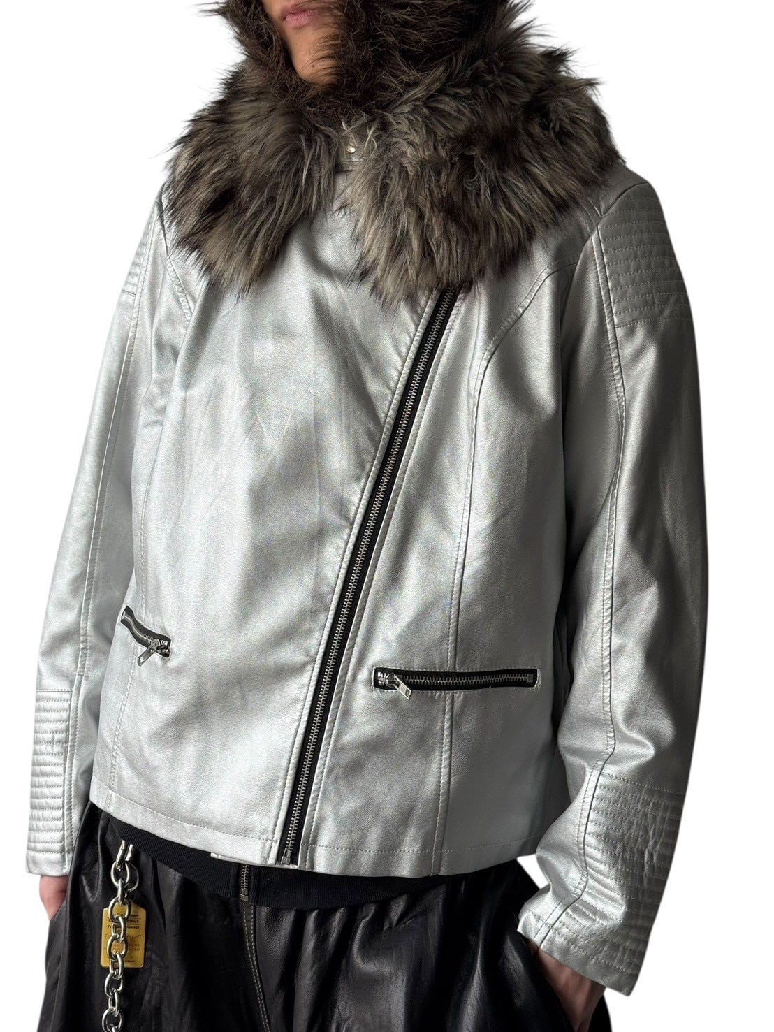 ♾a.n.a♾ 925silver color faux fur switching design double riders jacket sizeOX