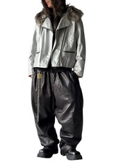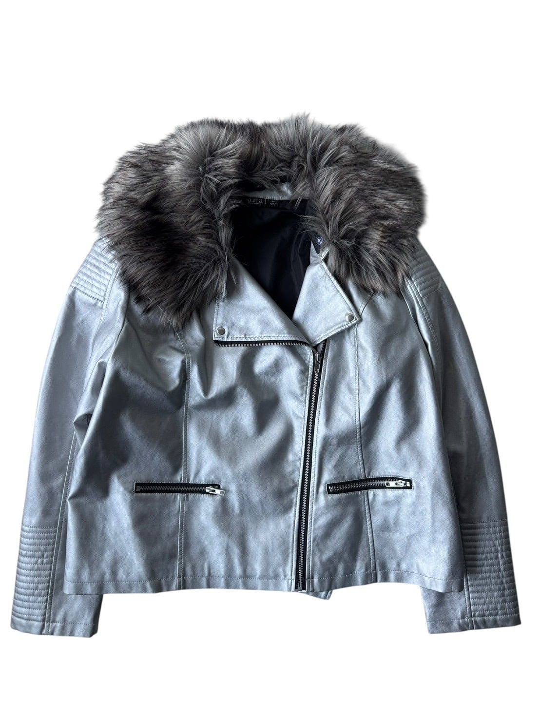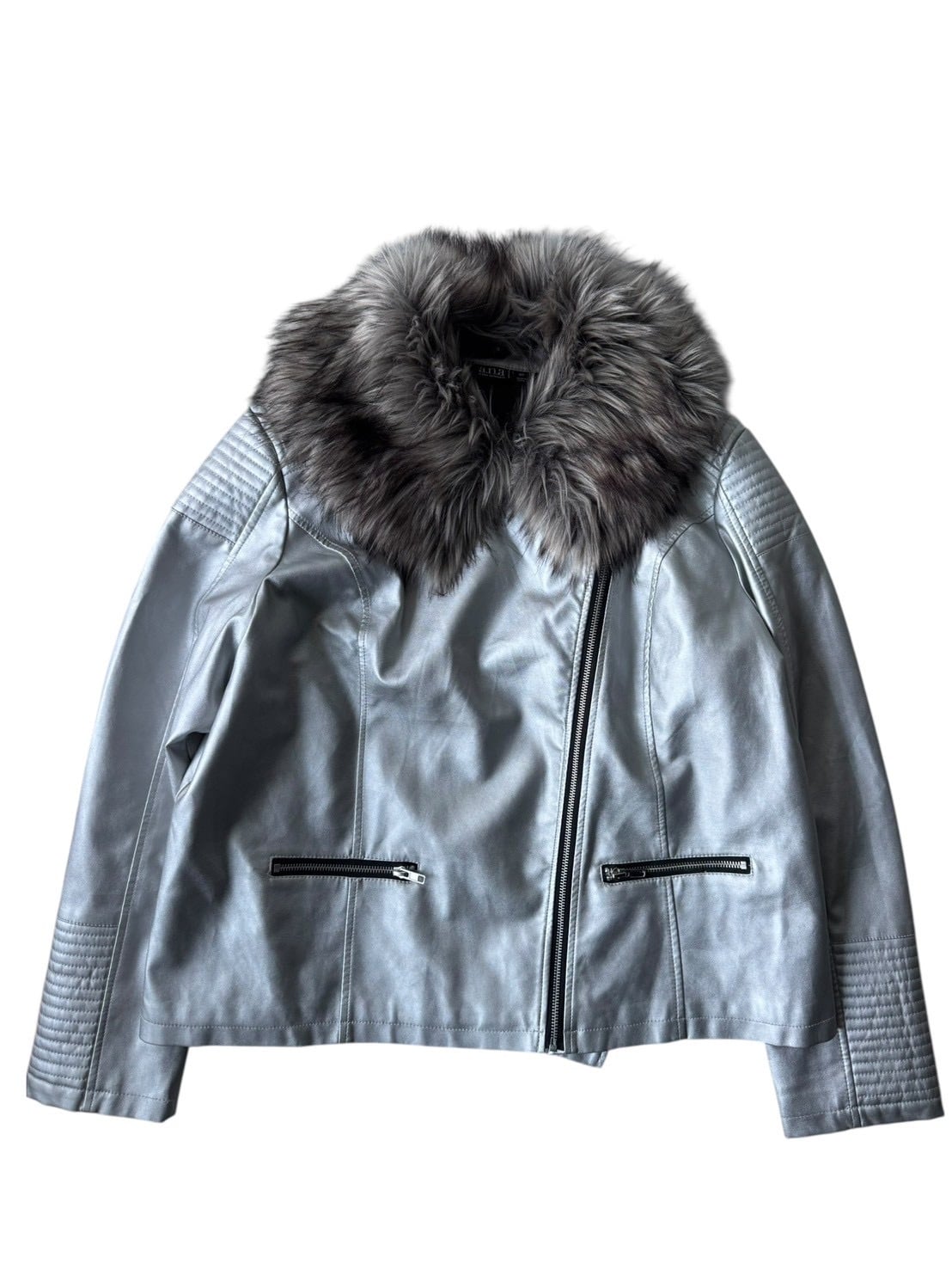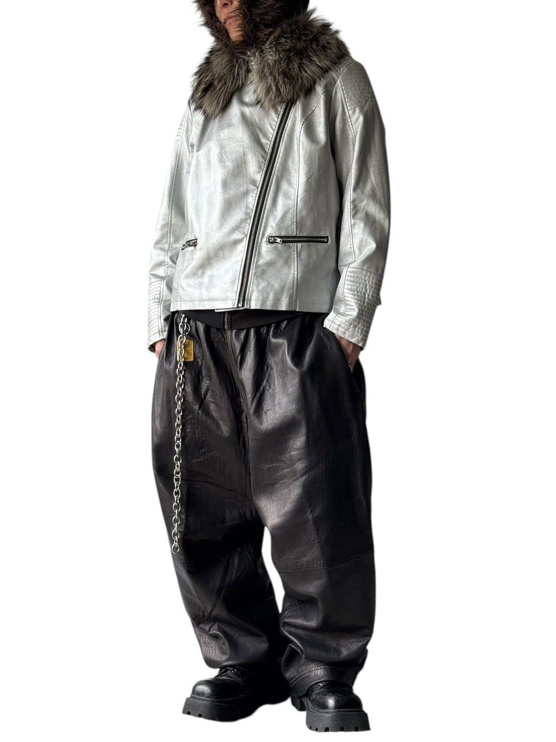 ♾a.n.a♾ 925silver color faux fur switching design double riders jacket sizeOX