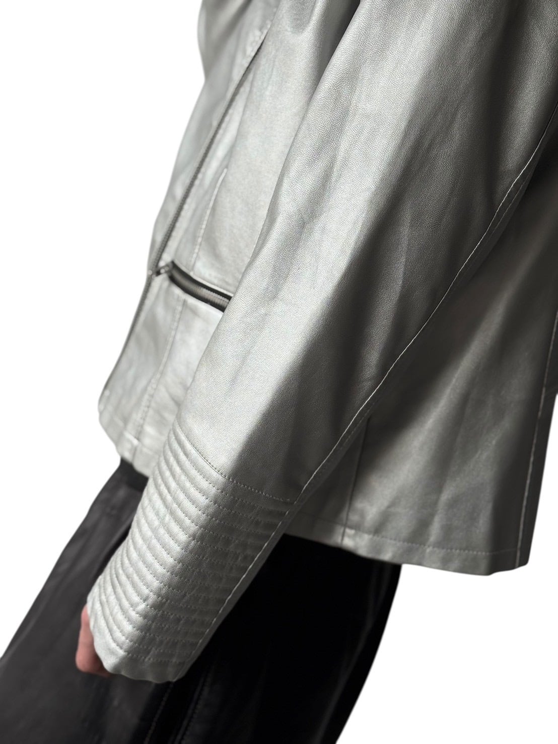 メタリックなシルバーカラーが目を引くデザインライダースジャケットの入荷✨️✨️