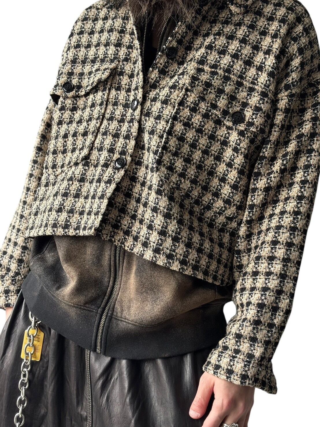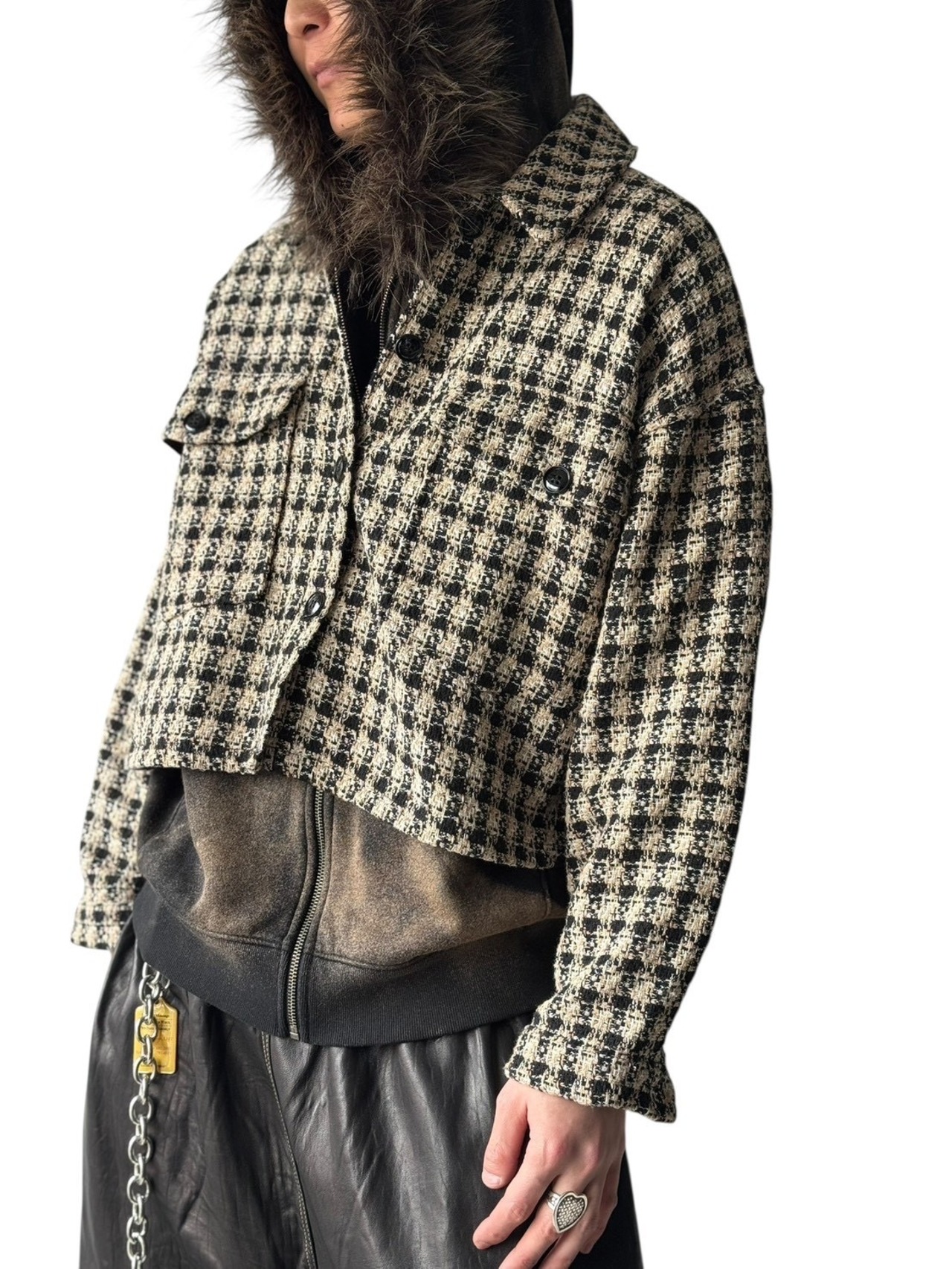 ♾Shinesdar♾ wide short length tweed shirt jacket sizeM