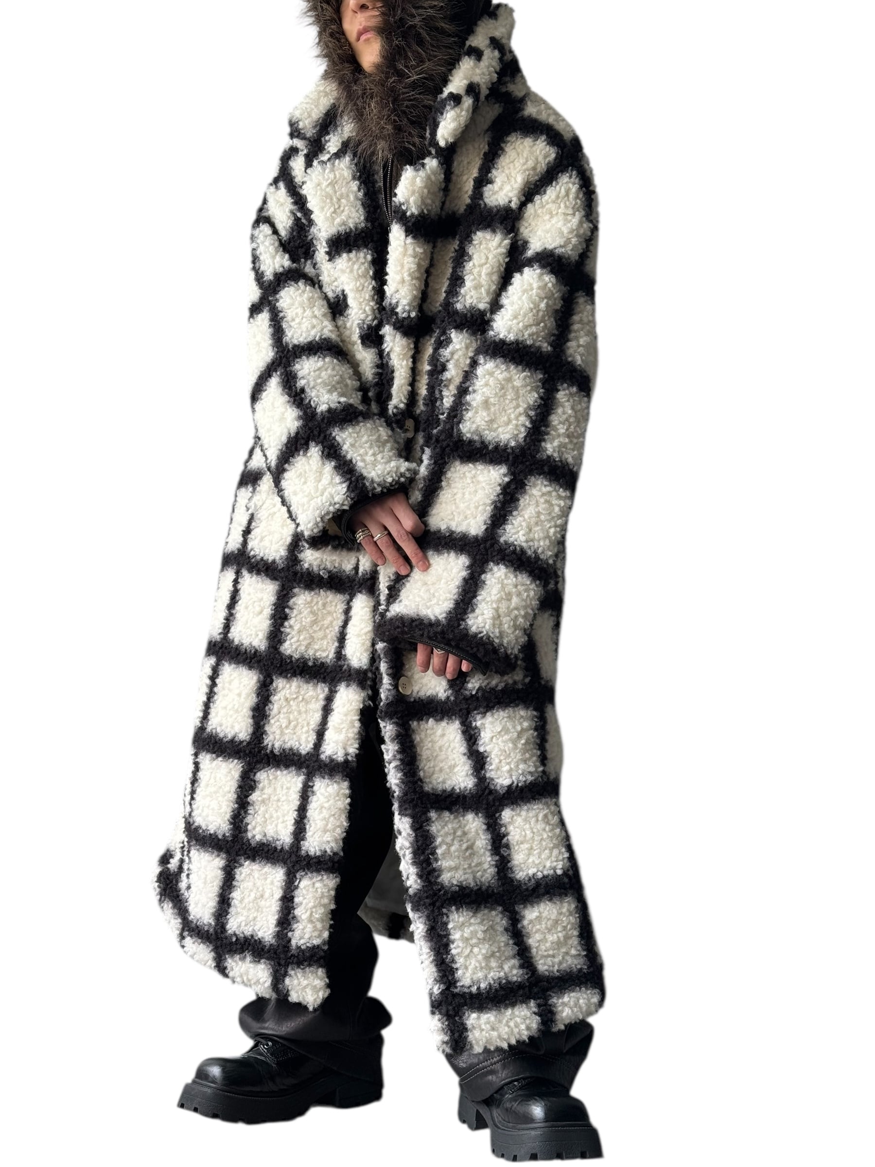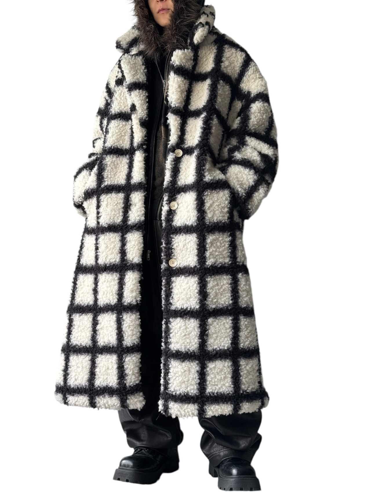 check design boa long Chester coat