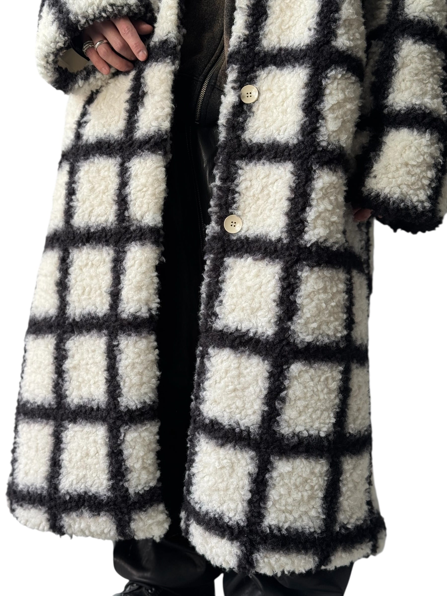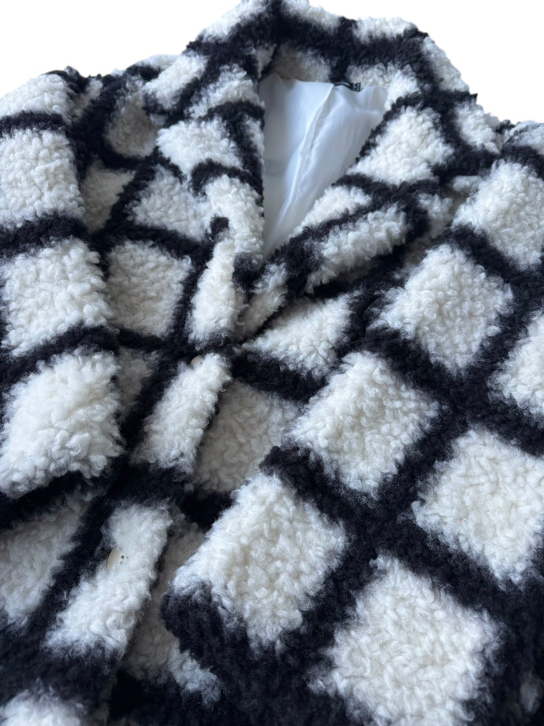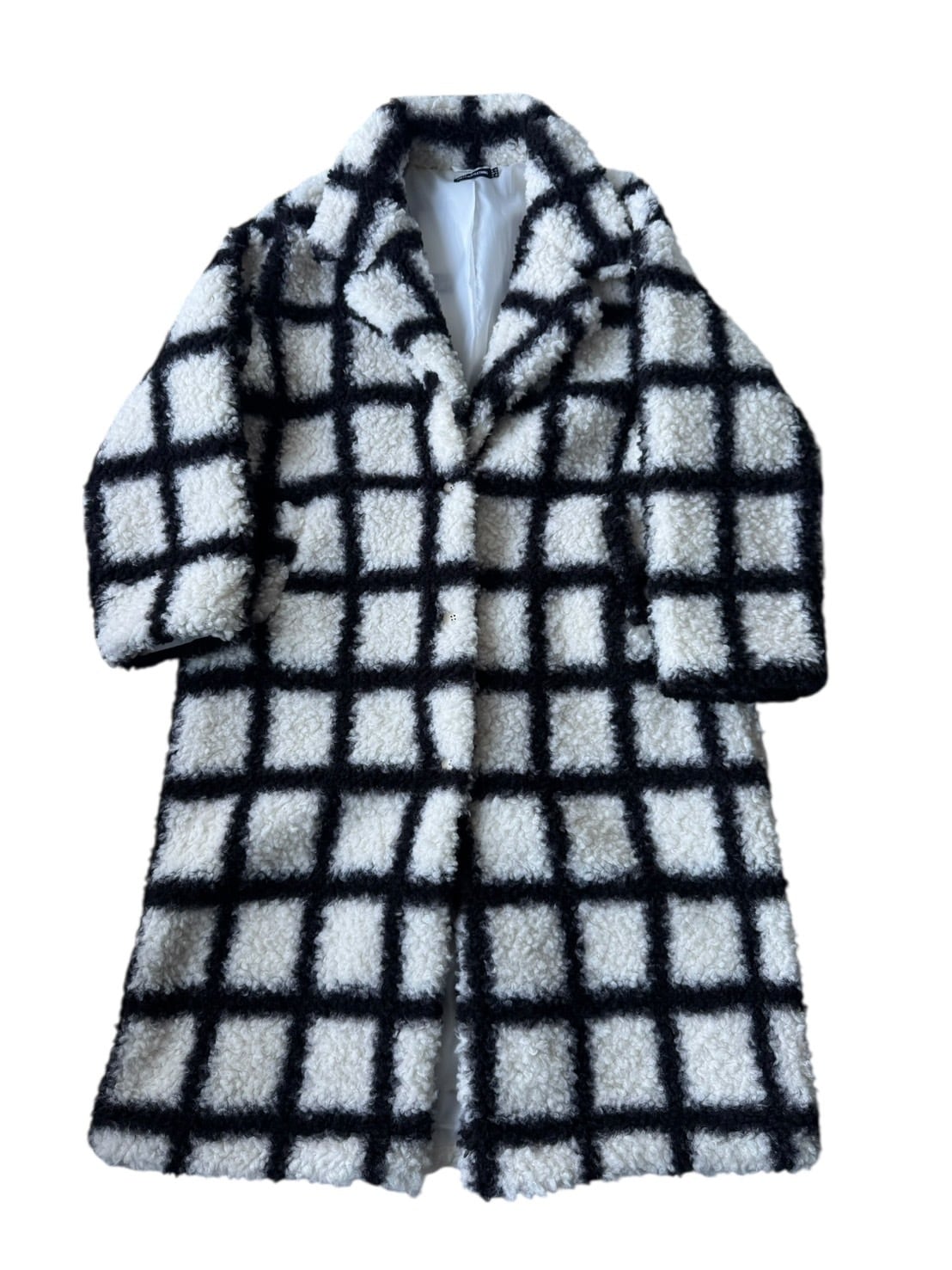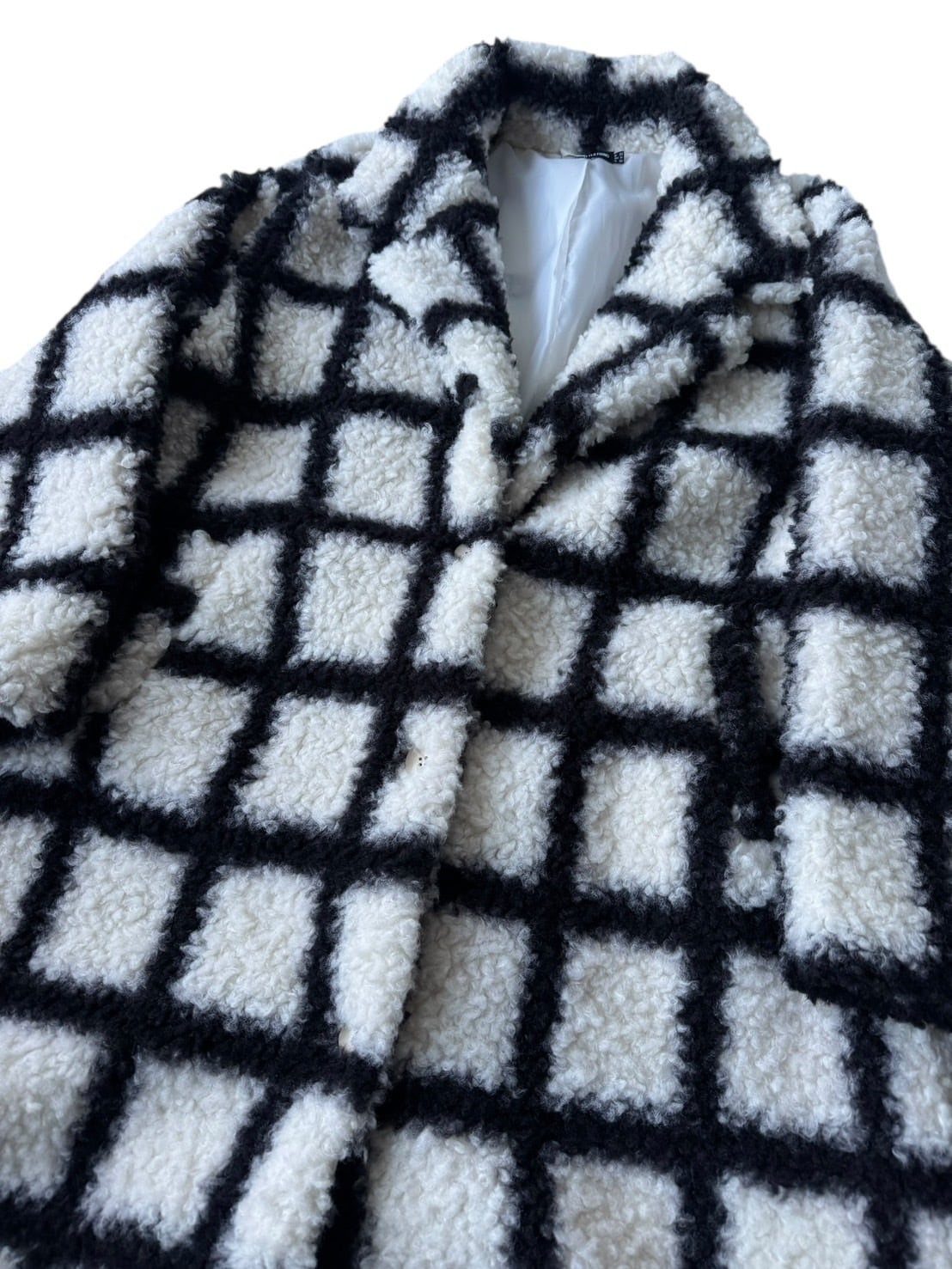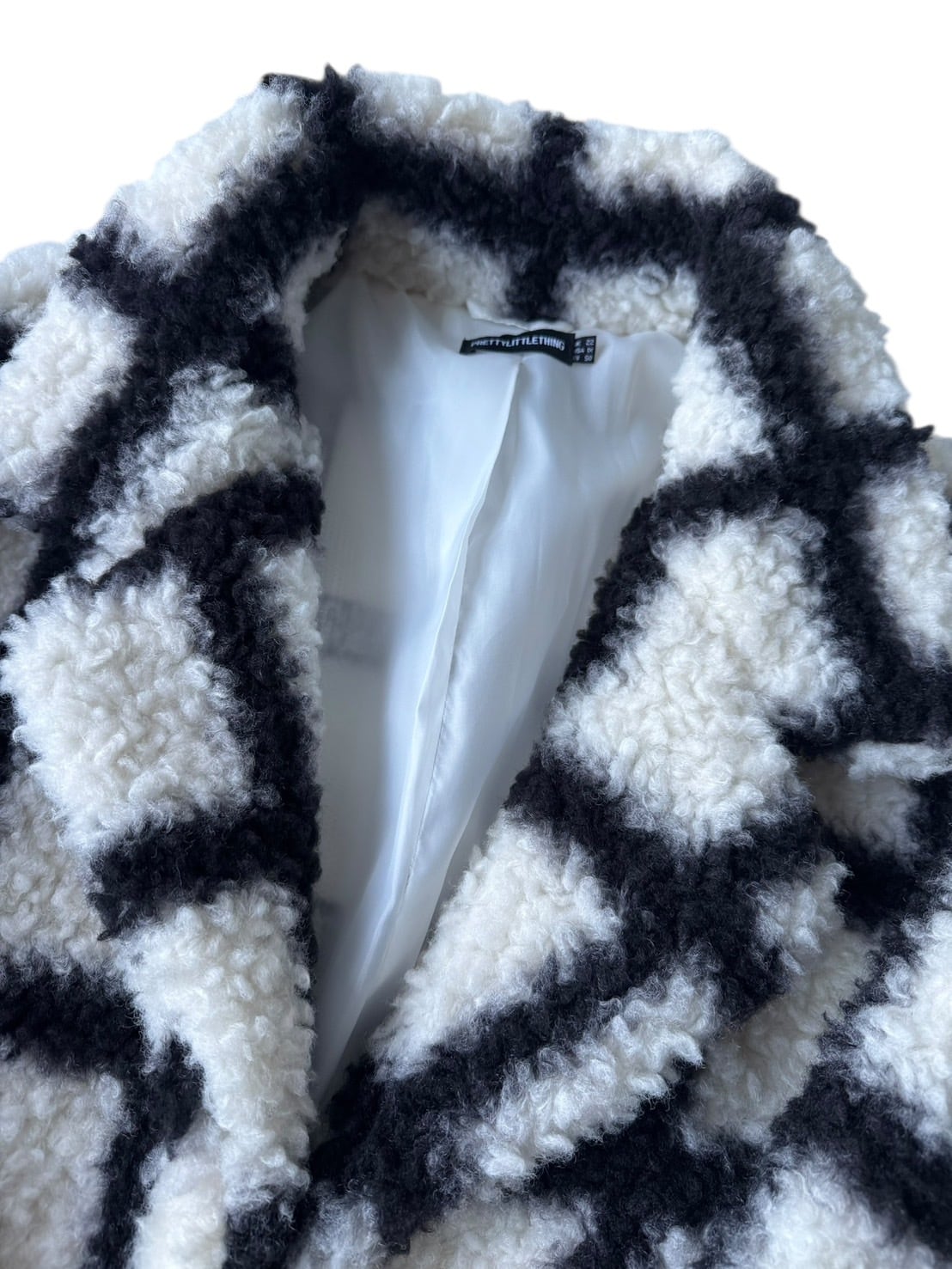 ♾PRETTYLITTLETHING♾ check design boa long Chester coat size 1X