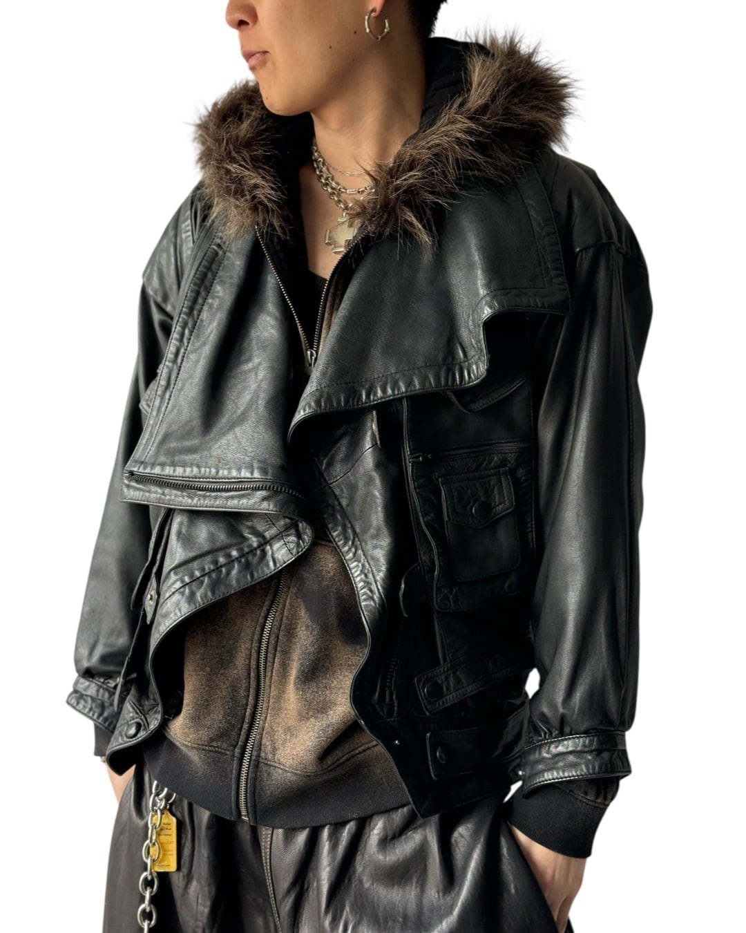 Euro vintage ♾design used♾ 2way design gimmickleather Jacket size 38