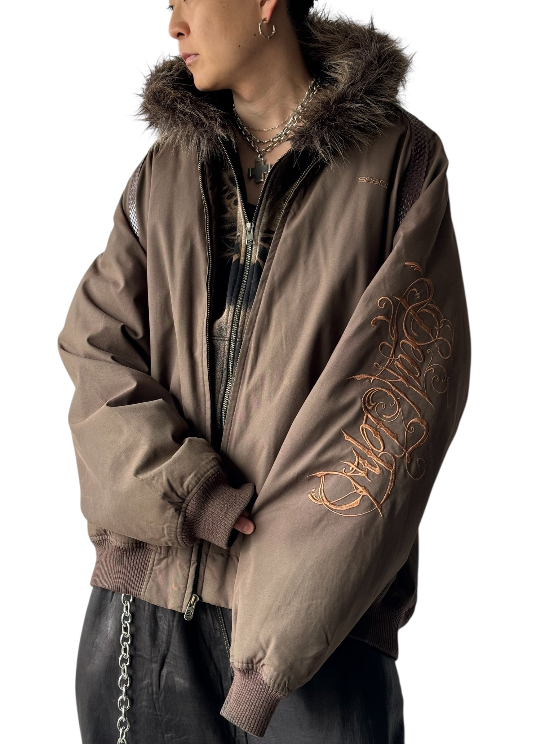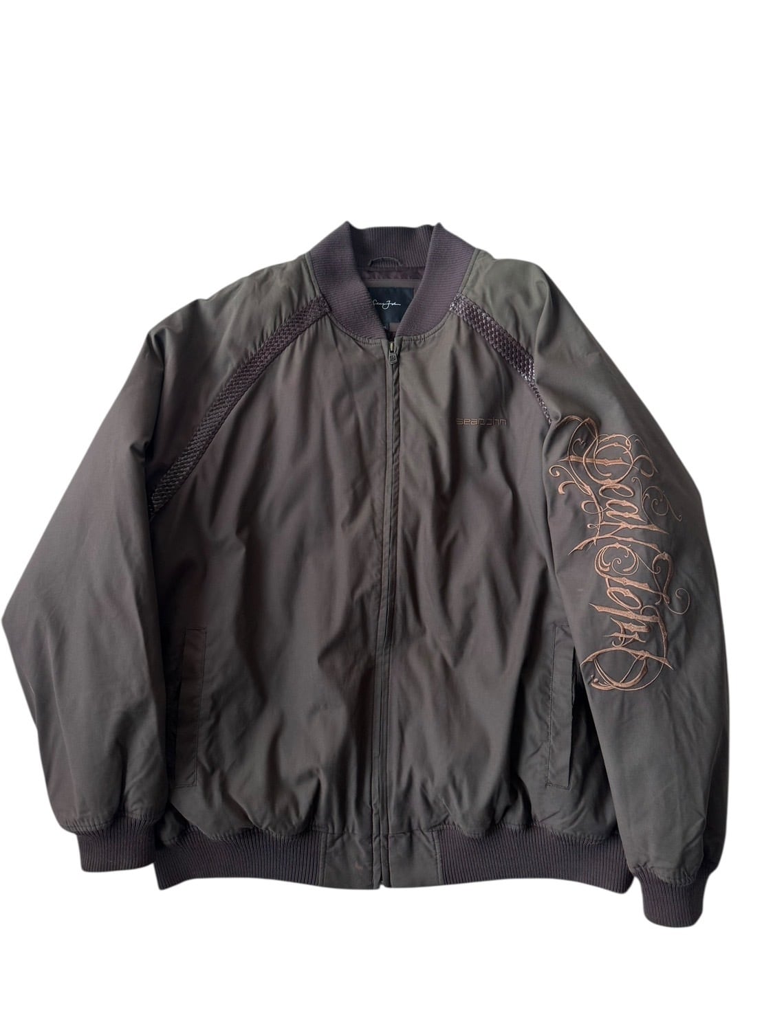 ♾sean john♾ Mesh-lined lettering embroidered bomber jacket size 3XL