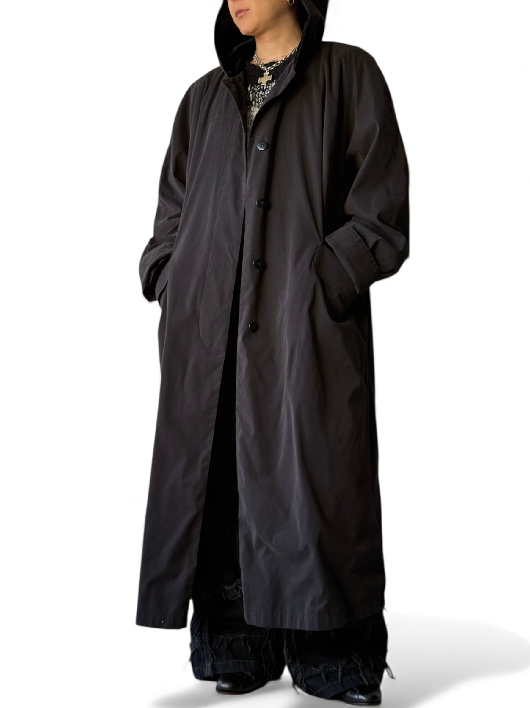 久々の着丈がスーパー長いモードな印象のフーデッドコート✨ フード内側がベロアなのもポイント❗️