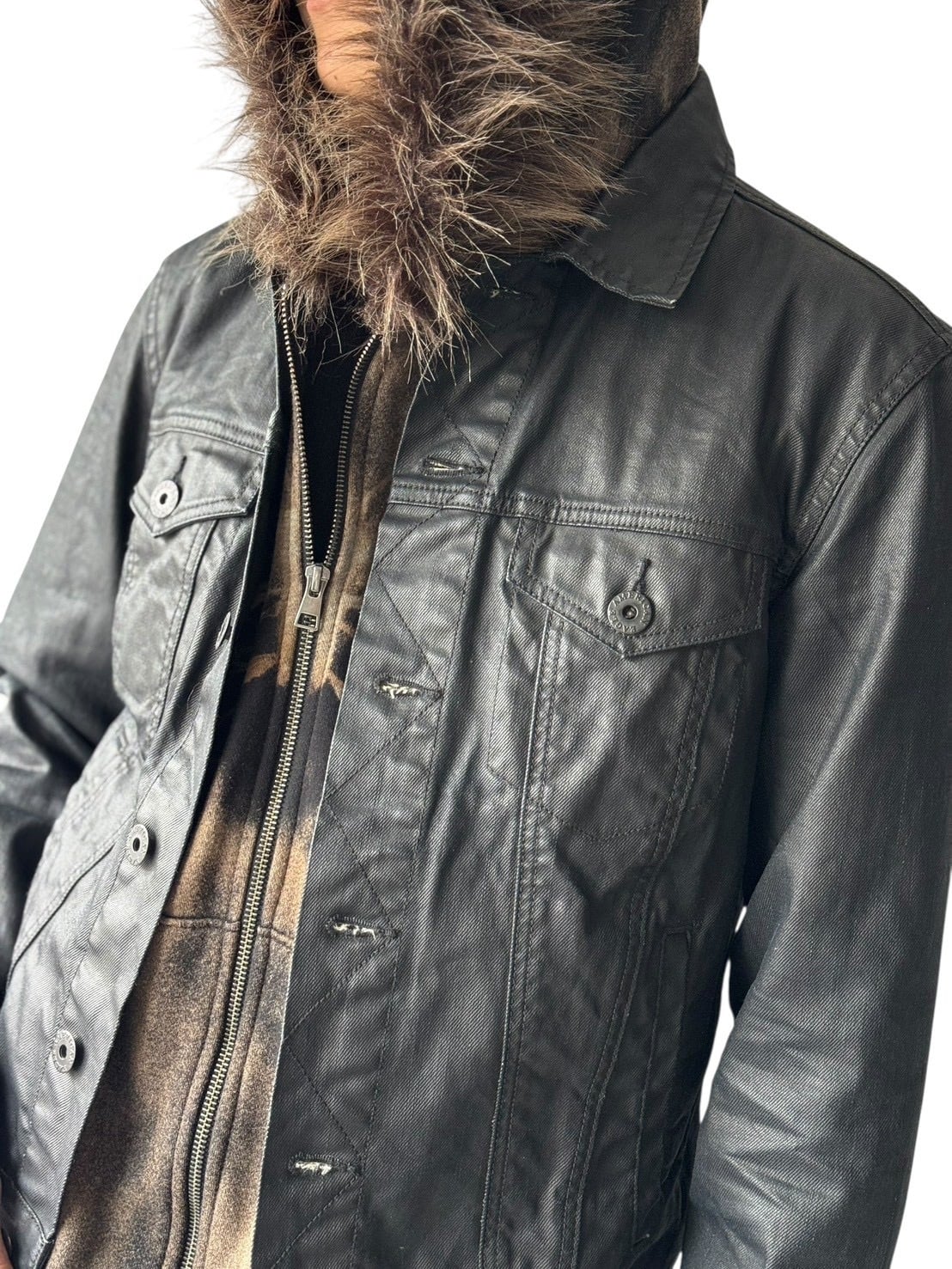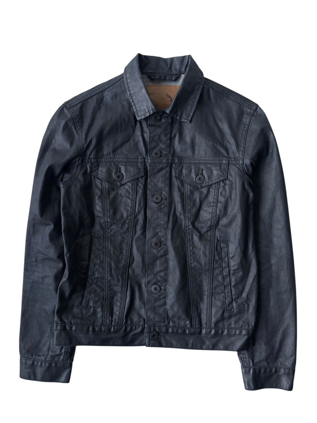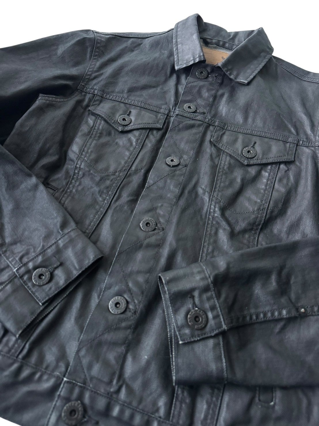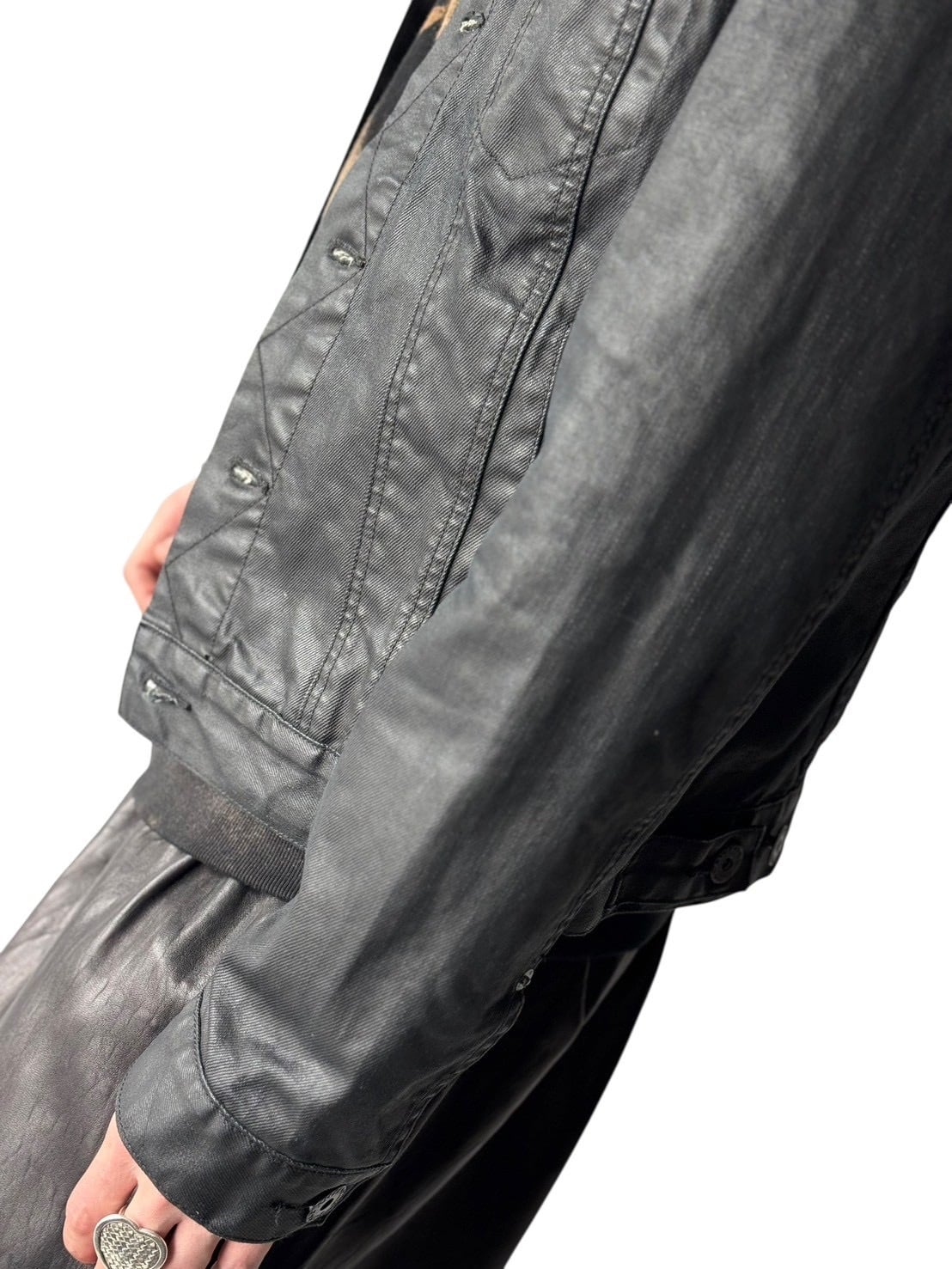 デニムジャケットに高級感のある光沢のあるコーティング加工がされておりめちゃくちゃクール✨️✨️
