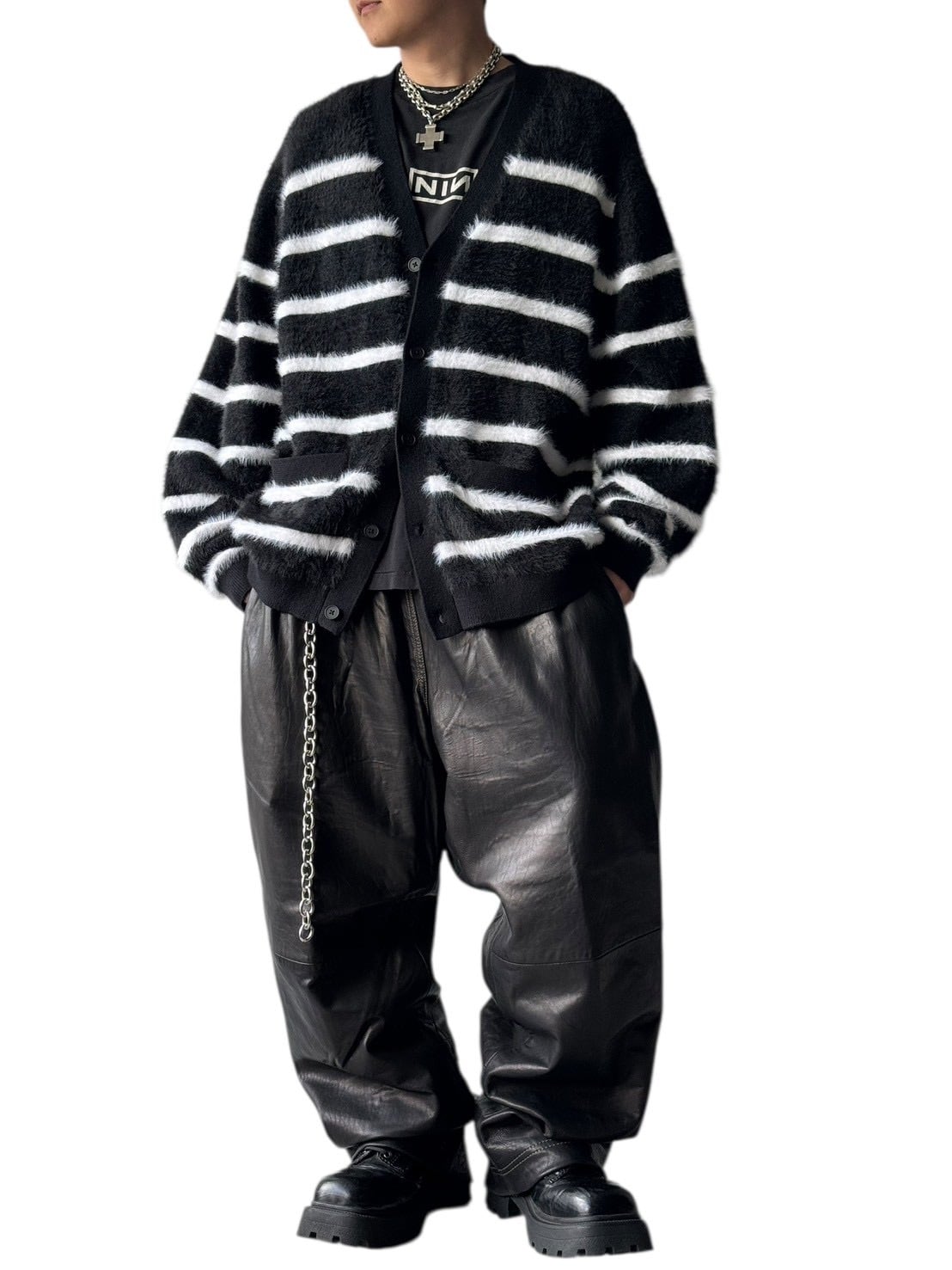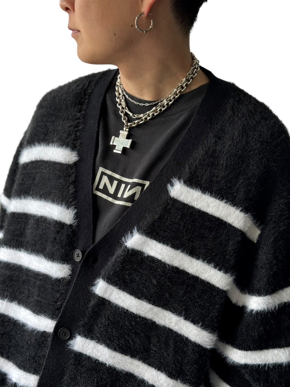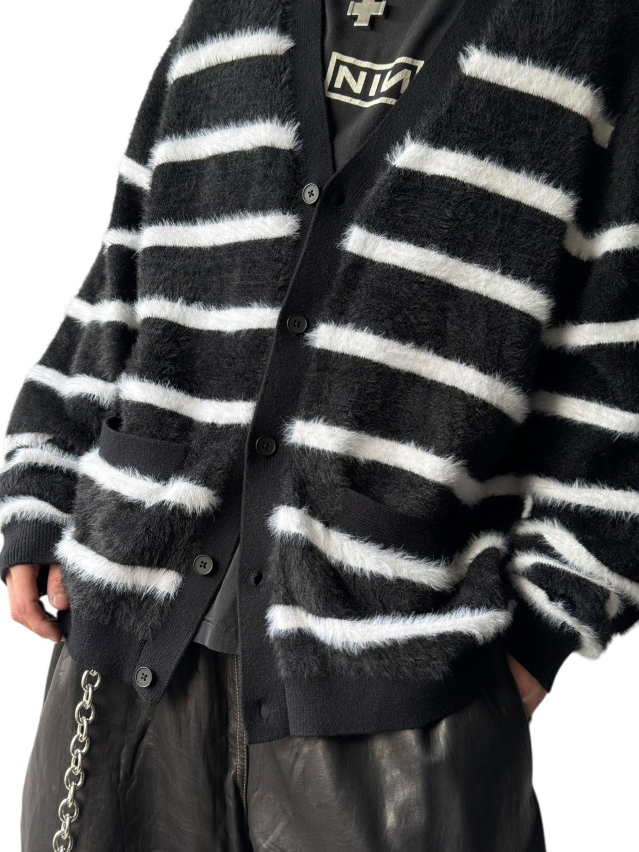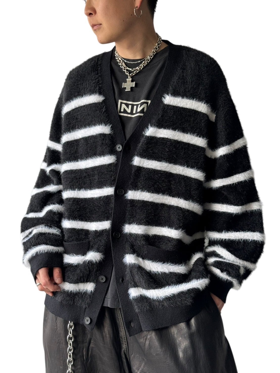 ♾I・N・C♾ Border shaggy knit cardigan size XXL