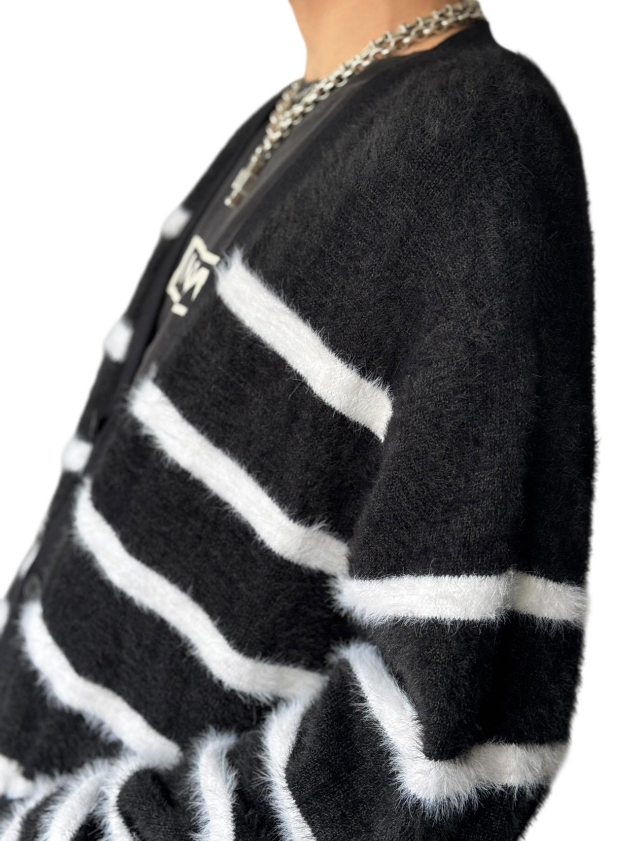 Border shaggy knit cardigan
