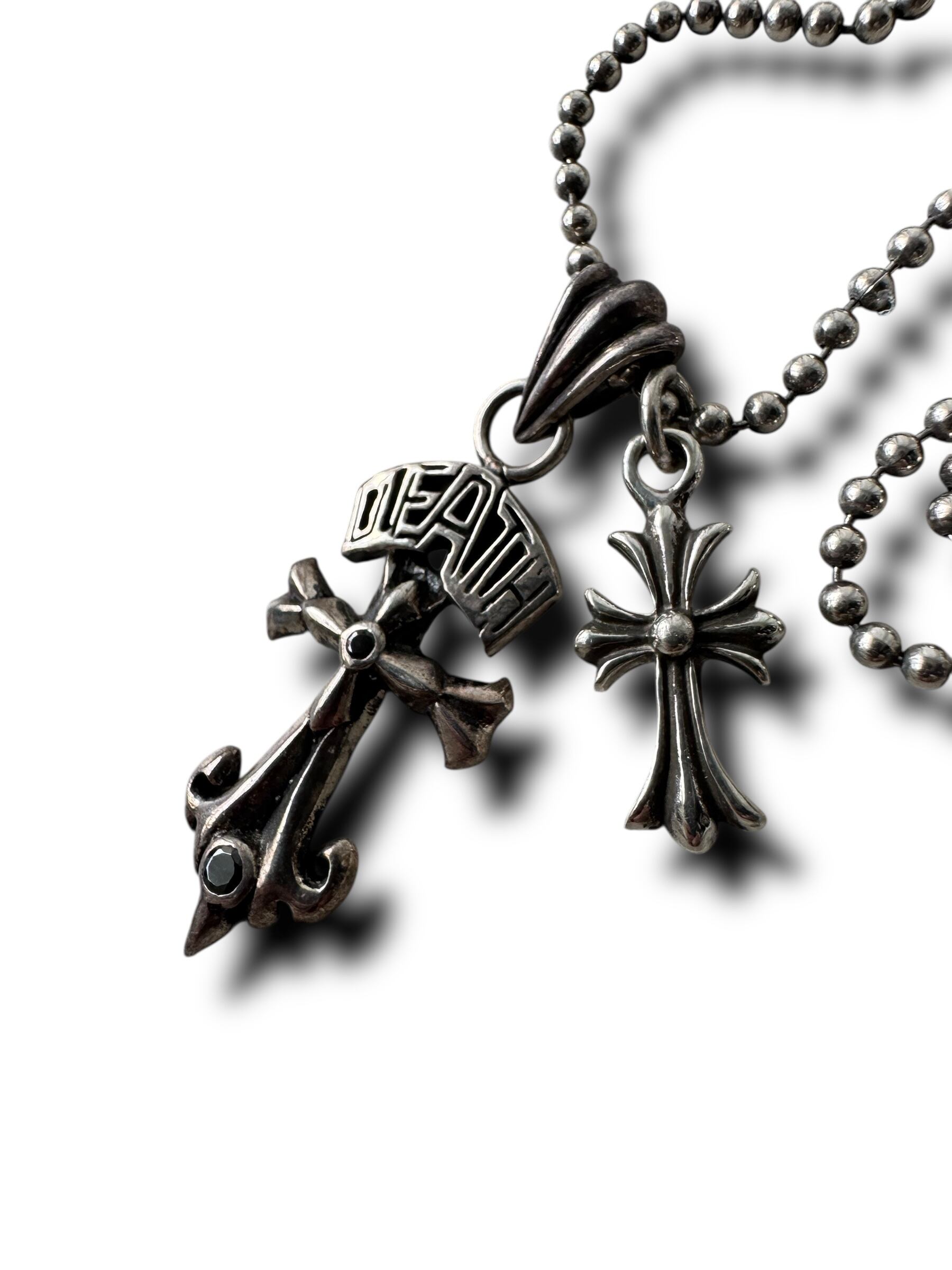 黒のストーンがセットされたクロスには"DEATH"とデザインされている激しいデザイン‼️